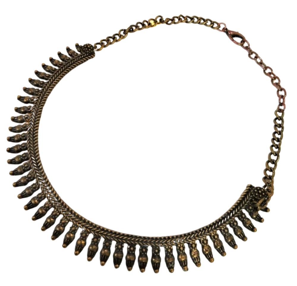 Antique Elegance 16" Oxidized Gold Tribal Choker w/ 3" Extender JN1462 Channel timeless sophistication with this antique-inspired gold choker. An effortless blend of vintage charm and modern edge. Every piece of jewelry you wear has a story to tell—make yours unforgettable. Treasure Vault’s vintage and statement collections let you channel power, grace, and edge, no matter the occasion. Perfect for the woman who isn’t afraid to shine, our pieces are curated to elevate your style, day or night. Ready to write the next chapter? Bundle & Save: One treasure is never enough. Add a little more to your story and save while building your perfect collection.