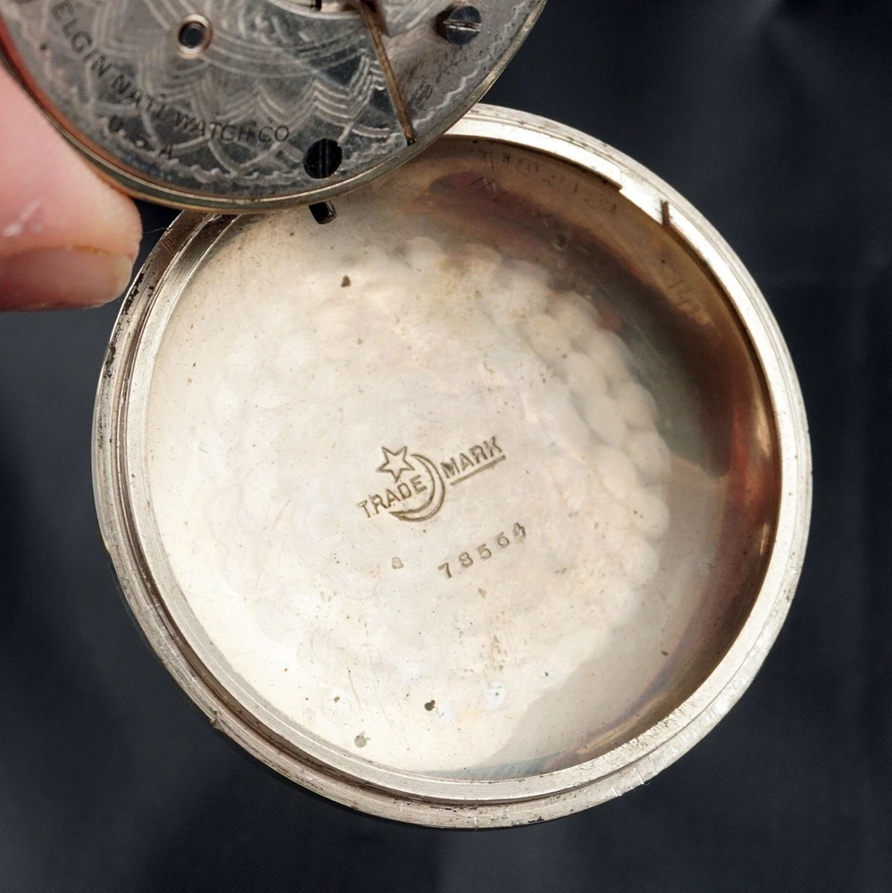 For sale is a vintage Elgin pocket watch, Grade 218, made in 1923 by the Elgin National Watch Company, U.S.A. This is a classic 18-size, full-plate, manually wound timepiece with a pendant setting. The movement is currently ticking, and the balance wheel runs, but the second hand is not moving — likely due to a disengaged or worn gear in the train. Still, this watch is an excellent candidate for display, repair, or restoration. ⸻ 📌 Details: • Brand: Elgin National Watch Co. • Serial Number: 25918472 • Grade: 218 • Model: 5 • Size: 18s (54.7 mm case) • Jewels: 15 • Setting: Pendant • Plate: Full Plate • Production Year: c.1923 • Movement Type: Mechanical, Manual Wind • Case Material: Nickel • Dial: Enamel, bold black numerals with sub-second dial • Hands: Blued steel • Condition: • Movement runs, balance ticks • Second hand not moving • Dial has visible hairline cracks • Case shows normal wear from age