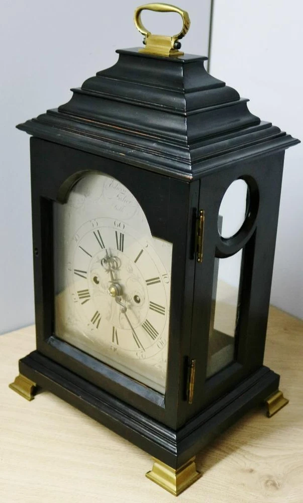 Quality early 19th century twin fusee bracket clock with stunning patina and colour to the wonderful ebonised case dating to C1820 - 1840 The case is made of solid wood with this stunning patina to the ebonised finish which gives this absolutely amazing display finish The clock has a stepped top case design simple display look, it has a glazed front door which protects the dial and a glazed back door which protects the movement with working lock and key Case is in excellent original condition for age and looks stunning on display with a good age patina with brass handle to top Silvered arched dial signed by the maker Edwin Fisher of Bath who dates to the early 19th century Engraved Roman numerals & matching original steel hands Dial is in excellent original condition and looks fantastic English 8 day twin wire driven bell striking movement with original anchor escapement and engraved backplate and shouldered plates all expected from a top quality maker The movement has just been professionally serviced and is in full working order keep good time and striking as it should on the hour Original Pendulum and a new brass winding key The clock measures 18 inches high x 10.5 inches wide x 8.5 inches deep Antique English Edwin Fisher Bath Ebonised Twin Fusee Striking Bracket Clock Antique English Edwin Fisher Bath Ebonised Twin Fusee Striking Bracket Clock Description Main reasons why you should purchase your antique clock from Times & Chimes Ltd !!! We understand buying an antique clock is a big decision and we are very well experienced in current market's as well as fully trained and experienced horologists. We have many years experience in buying and selling original antique clocks which are carefully sourced and many from private collections and we know exactly what buyers expect when purchasing such a prized possession and a future investment. Here are some of the main reasons why you should buy your antique clocks from us for complete piece of mind 1 - We offer the very best customer service before, during and after the sale 2 - Fully trained and hugely experienced horologists 3 - Six month return to base warranty on mechanisms 4 - All our original antique clocks are of high quality and carefully sourced 5 - Every clock we sell are tested for a minimum of 1 week before being offered for sale 6 - We have earned a consistently excellent track record of sales with 100% Feedback 7 - All our items are professionally packed and dispatched promptly 8 - All clocks are sent with world leading couriers on a priority service with full online tracking PLEASE NOTE: I have just received some excellent quality bracket clocks from a private collection all of which have been well looked after all of which will be listed over the next few weeks. Some excellent quality bracket clocks please keep your eyes open over the next few months Description Quality early 19th century twin fusee bracket clock with stunning patina and colour to the wonderful ebonised case dating to C1820 - 1840 The case is made of solid wood with this stunning patina to the ebonised finish which gives this absolutely amazing display finish The clock has a stepped top case design simple display look, it has a glazed front door which protects the dial and a glazed back door which protects the movement with working lock and key Case is in excellent original condition for age and looks stunning on display with a good age patina with brass handle to top Silvered arched dial signed by the maker Edwin Fisher of Bath who dates to the early 19th century Engraved Roman numerals & matching original steel hands Dial is in excellent original condition and looks fantastic English 8 day twin wire driven bell striking movement with original anchor escapement and engraved backplate and shouldered plates all expected from a top quality maker The movement has just been professionally serviced and is in full working order keep good time and striking as it should on the hour Original Pendulum and a new brass winding key The clock measures 18 inches high x 10.5 inches wide x 8.5 inches deep Summary This is a perfect investment clock and a beautiful display piece. Looks absolutely fantastic wherever it is displayed and a true talking point of any room. Exceptional clock which will only grow in value and one of the best ones i have ever had the pleasure to offer for sale and you wont find one quite like this for a while Important Please Read: ALL antique clocks after transport no matter how well they have been looked after or serviced may require setting up, adjustments and setting into beat when you receive them and i always recommend a professional or an experienced clock person to do this correctly for you. Unfortunately with some clocks it is not a matter of unpacking them, putting the pendulum on and away they go, some clocks will need the extra adjustments and setting into beat so please remember you may require a professional for initial setup before bidding. Most clocks will be ok and will not need any additional adjustments but please bear in mind this may not be the case. Any clocks returned because of setting up issues or adjustments needed after transit then a fee will be applicable. For your piece of mind we test all our clocks here before they are sent out and any issues are either sorted or described in the add, the clock will not have any problems unless stated in the add as they are tested vigorously before sending. Please read my full terms and conditions by clicking on the returns tab above. Good luck and happy bidding Click images to enlarge Payment PayPal Cheque Bank Transfer Cash on collection You are more than welcome to personally collect any item free of charge Shipping All my items will be packed professionally Shipping prices include professional packaging materials, boxes, and priority service I will only use professional couriers which will provide a full tracking number which can be tracked online Please remember to check with your