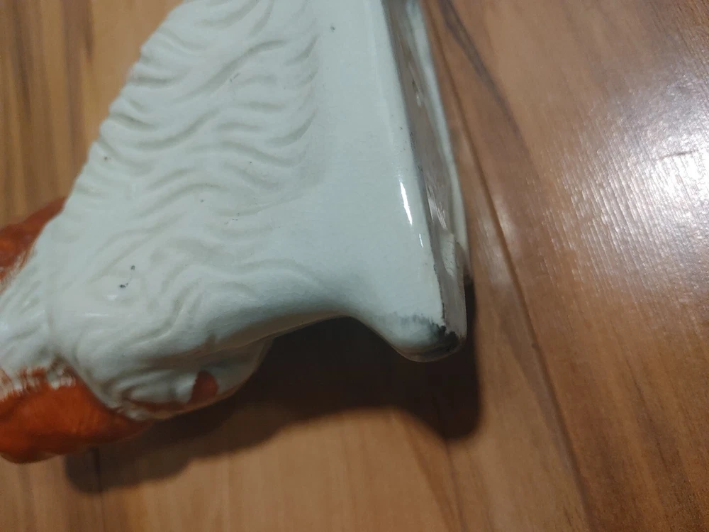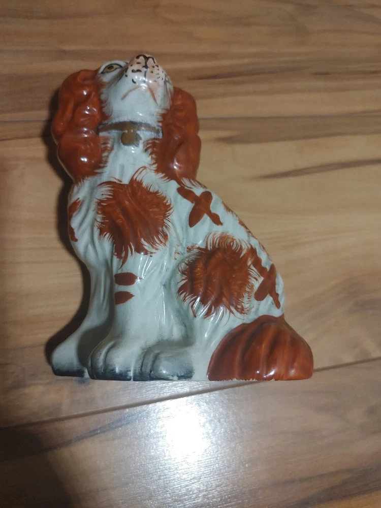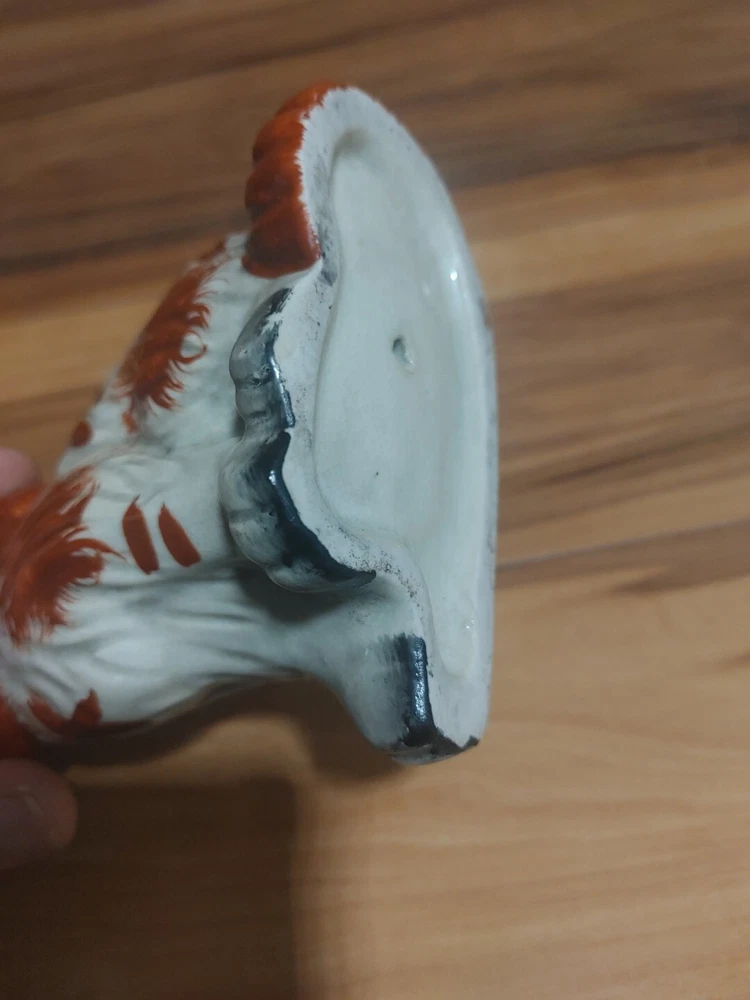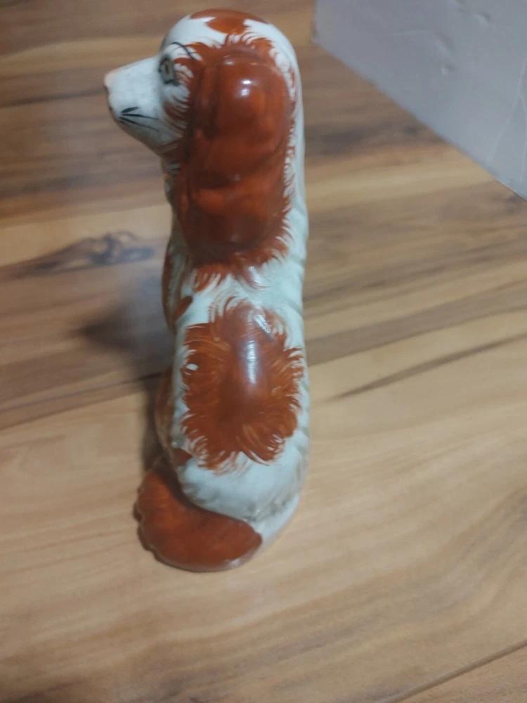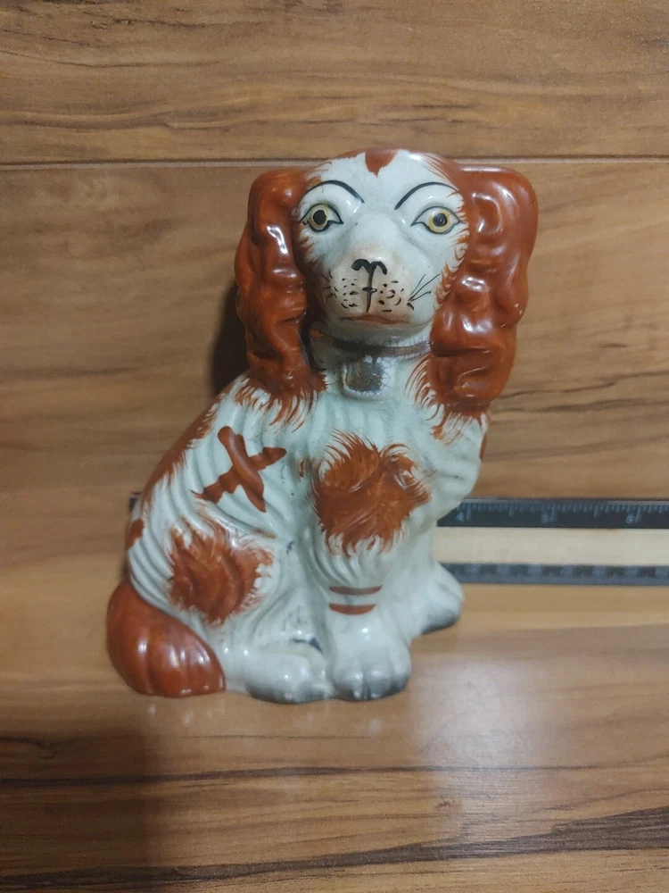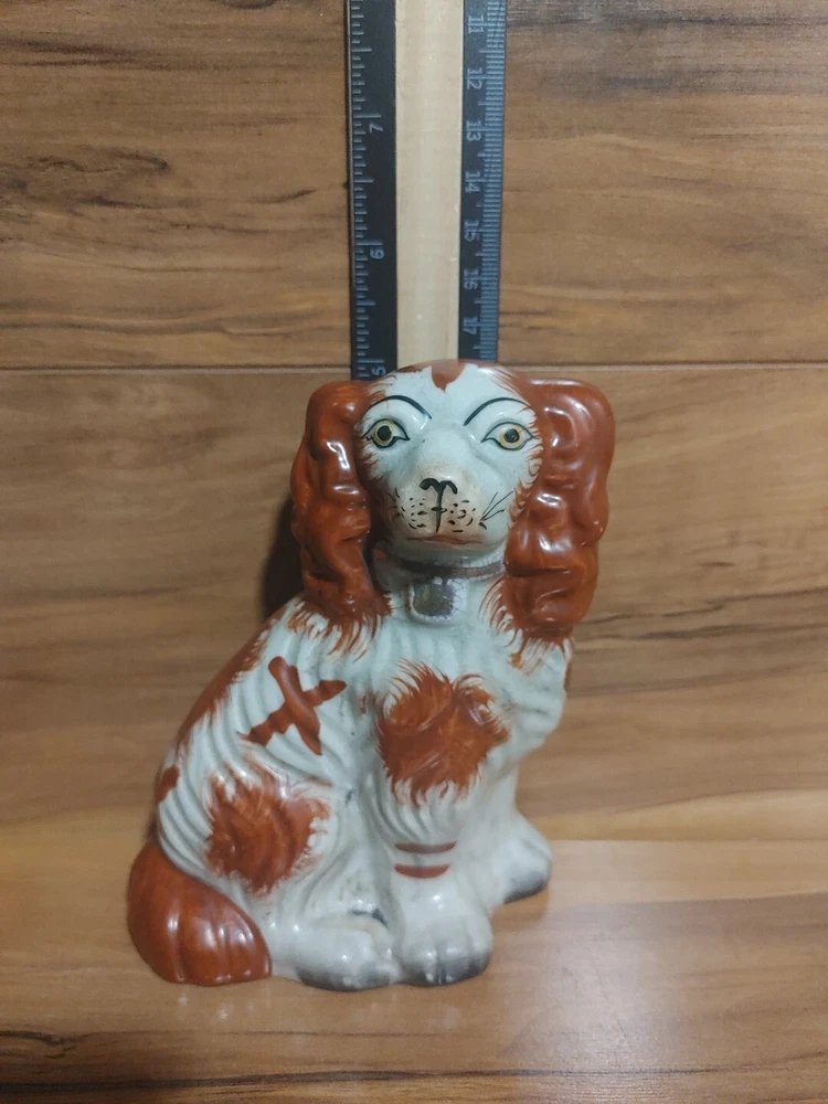These antique figurines of King Charles Spaniel Dogs are a rare find for collectors of English Staffordshire memorabilia. Standing at 5 inches tall, 4 inches wide and about 2.25 inches deep each these figurines depict two charming dogs that are sure to add character to any collection. They are in great condition. They do not have any damage (chips, cracks, repairs). They do have crazing throughout. There is some minor paint loss. Please inspect photo(s) carefully. Pictures should be considered part of the description. Please ask any questions BEFORE purchasing.