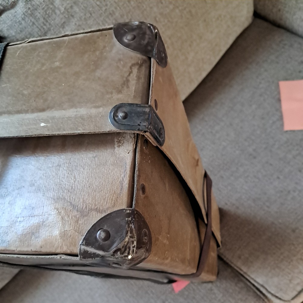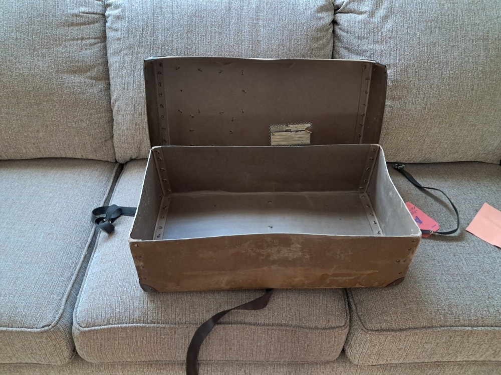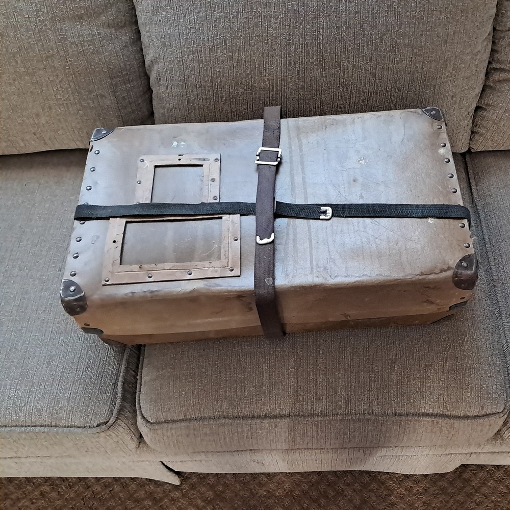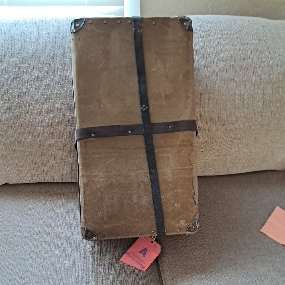 Number in Pack:1Shape:RectanglePackaging:CartonItem Height:6"Item Weight:3.5 poundsMaterial:MetalOriginal/Reproduction:OriginalBrand:UnbrandedSize:MediumHandmade:NoCountry of Origin:United StatesType:CrateItem Width:12"Customized:NoSubject:Container ShipsColor:GreenItem Length:21"Engraved:NoTime Period Manufactured:1900-1919Closure Type:BuckleYear Manufactured:1920