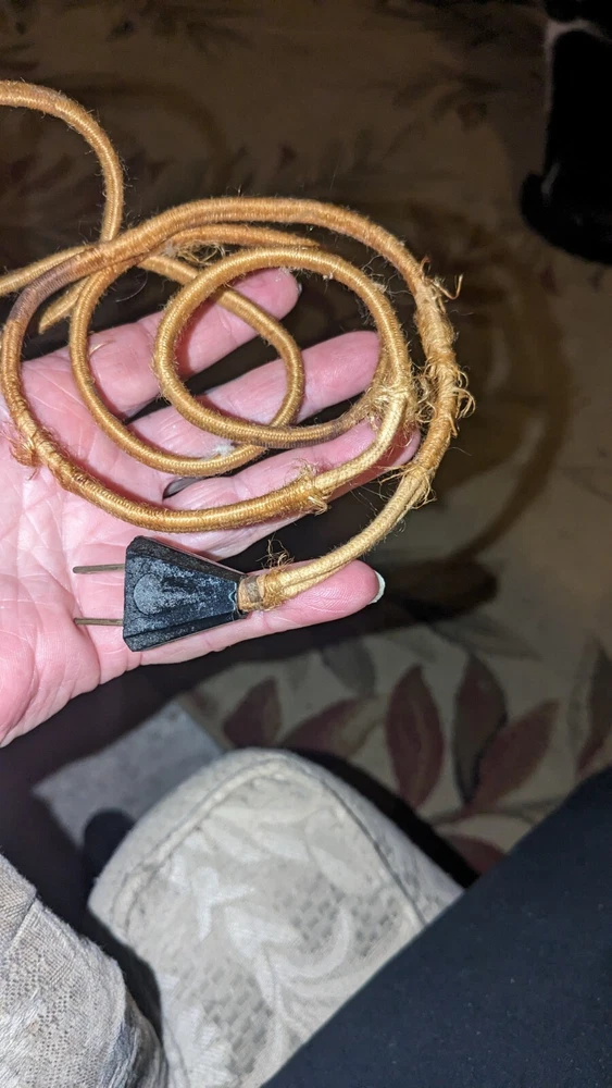 Cute little lamp. I would say it's more of a bedside lamp. Cloth cord probably needs to be replaced I'm sure. No chips in the mirror or any of the glass. Does not come with a lampshade. I really don't know the amperage etc on a lamp. Call me ignorance which I am when comes to volts etc. sorry I could take pictures if you'd like some more. Thanks for looking