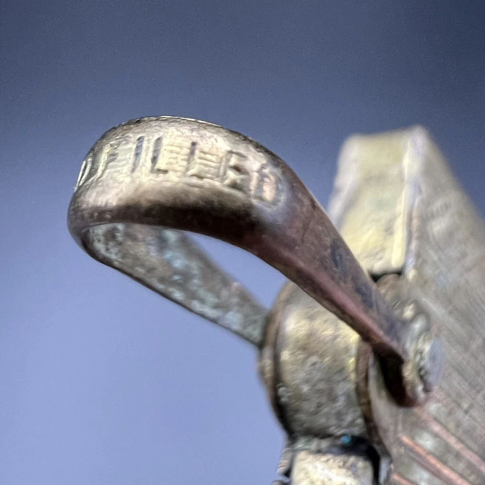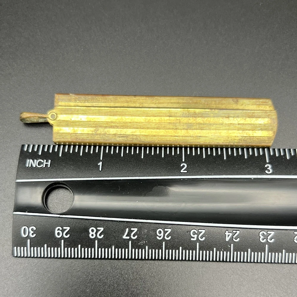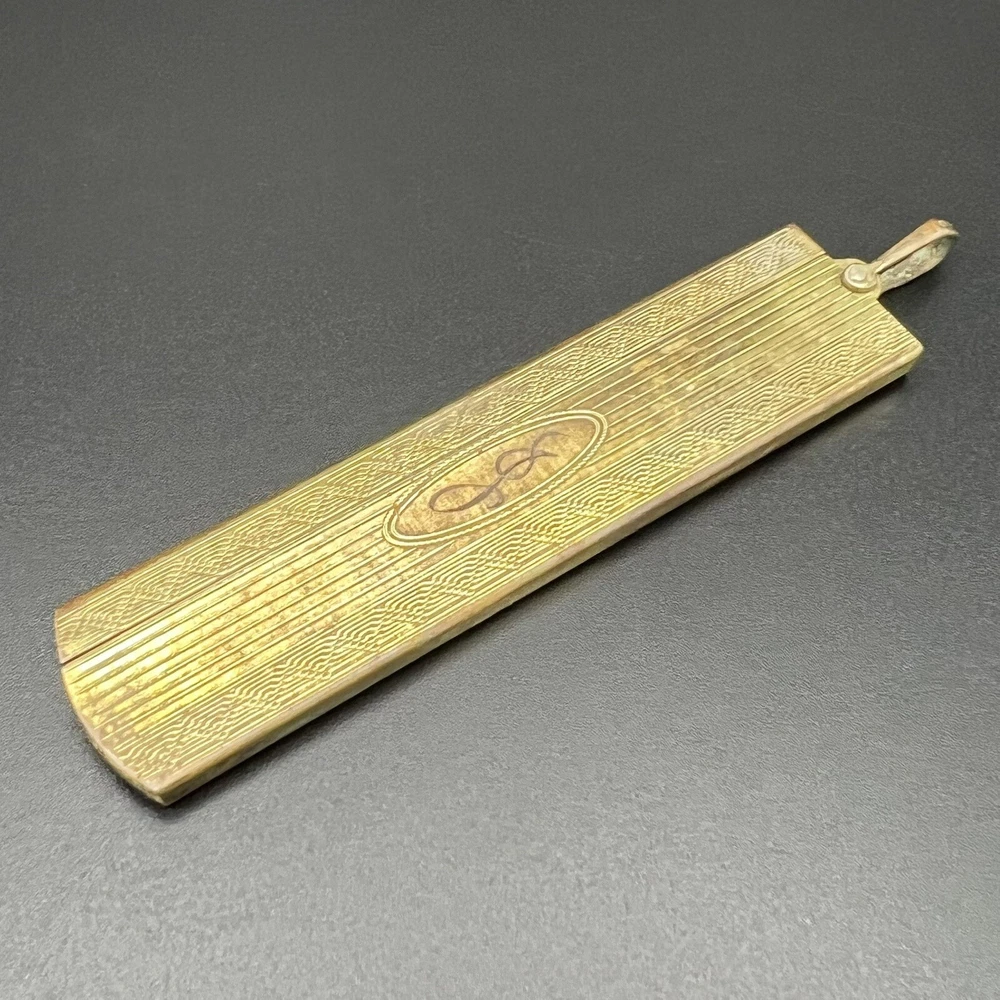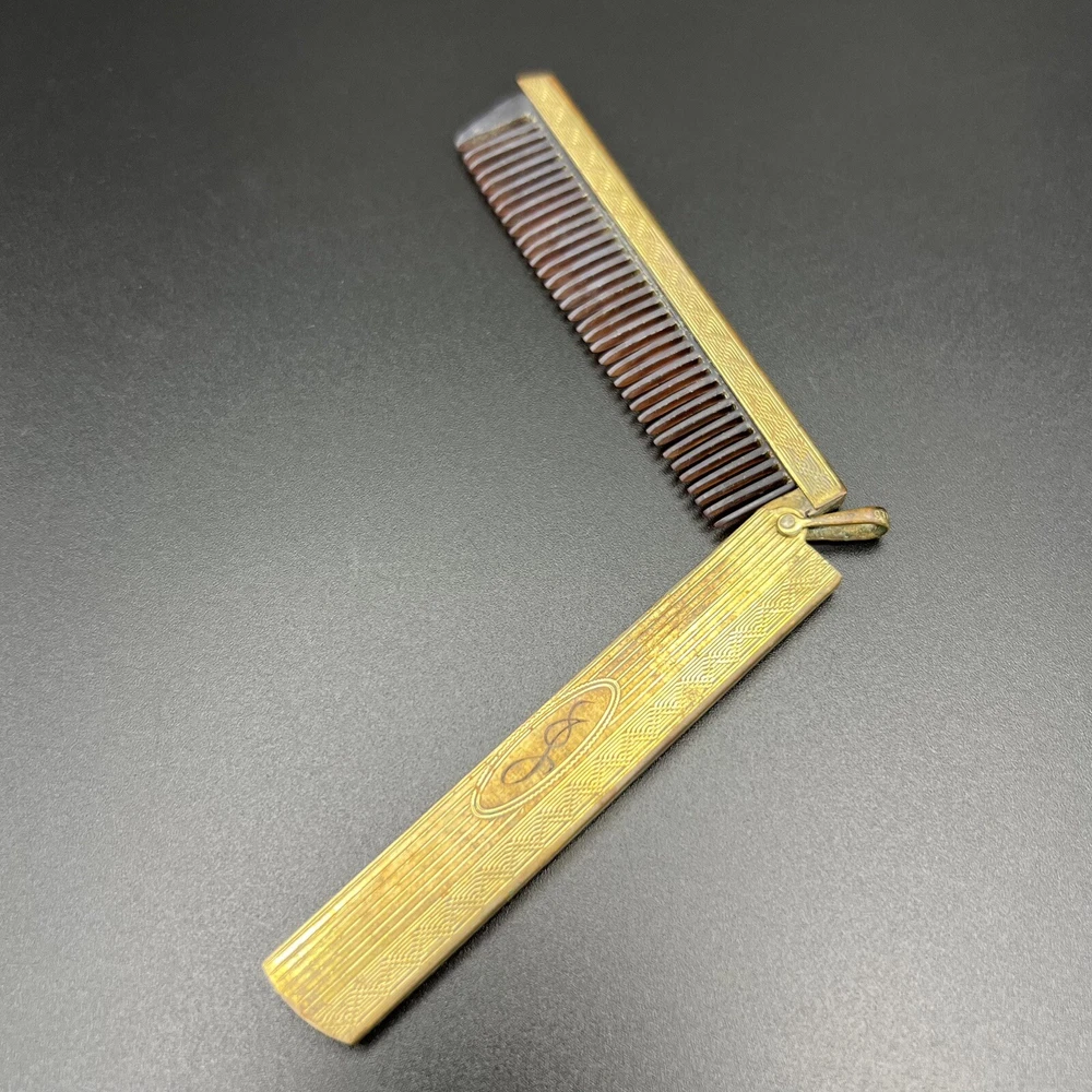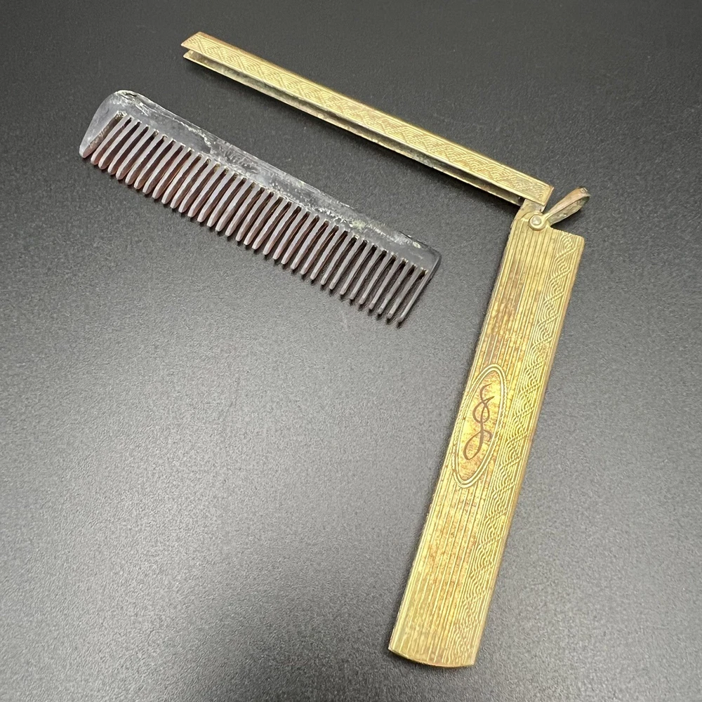 Gold filled mustache comb. Celluloid or plastic comb is no longer attached and lies unglued within holder. Nifty piece for a collector. Please review photos carefully; they are considered part of the description. Photos may be enhanced to show detail. Priced to move quickly! Bid now!