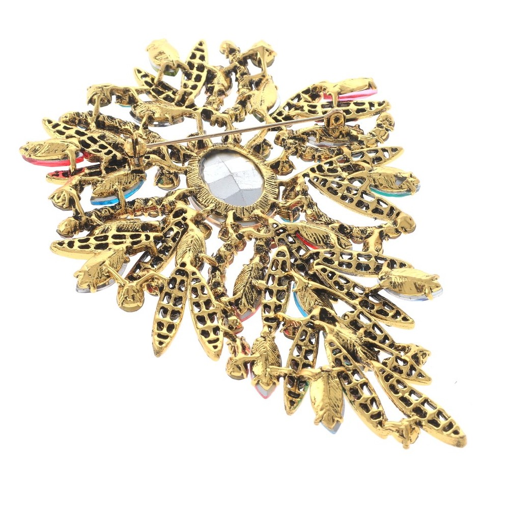 Antique Gold Tone Alloy Metal Extra Large Crystal Flower Brooch / Approximate Size: 5.75" L x 3.75" W / Rhinestone / Metal / Lead & Nickel Compliant / Color: Antique Gold & Multi Condition: Brand New SKU: P1573-MUL Color: Multi Design: Flowers & Plants All orders will ship from USA via UPS or USPS. We expect all local orders will receive the items within 7 business days or less depend the location. Worry free international shipment delay or custom duty fee.