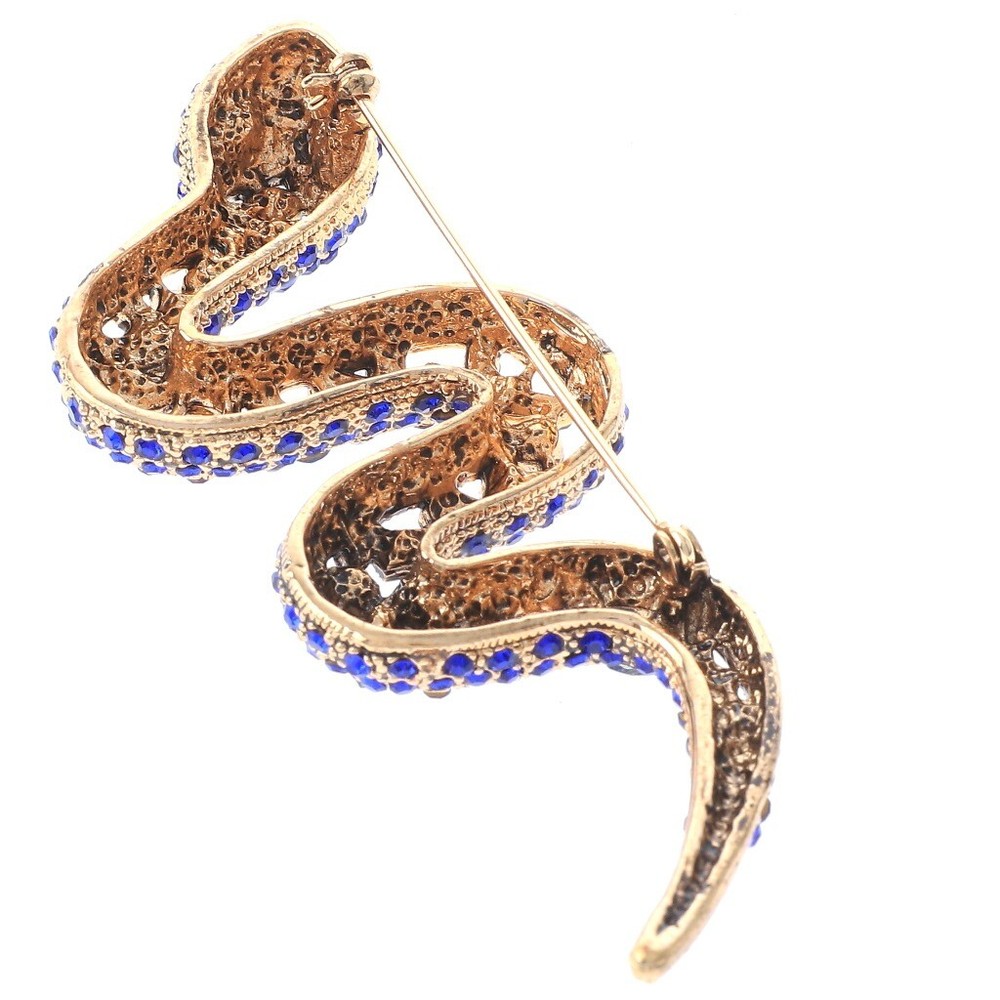 Antique Gold Tone Metal Large Crystal Snake Brooch / Approx Size: 4" L x 1.5" W / Rhinestone / Metal / Lead & Nickel Compliant / Color: Antique Gold & Blue Condition: Brand New SKU: P1395-SAP Color: Design: All orders will ship from USA via UPS or USPS. We expect all local orders will receive the items within 7 business days or less depend the location. Worry free international shipment delay or custom duty fee.