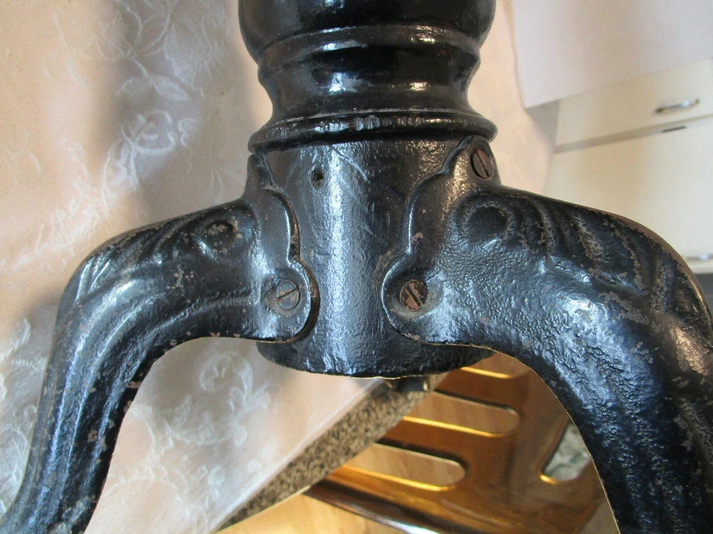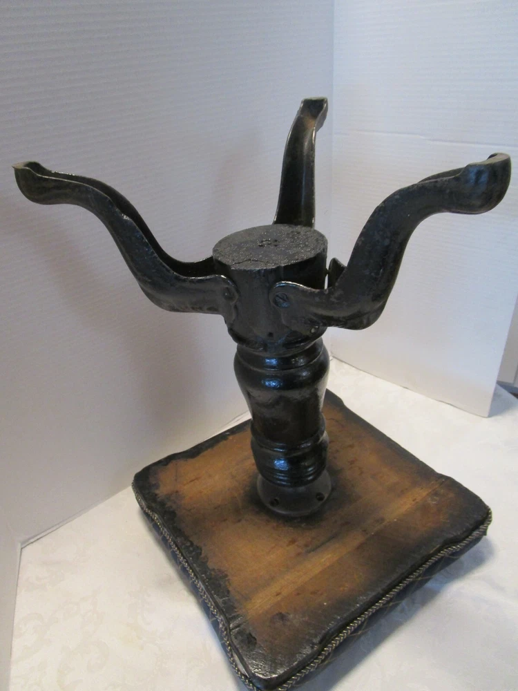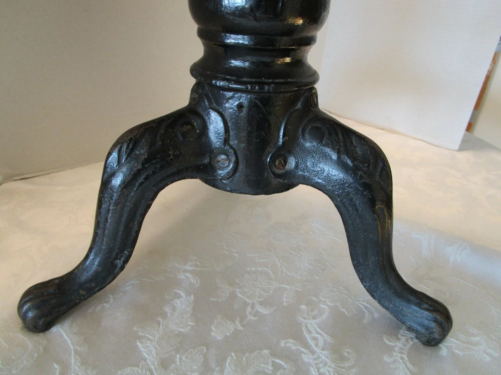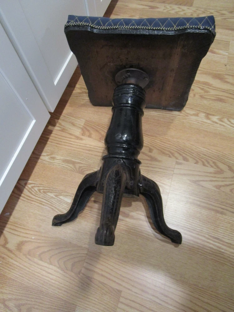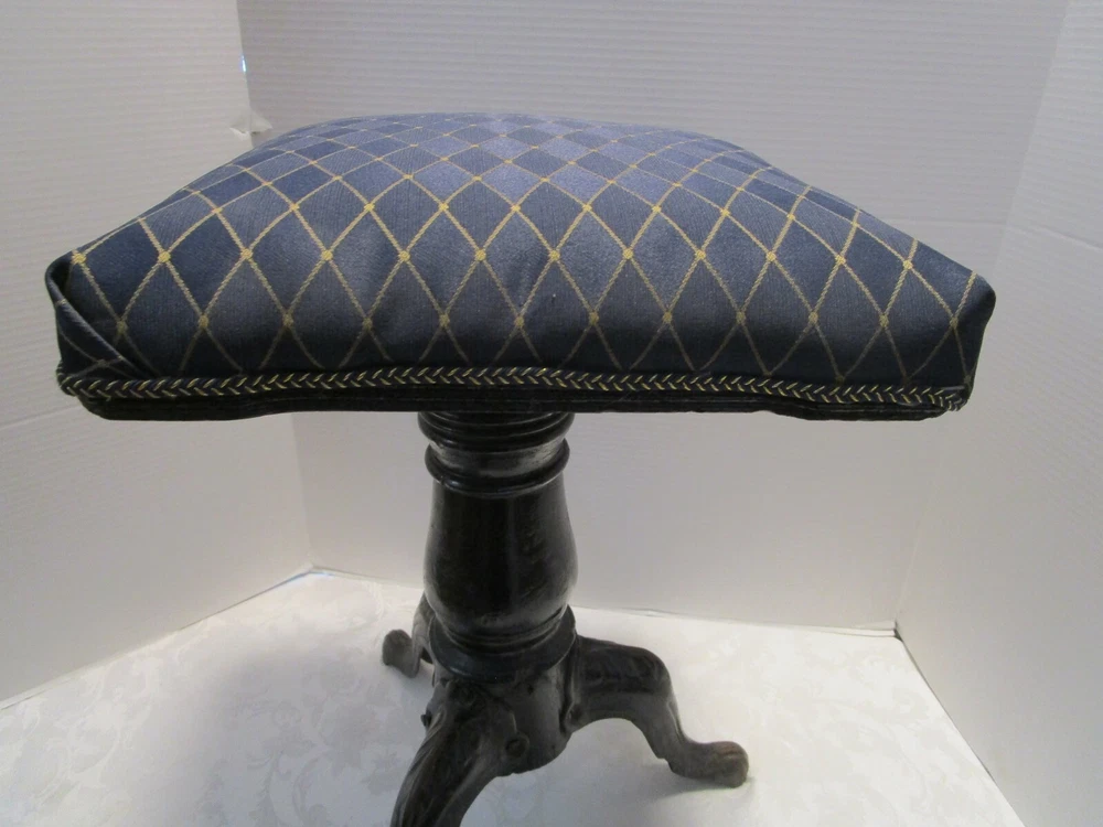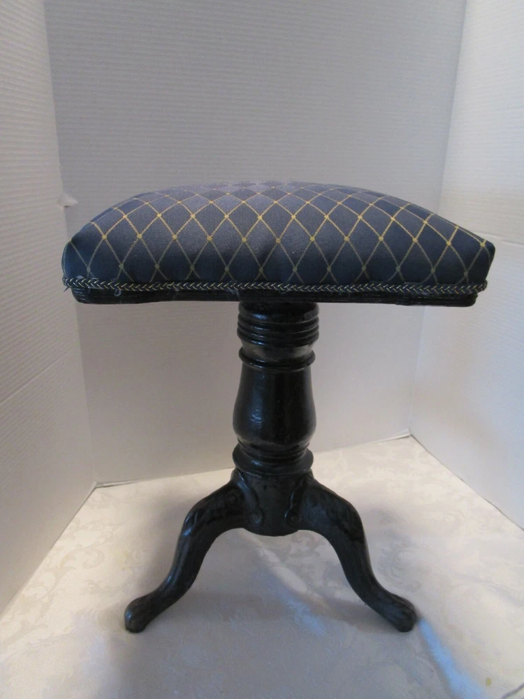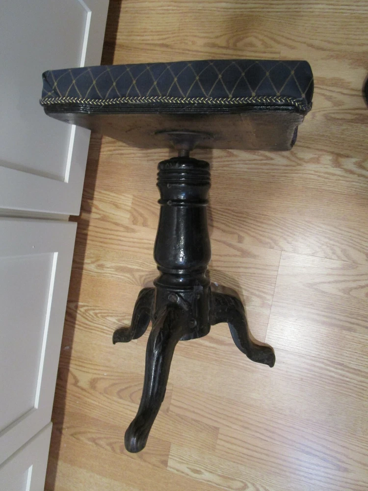 · Description: 18-24-18-18 Antique 19th Century Swiveling Piano/Organ Stool 3 Cast Iron claw foot legs with a wooden post. Restored-repurposed Seat does not have the original upholstery- probably the original is under the new fabric, the fabric appears to be vintage vinyl like upholstery. Repainted Wood post. The wooden post have three small holes, one leg has a factory defect –it has a smooth edge. View pictures # 1, 2, 3 Embossed H.D. BENTLEY It measures: 19"H with Seat Down 23.5"H Seat Up. 13.75"W across Feet. 12.25" X 12.25" Seat Weighs about 12 Lbs. Great Antique condition- appropriate patina for its age and use- some restoration - upholstery seat, and iron color. Please zoom and view all pictures for more details as they are part of the description I DO MY BEST TO DESCRIBE EVERY LISTING BUT I AM NOT AN EXPERT AND ITEMS ARE SOLD “AS IS”. My idea of great/good may be different than yours, so EXAMINE PHOTOS CAREFULLY since they are binding and a supplement to the word description in case I should miss something. If I fail to mention something, it does not qualify as “item not as described” if it shows in my pictures. EACH PHOTO IS WORTH A THOUSAND WORDS AND THEY ARE OF THE EXACT ITEM YOU WILL RECEIVE. RETURN POLICY: Returns are acceptable ONLY if the item is defective, or grossly misrepresented. THIS MEANS I DO NOT ACCEPT RETURNS for FIT, SIZING, COLOR ISSUES, OR BUYER'S REMORSE. Please zoom and view ALL pictures for more details as they are part of the description. Email me with any questions you may have. Please note: Buyer pays ALL return shipping and fees. · FEEDBACK I do not leave feedback until the end of a transaction. The transaction is considered over once I receive feedback from you confirming that you have received it and expressed satisfaction with it. If you are unsatisfied with your purchase, please contact me before leaving a neutral or negative feedback- so I can fix the issues. ·