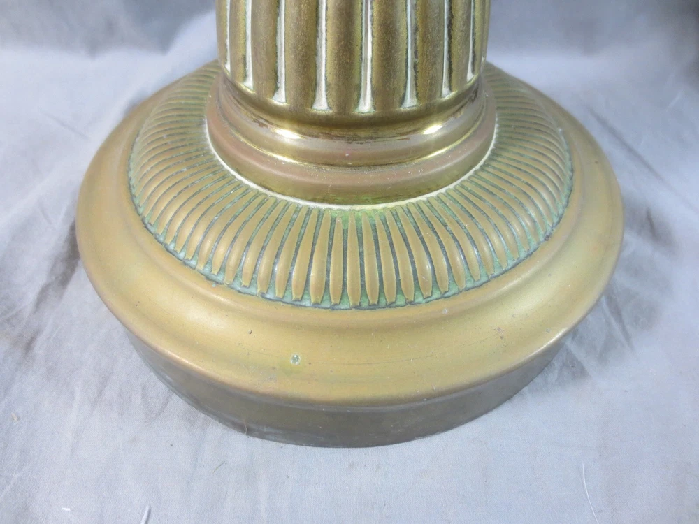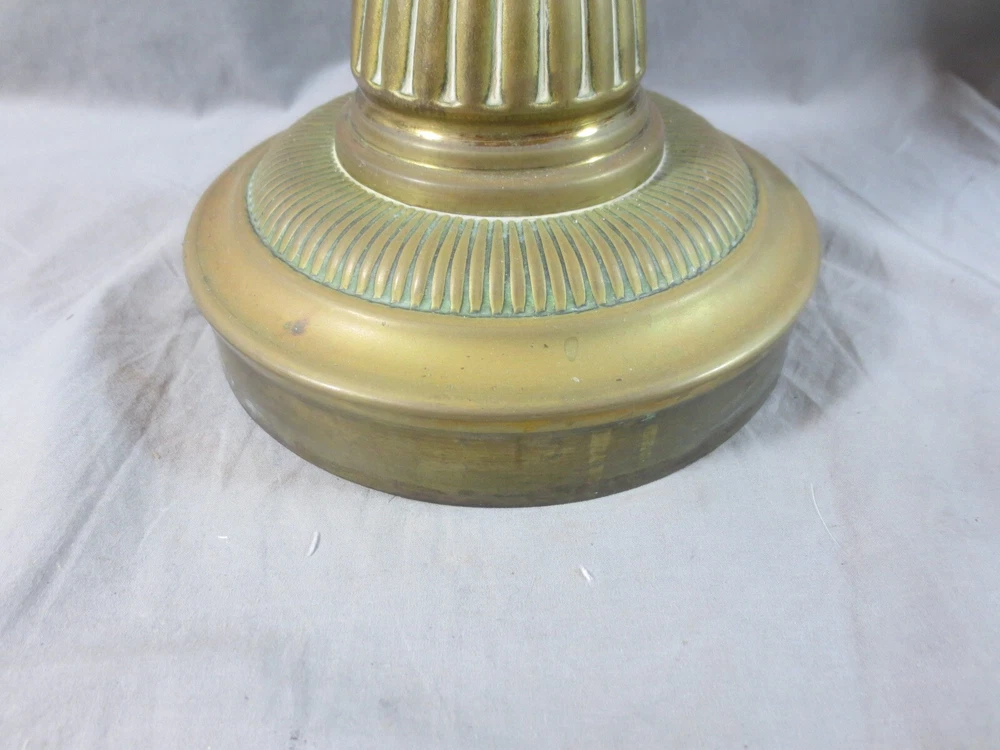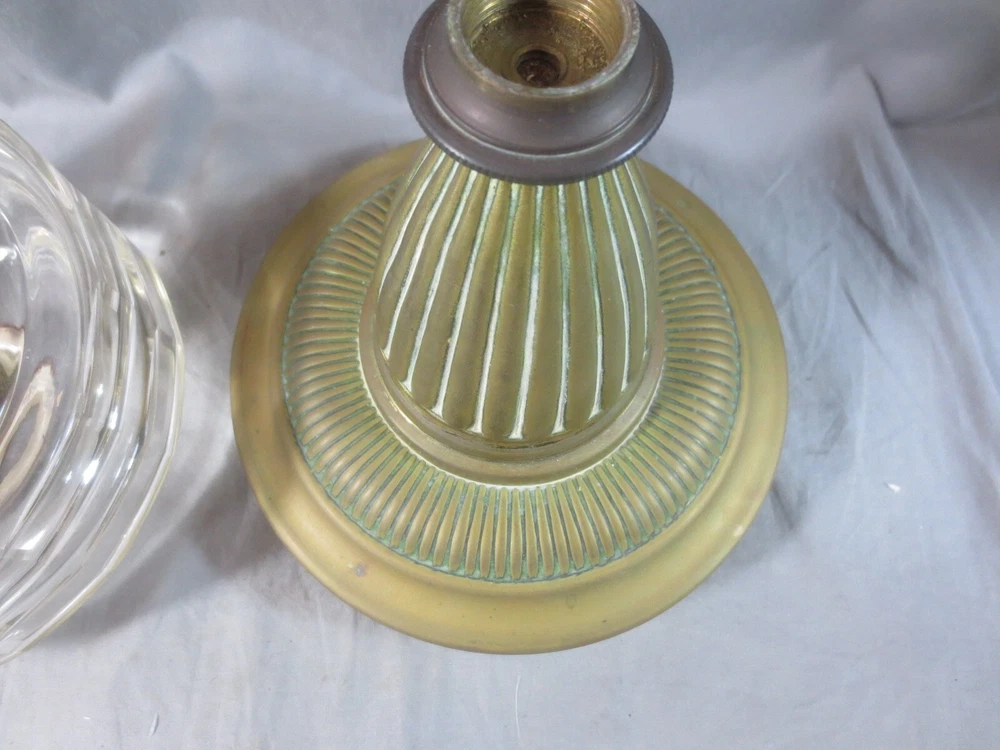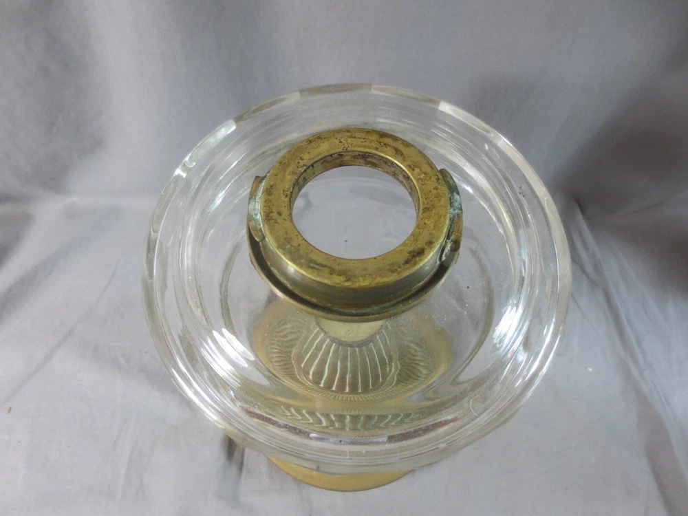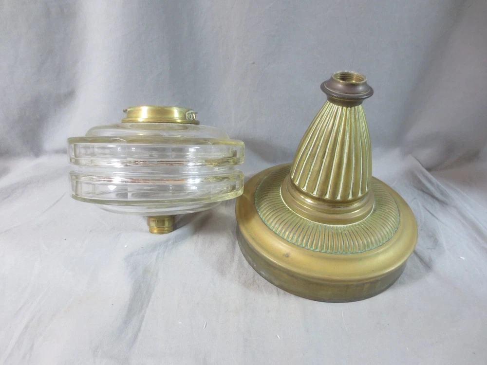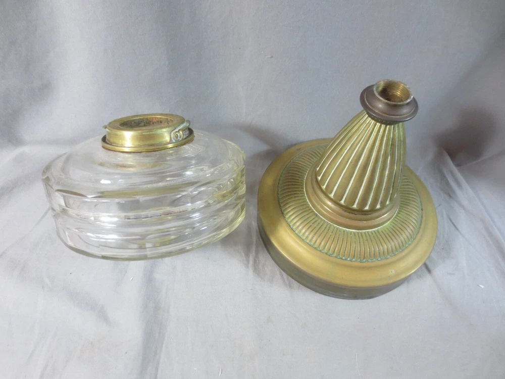 UP FOR AUCTION IS THIS ORIGINAL ANTIQUE DUPLEX OIL LAMP FOUNT AND BRASS BASE. IT IS TYPICAL HINKS OR MESSENGERS BUT IS NOT STAMPED. THE BRASS COLLAR IS THE BETTER QUALITY HAVING THE RIVETED LUGS THE BASE HAS SOME MINOR DENTS AND MARKS AND IS DISCOLOURED/TARNISHED THE GLASS DOES CONTAIN SOME, FLEABITES, AIR BUBBLES,SMALL SURFACE SCRATCHES AND BLOWING MPERFECTIONS, AGE RELATED IMPERFECTIONS ASSOCIATED WITH ANTIQUE PARTS. PLEASE NOTE, ANTIQUES WHICH ARE MANY YEARS OLD WILL NOT BE IN BRAND NEW AND UNTOUCHED CONDITION. ANY MAJOR DAMAGE OR FAULTS I WILL TRY AND POINT OUT. EVEN WHEN THEY ARE IN GREAT CONDITION THEY WILL HAVE SOME WEAR COMMENSURATE WITH THEIR AGE AND USE. PLEASE TAKE THIS INTO ACCOUNT. FOR THE CORRECT OVERSEAS POSTAGE PLEASE CONTACT ME AS ALL DESTINATION PRICES VARY. FOR MORE INFORMATION OR EXTRA PHOTO'S PLEASE CONTACT ME.