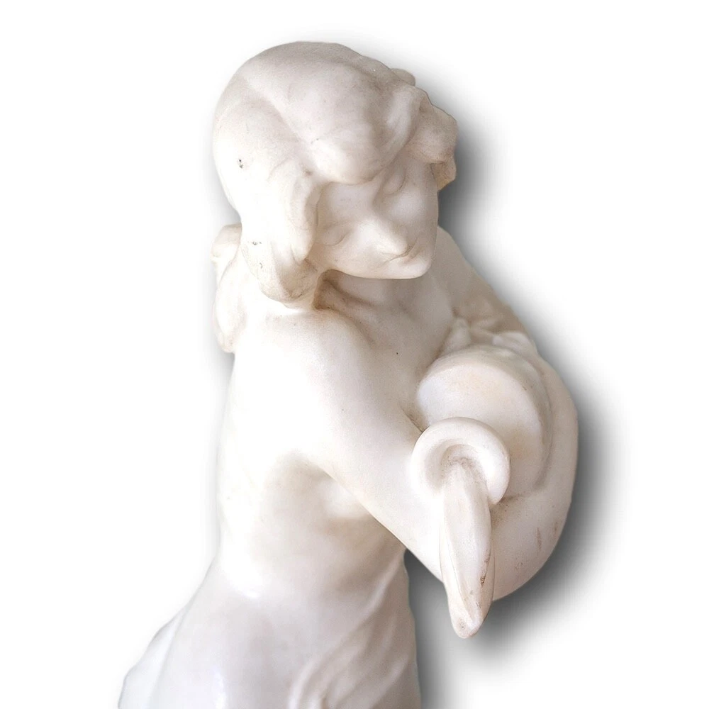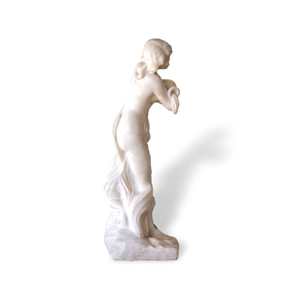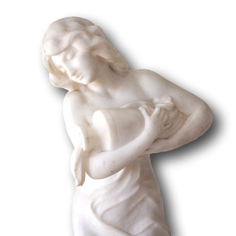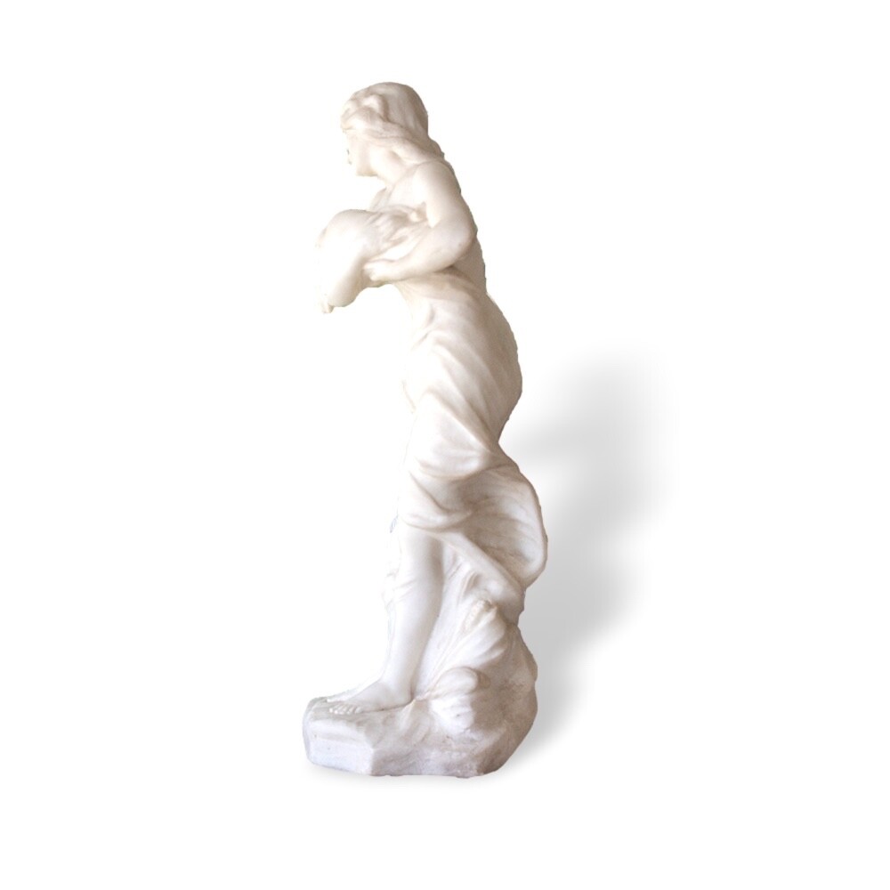Italian Classical Marble Figure Jacksons Antique are pleased to offer an Italian Classical Marble Figure stood upon a rocky plinth scantly dressed with a draped robe seen pouring water from a large urn as she looks on. The figures draped cloth flows throughout the figure giving her privacy as it finishes across the base of the marble. Next to the figure a small sprig of wheat stands carved into the rear. The captivating Marble Figure is carved from solid white ‘Carrara’ marble and dates to the second half of the 19th century circa 1870, very much in the grand tour style. FREE WORLD WIDE SHIPPING ON THIS ITEM Condition Very Good antique condition, no restoration Please be aware all the items we sell are not new. They are either vintage or antique meaning they are used and bear qualities of being handled or used for many years. This typically will mean that the objects will have surface marks or wear consistent with long term use. Measurements 52.5cm High x 20cm Wide x 18cm Deep (20.7 x 7.9 x 7 Inches) Please buy with confidence, we have been in the business for over 10 years and have recently decided to pursue ebay due to the volume of stock we hold. We sell regularly aboard and double box all relevant parcels for safety. We typically ship with Royal Mail or UPS. Trade Enquiries Welcome ! Please see our other items for weekly buy it now and auction listings. Please sign up to our ebay and own newsletters for updates!