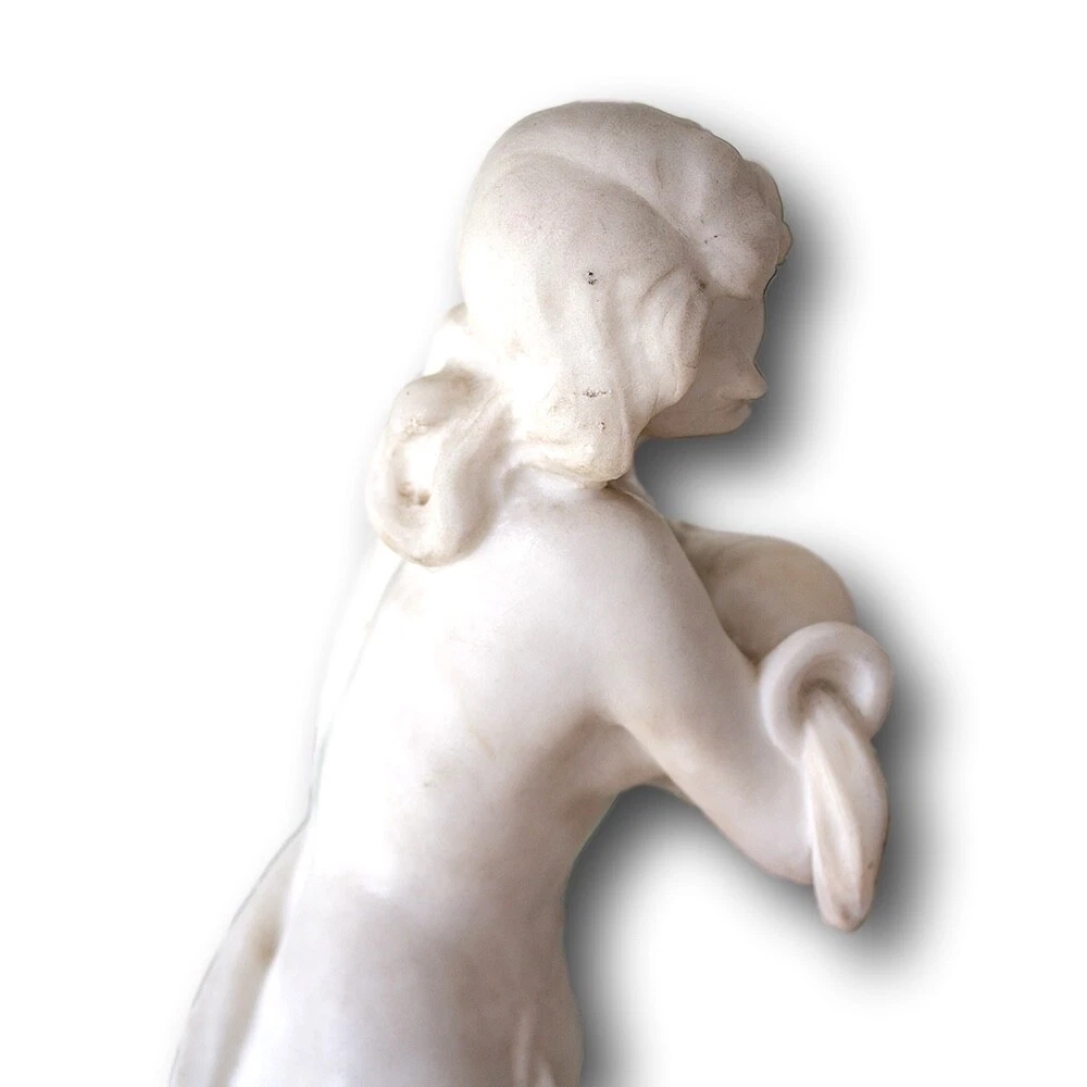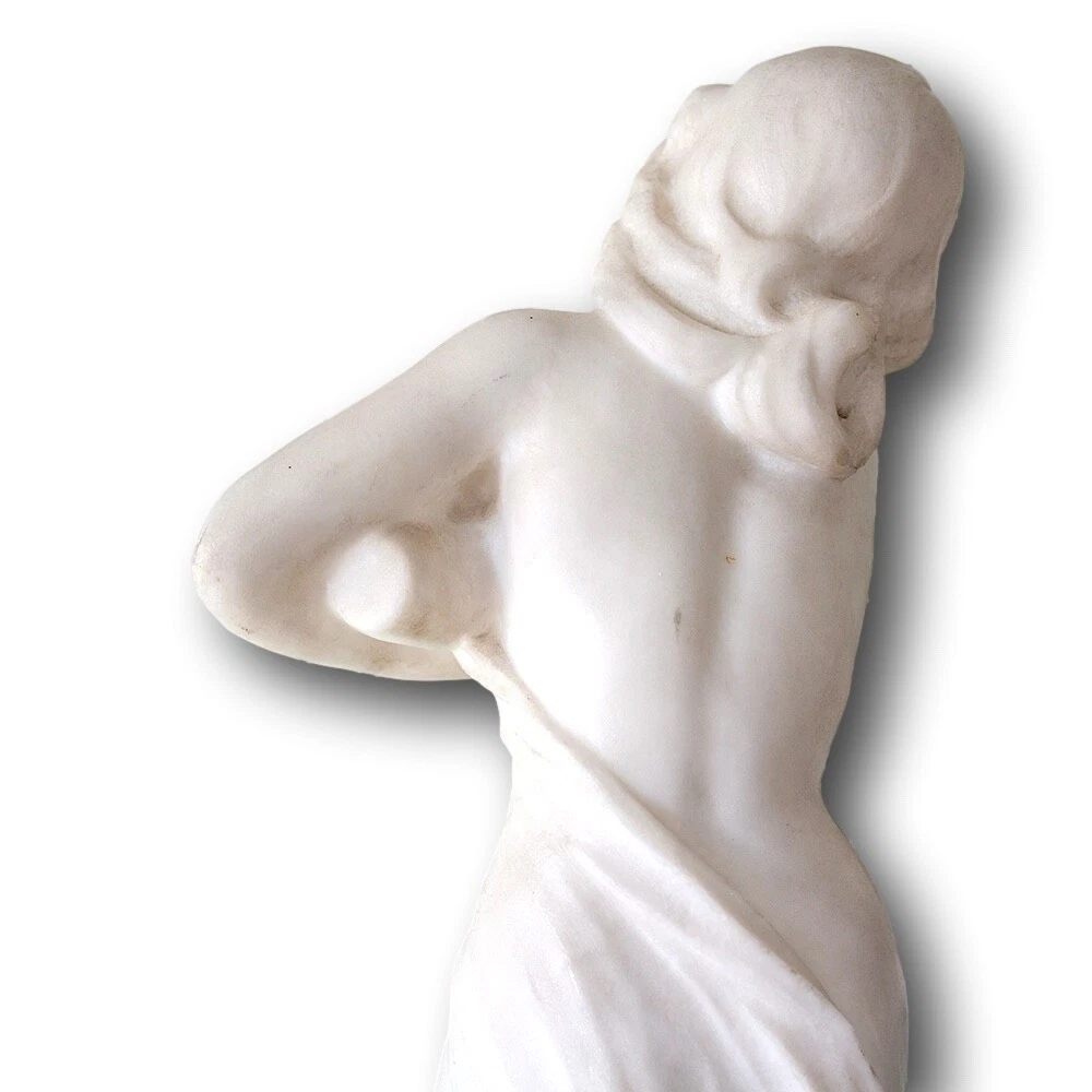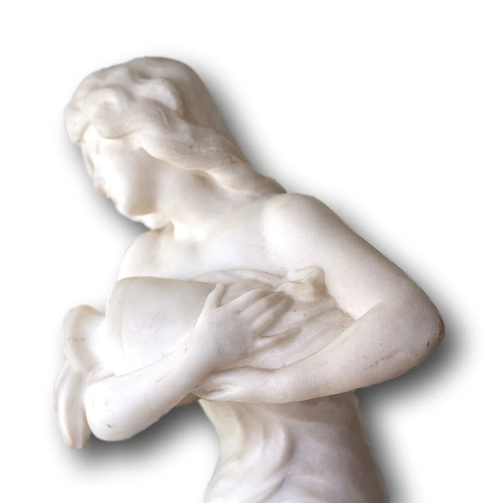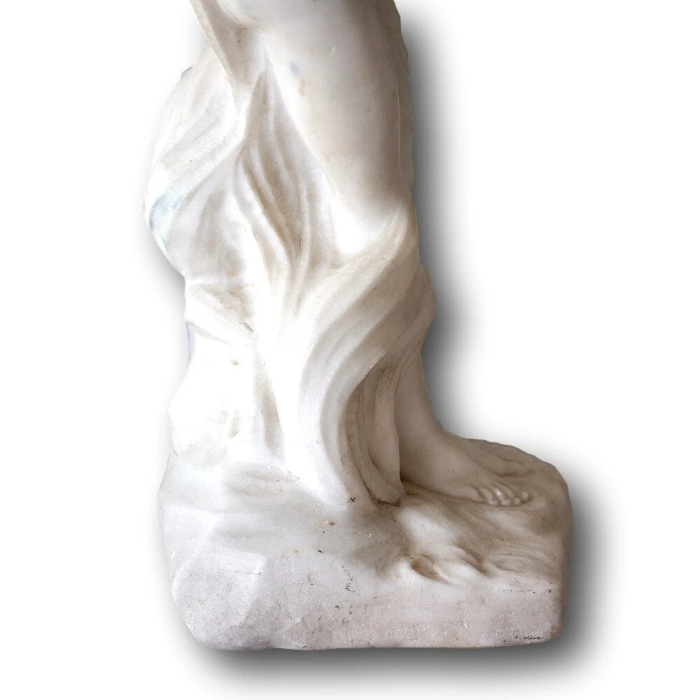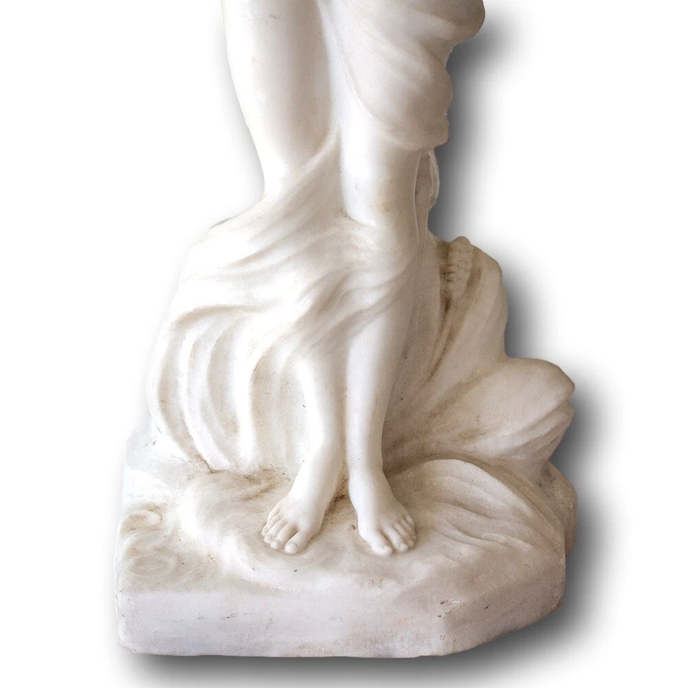 Italian Classical Marble Figure Jacksons Antique are pleased to offer an Italian Classical Marble Figure stood upon a rocky plinth scantly dressed with a draped robe seen pouring water from a large urn as she looks on. The figures draped cloth flows throughout the figure giving her privacy as it finishes across the base of the marble. Next to the figure a small sprig of wheat stands carved into the rear. The captivating Marble Figure is carved from solid white ‘Carrara’ marble and dates to the second half of the 19th century circa 1870, very much in the grand tour style. FREE WORLD WIDE SHIPPING ON THIS ITEM Condition Very Good antique condition, no restoration Please be aware all the items we sell are not new. They are either vintage or antique meaning they are used and bear qualities of being handled or used for many years. This typically will mean that the objects will have surface marks or wear consistent with long term use. Measurements 52.5cm High x 20cm Wide x 18cm Deep (20.7 x 7.9 x 7 Inches) Please buy with confidence, we have been in the business for over 10 years and have recently decided to pursue ebay due to the volume of stock we hold. We sell regularly aboard and double box all relevant parcels for safety. We typically ship with Royal Mail or UPS. Trade Enquiries Welcome ! Please see our other items for weekly buy it now and auction listings. Please sign up to our ebay and own newsletters for updates!