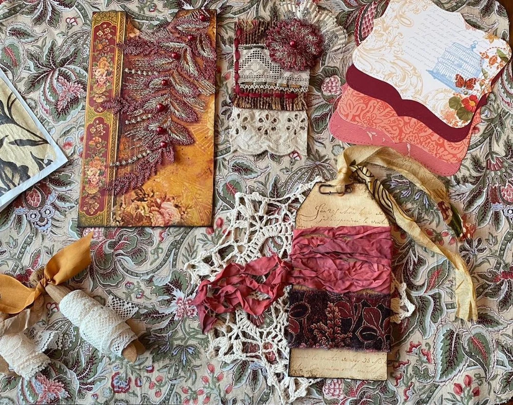 template Antique Lace Craft Kit Ephemera Paper Material Scrapbook Description 〜Everything in the image is included〜 ★ ☆ Bohemian style kit ☆ ★ *Antique Gypsy Style Ephemera Envelope (19cm×11cm) * Lace appliqués made of gold metallic yarn and burgundy pearls Hand-sewn slow stitch fabric and lace tag (11cm×6cm) * Lace appliques made of 2 vintage fabrics, Burgundy silk embroidered ribbons and antique lace * 3 bags for ephemera decorated with antique French damask print using rice paper (9 cm × 16 cm) * Antique clothespins wrapped in vintage lace With a walnut stain ribbon * Antique French Script Coffee Stain Luggage Tag (8cm×15cm) ・Hand-dyed ribbon (180cm in total) ・Cotton (4cm×53cm) 〈The back side is blank so that you can use it as you like〉 * Hand-knitted doilies (diameter 18 cm) * Bohemian style journal tag with burgundy dyed ribbon (6cm×9cm) 〈The back side is blank so that you can use it as you like〉 * 4 cards (9cm×11cm) * 2 pieces of cotton fabric (46cm×34cm) All of them are one-of-a-kind works by American handmade artists. Each one is made with heart. Just by looking at them, they are all ♪ moving items that make you dream By all means, please play an active role in handmade products. We exhibit antique baby dresses and vitage dresses, so please take a look ♪ Shipping Please feel free to ask me if you have any questions. Shipping : DHL, Fedex, Japan Post It usually takes about 10 days from the date of order. Payment If I do not receive the payment within 3days, I will cancel your order. Others Due to international shipping, there may be a delay in the arrival of your item. There is a possibility that the outer box may be dented during delivery or the box may be opened during customs clearance and the outer box may be damaged. We accept returns only if the item is defective at first. Import taxes are paid by the buyer. The act of declaring a lower price: Under value is not allowed. About Us Please tell me the product you want. We will do our best to find it. We will keep the shipping date. Sincerely yours Picture