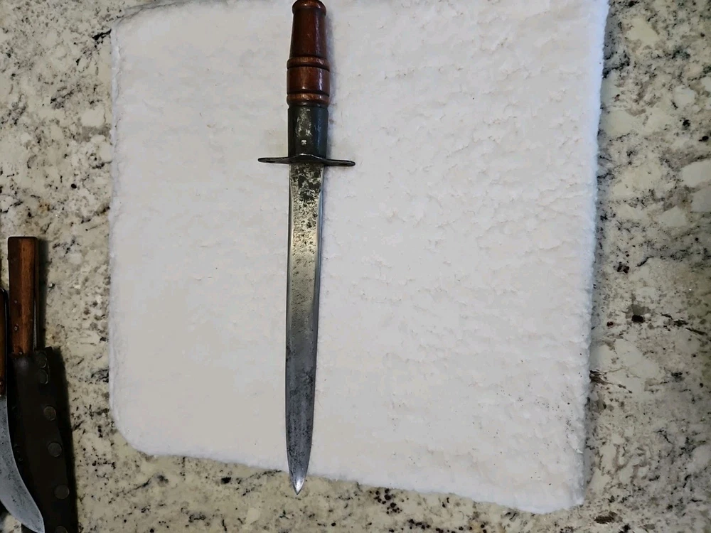 This antique large Bowie knife dagger is a stunning piece for any collector of knives, swords, and sabers. With its unique design and intricate details, it is sure to catch the eye of anyone who sees it. The blade is made of high-quality materials and has been well-crafted, ensuring that it will last for years to come. The knife dagger is perfect for display or as a functional piece for collectors who want to add a touch of history to their collection.