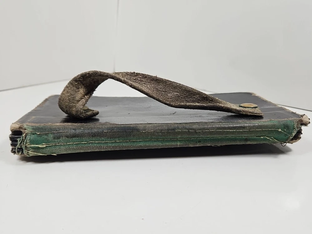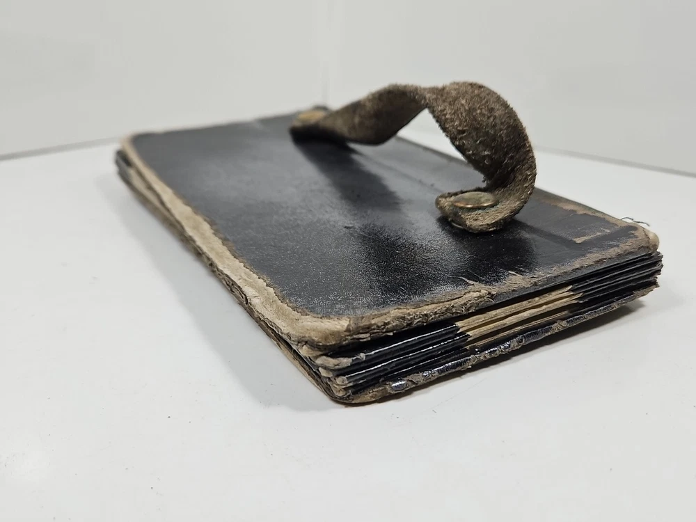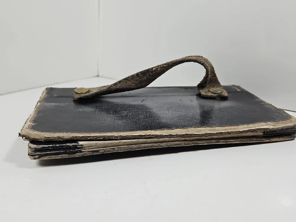 Antique Leather Notebook Hard Pages Workshop Booklet Leather Strapped Good used condition. Light wear from age and use. Markings from age and use. See pictures Product will be shipped timely and packaged with care. Offers are encouraged. Please feel free to reach out with questions. Please see pictures. Thank you. Heavy signs of age and use. Worn corners and edges. Estate find Morton illinois. Sold as is seen. This antique leather notebook is perfect for those who value the classic look of a bound book. The cover is made of high-quality leather that gives a sleek and sophisticated appearance to the item. The notebook is ideal for keeping track of important dates, notes, and sketches. It has hard pages that provide a sturdy support for your ideas, while the leather strap ensures that the notebook stays securely in your hand. This item is perfect for those who want to add a touch of elegance to their everyday life. MRE1