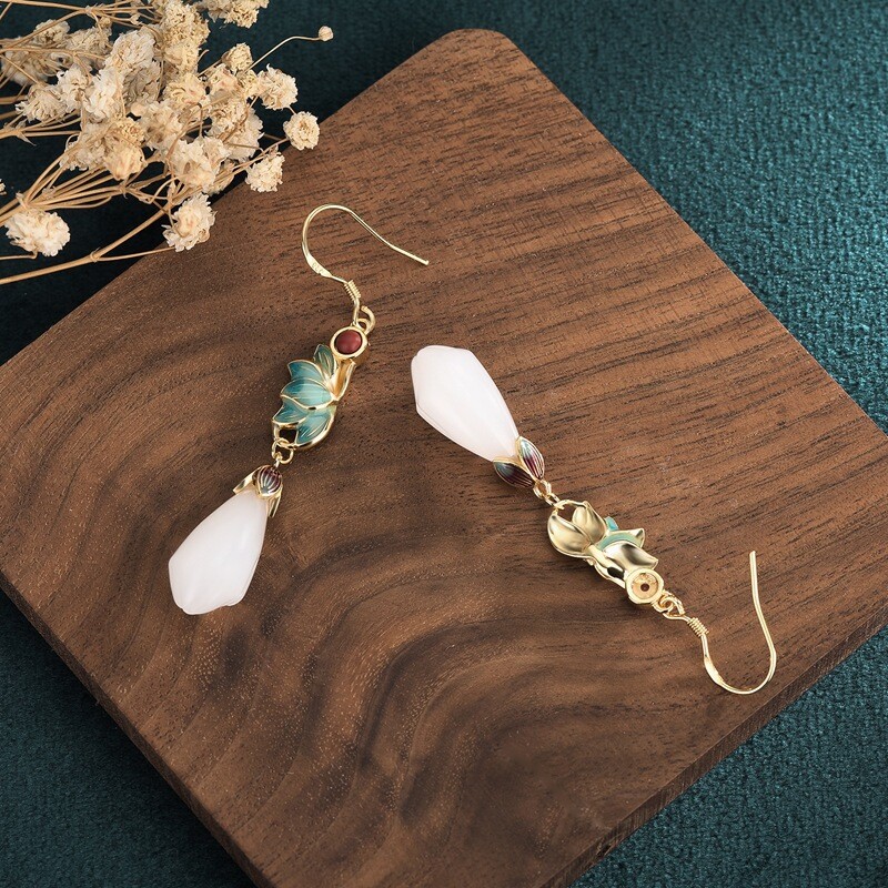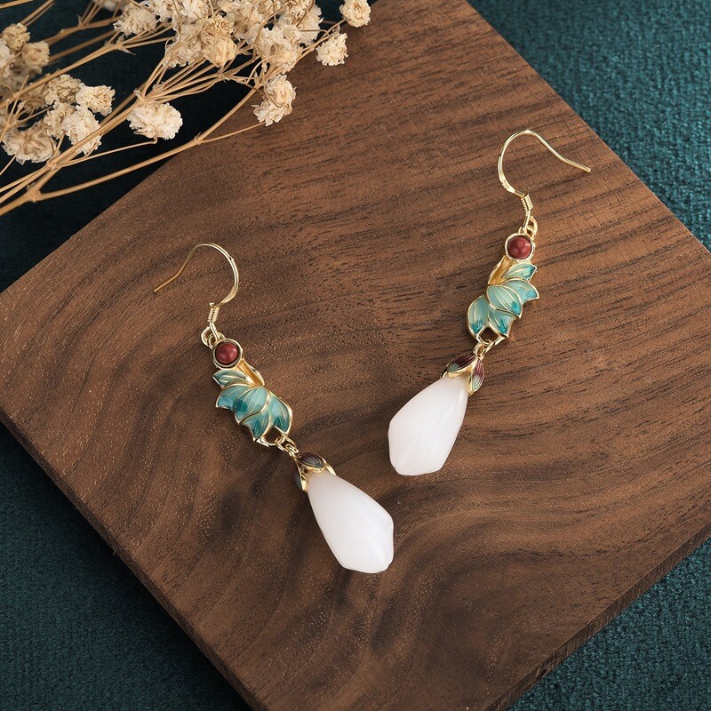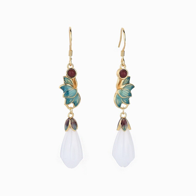 Antique Magnolia Earrings Chinese Royal Court Jewelry Vintage Elegance
