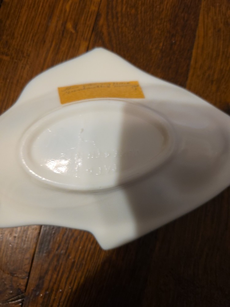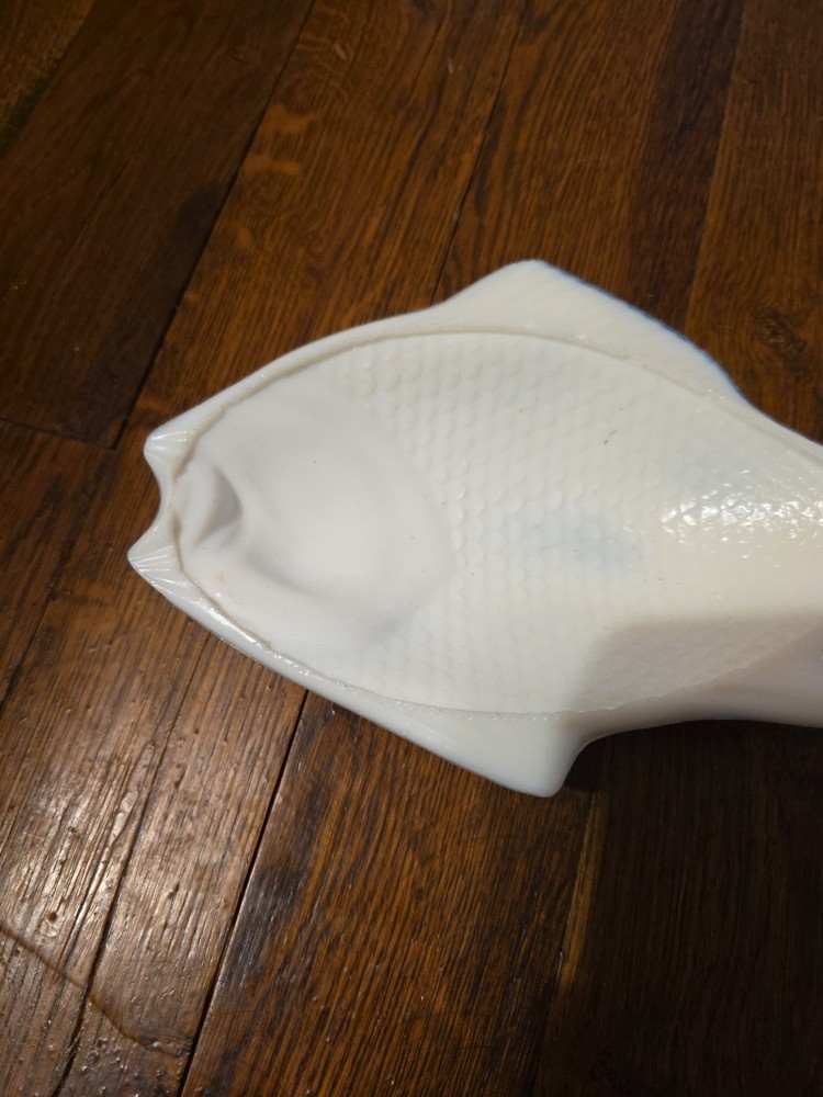 This antique milk glass bowl is a unique addition to any collection. The bowl features a beautiful fish pattern and is marked as patented June 4th, 1872. Its classic antique style and white color make it a charming piece for any home decor. Made of high-quality glass, this bowl is perfect for serving fish and other dishes. A great collectible item for those interested in kitchen and home serveware.