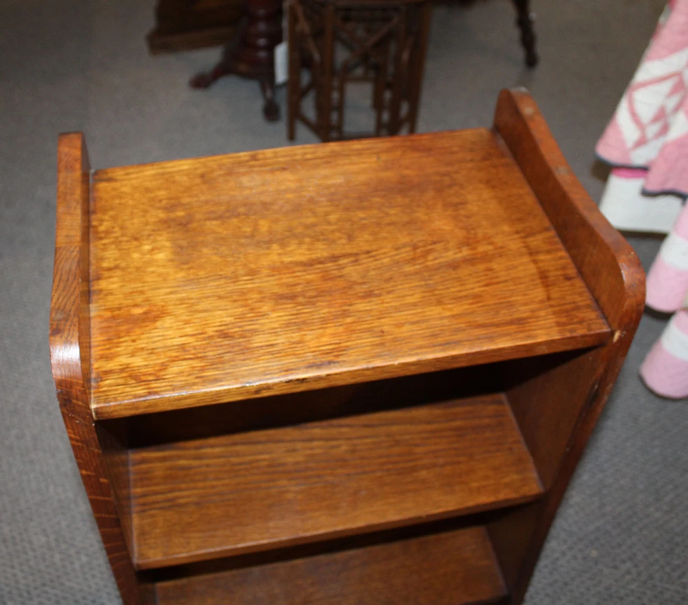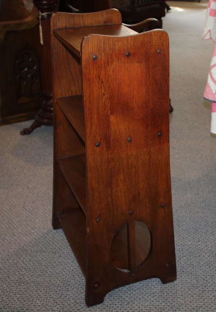 Bargain John's Antiques has been in business in the same location for 50 years. You can bid with confidence knowing that this item is guaranteed, well represented and supported by our experience. We specialize in American Antiques from 1840 to the 1920's. Quality that has been our mission statement since we began. We can ship anywhere throughout the United States and work hard to make international options available. If you have any questions, please contact us. Antique mission oak Limbert magazine stand, number 300 Limbert piece that features four shelves supported by slab sides with an oval cut-out design on the lower sides, original finish, signed and numbered, 16 1/2” wide x 10 3/4” deep x 37” high on the top of the stand, and at the base this piece is 20 1/4″ wide by 14 1/4″ deep. Good original condition. Please contact Bargain John's Antiques with any questions that you might have. We will ship items internationally, please call us for shipping rates. All shipping rates quoted on eBay are base rates to the continental United States. These rates are subject to change depending on the location and circumstances of the buyer. Contact us if you want a complete personalized quote. Nebraska residents pay 7% sales tax. Bargain John's Antiques Inc. is a family owned and operated Antique Store that has been in operation since 1968 in Lexington, Nebraska. We are actively buying and selling quality American Antiques of the period from 1840-1920. Our inventory will represent some of the finest antiques of this period. A place where you can deal and be assured that there are NO REPRODUCTIONS! Our shop is located just 2 miles north off of Interstate 80 in the Central part of the state. We are open Monday - Saturday 9:00 - 5:30 and Sunday 12:30 - 5:30 Central Standard Time. Bargain John?s Antiques wants satisfied customers, and we are going to work with you from beginning to end, we allow for returns, we just ask that you communicate your intentions upon receiving the item that you will be returning the item. Once item is returned your refund will be issued. Again, please contact us with any questions. We are offering several unique and top - quality items. Look thru our listed items to get a better look at the quality that we offer!