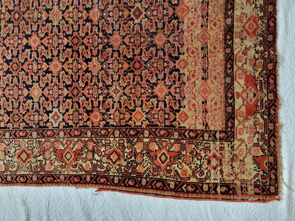 This Antique Oriental Malayer Wool Rug in size 4 x 6 ft features a traditional tribal geometric design, perfect for adding a touch of Asian culture to any room. Hand-knotted with wool, this unique rug showcases intricate geometric patterns and vibrant multicolor hues. The Malayer regional design, along with the handmade quality, ensures that this rug is both a functional and decorative piece for your home.
