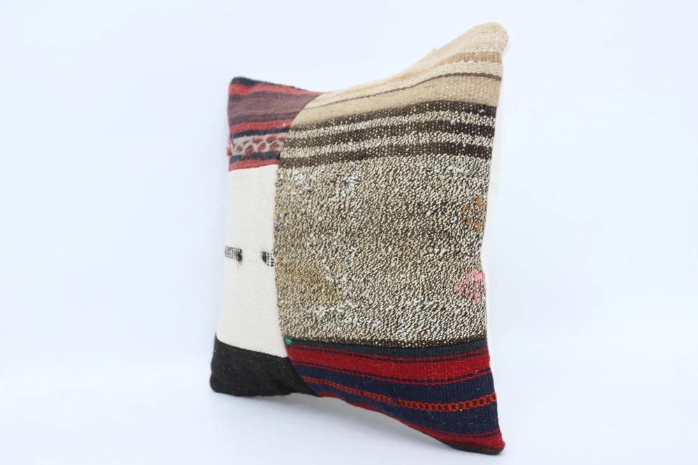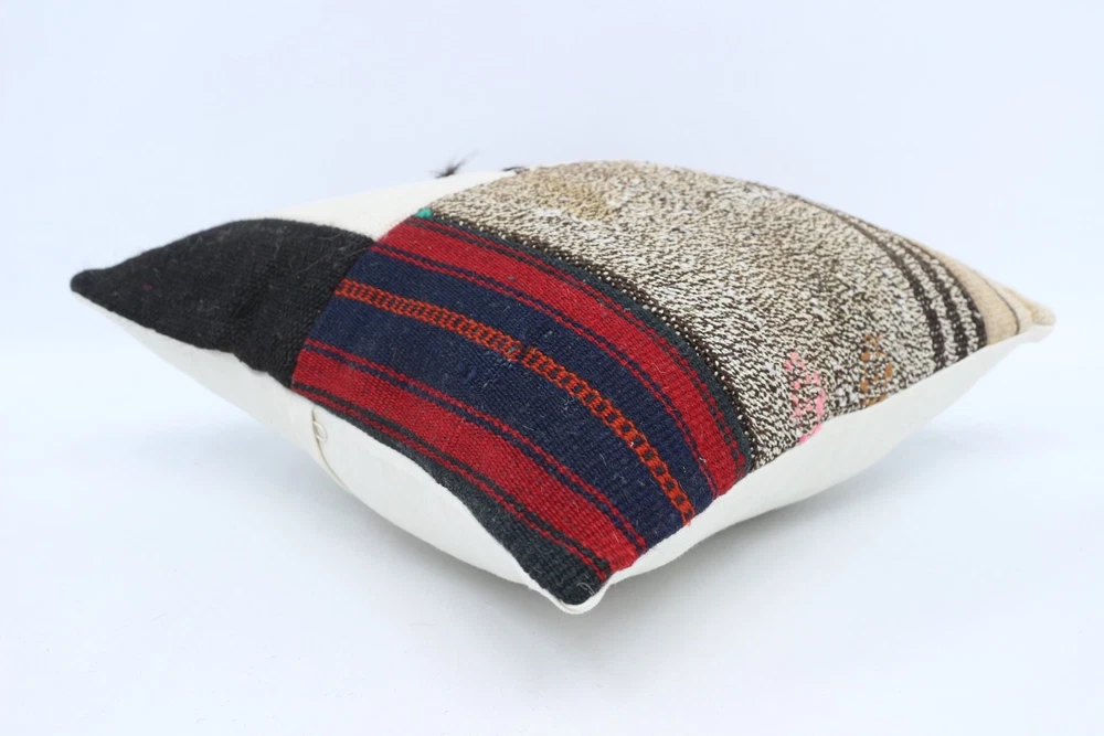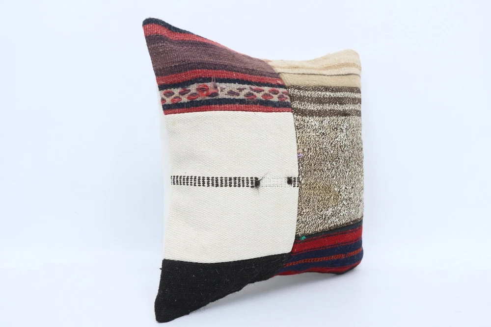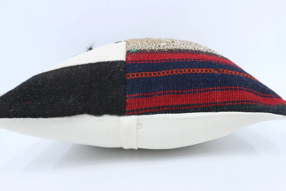 Kilim Pillow Details: All of my beautiful pillow covers or cushion cases are designed and made by me. I am making my throw pillow covers from handmade vintage rugs, Turkish rugs. Therefore, each of my vintage kilim pillowcase is one of kind. These cushions covers are piece of an art. The size of this pillow is 16 x 16 inches or 40 x 40 cm. The front side of this decorative pillow cover, cushion cover is wool on wool vintage kilim rug. The backside of this throw is high quality cotton fabric with a high quality zipper. This listing has 2 option for this handmade pillow. You can choose with insert or without insert. The listing photos is with insert in the pillowcase which is just for demonstration purpose. All of my vintage Turkish rugs have been professionally washed before I cut them as pillow case or cushion case so these kilim covers are 100 posent clean and ready to use. Due to the age and handmade nature of these vintage rugs, there might be imperfections and flaws that are not considered defects. This is a piece of a handmade vintage rug with minor signs of wear consistent with age and use that give it an antique look. You can see the condition of the rug pillow clearly in the detailed photos. I am going to ship your order of decorative pillow as soon as possible. I usually ship in the next day with DHL Express or FedEx which will deliver the kilim pillow, cushion cover just in 3-5 business days. It is my responsible until you receive pillow cover or pillow cover with insert at your door. If the pillow cover or insert get lost or damage during the shipping, I will ship the new kilim pillow cover or pillow insert for free as soon as possible. I take photos of my throw pillows indoor with professional camera which shows the real colors. The photos of these Turkish pillow covers are not altered. Keep in mind the colors of the rug vary slightly in different lights. Please contact to me for additional photos. I take the photos of my vintage rugs outside with daylight to show you the real and natural colors. My photos are not altered. Keep in mind the colors of the rug vary slightly in different lights. Please contact to me for additional photos. SATISFACTION GUARANTEED for your order in my shop. Your SATISFACTION is the most important to me. Please write me if you have any question or if you don't like anything from my pillow covers, cushion covers. If any reason, you are not happy from your Turkish pillow cover, I accept return without any hassle. Please read my shop policies for details. This cushion case or pillow cover can be used as decorative throw pillow, gift pillow, Christmas pillow case, bedding pillow, lumbar pillow, sofa pillow, bohemian pillow, boho pillow. You can find in any kind of Turkish kilim pillow cover in different design such as striped pillow, embroidered pillow, and geometric pillow.
