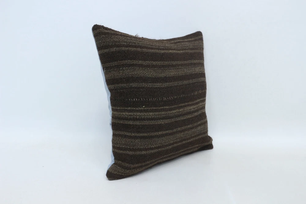 Antique Pillows, Cushion Case, 16"x16" Brown Pillow, Turkish Kilim Pillow