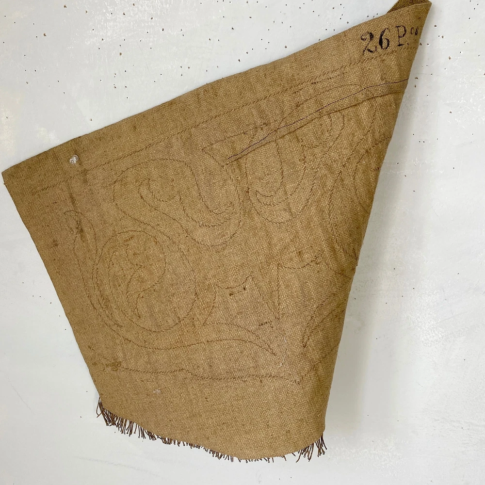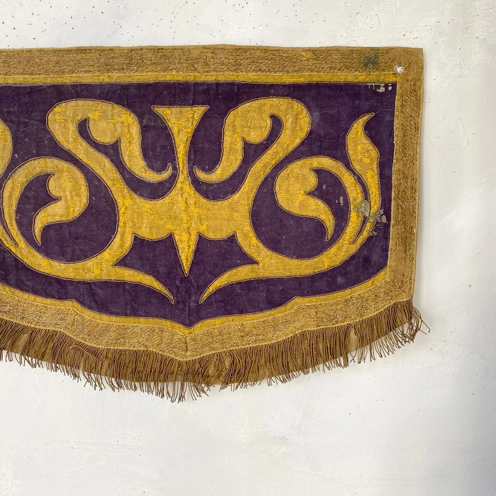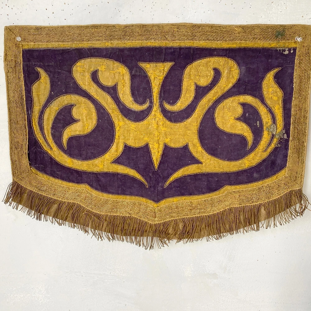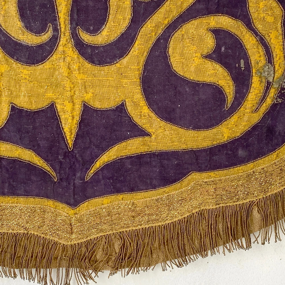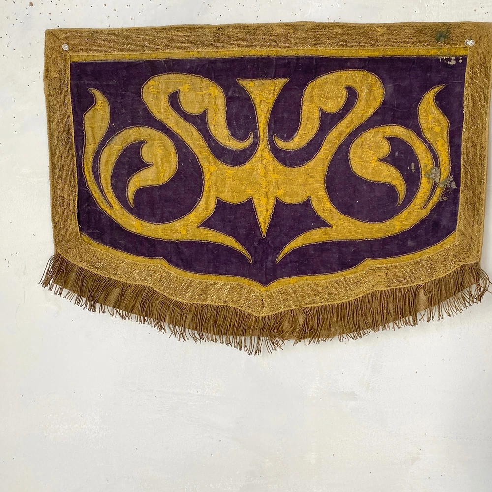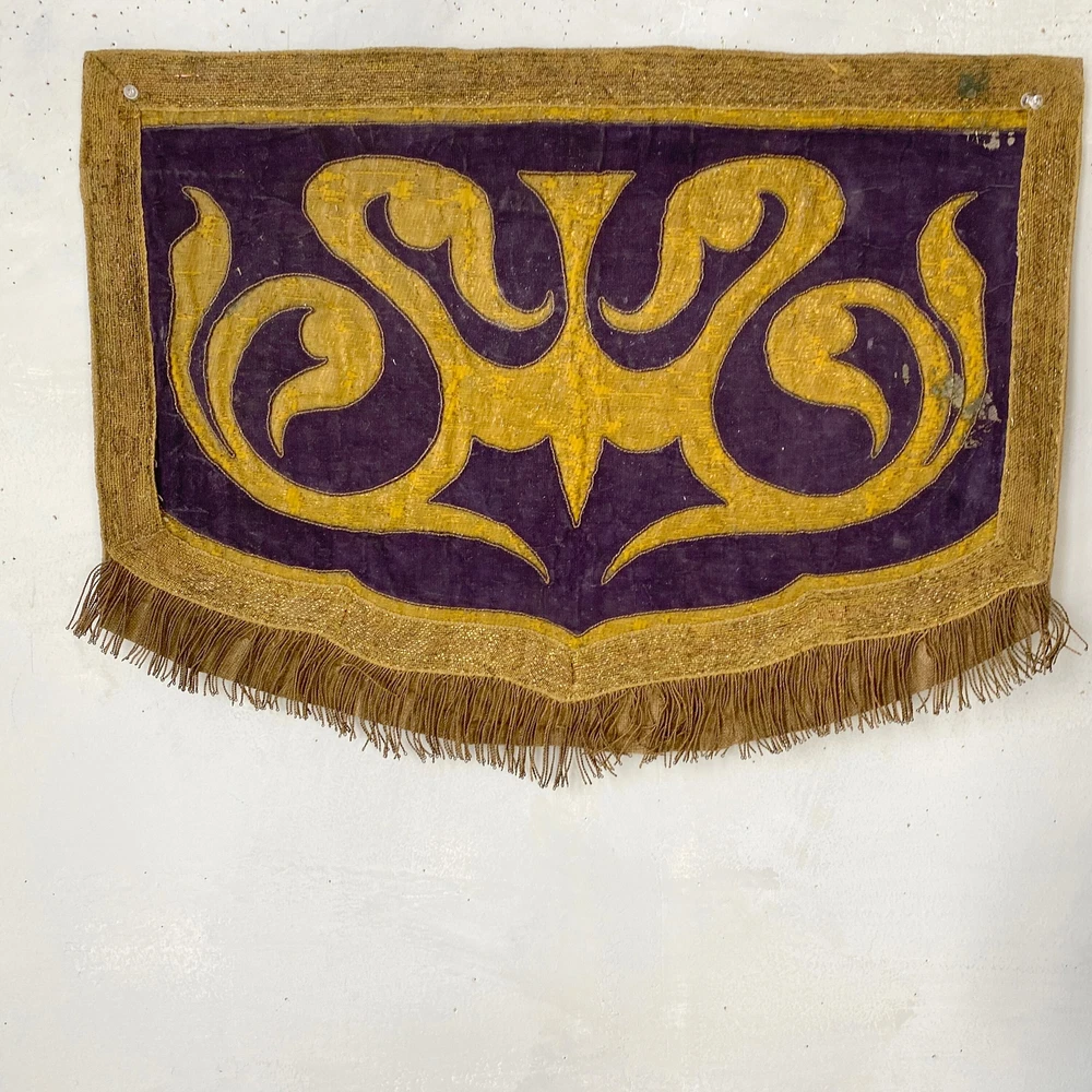 ~*~ Hello and Welcome to The Textile Trunk! Please follow us on Instagram @textiletrunk ~*~ We are so incredibly fortunate to have acquired a remarkable collection of beautiful 18th century Portuguese brocade and appliqué panels! (Please visit my store category called “1700s Brocade Appliqué” to see additional pieces in our collection!) Exquisite and rare, these textiles date from approximately 1725-1750. These pieces were found lovingly stored in a convent but are not religious; in the 18th century (and prior), when expensive textiles became unfashionable the aristocracy would often donate pieces such as these to the church as a way of gaining favor with God. Thankfully, due to being so carefully stored, they remained in the state in which they were donated! Due to their bold, large-scale designs, we can deduce that most likely these incredible pieces would have hung in a large, grand (and no doubt opulent!) room. The back of these textiles often have inventory stamps from throughout the years of being stored and cataloged through time. This textile is a remarkable, hand worked combination of Genoa velvet with hand stitched woven brocade designs. The brocade appliqué was backed in paper before being hand stitched in place. They are trimmed in a hemp cording that was first wrapped in a metallic thread that used linen and possibly some silk. It is a remarkable find, ideal for any collector or museum. This textile would also make beautiful wall hangings or decorative table runners, or these could be deconstructed for the fabric – they would incredible made into pieces such as decorative pillows. I have multiple of this particular textile that are almost identical! If you would like to purchase more than one, simply add to your cart and change the quantity to the number you would like to purchase! We also have other pieces that are the same size and design, but with the brocade in purple velvet on a gold background! You can find them here: https://www.etsy.com/listing/1123952500/antique-portuguese-18th-century-brocade MEASUREMENTS: This textile measures approximately 22 inches wide by 15 inches long at the deepest point CONDITION: This piece has been kept in the original, as found condition, and has not ever been laundered. This textile is over 270 years old and is in remarkable condition for its age. There is a gray substance that has dried on the surface and is crackling off; it might be able to be cleaned by hand with a brush, but I have left it in as found condition; please see photos and use the zoom feature to see details. The condition of this panel is reflected in the price. There will be flaws on this textile commensurate with age. There may be some voiding in the silk, some unraveling of the stitching for the applique, and/or some marks on the back where it once hung on a cold stone wall. Please note the importance of viewing the photographs carefully (and using the zoom feature) to view the condition of each piece in detail, as that is the best guide to be sure it’s right for your project or use. Please do feel free to email me with any questions about a specific piece; we are always here to help and are happy to answer questions! inv #: P220 12/8/21