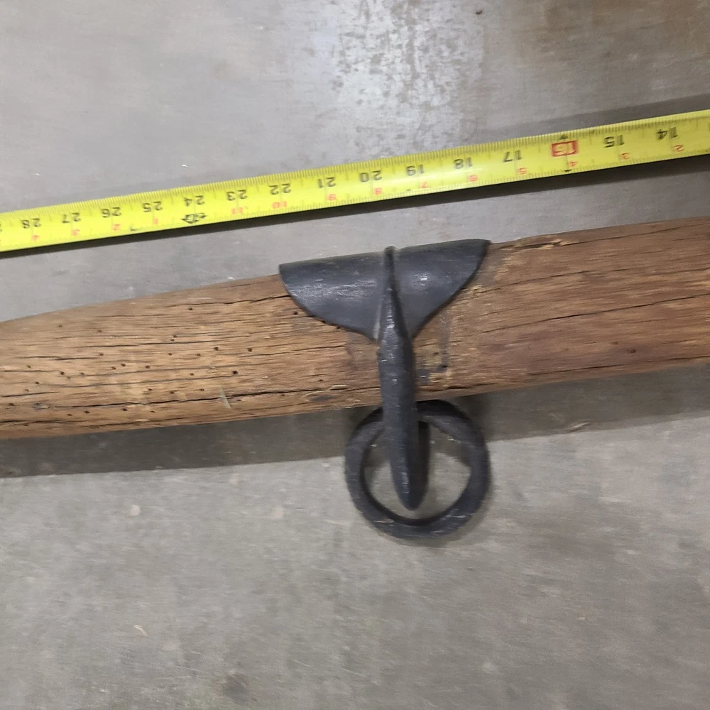 This is for a Antique Primitive Wood Cast Iron OX HORSE FARM Yoke Single Tree 36" Barn County. This is a well made yoke with iron end caps each with tear drop shape rings with hook's(see pictures) and a 3" ring in the center. The over all length is about 36" long and it's about 3" thick. This is very solid in great condition for it's age. Thanks for looking!