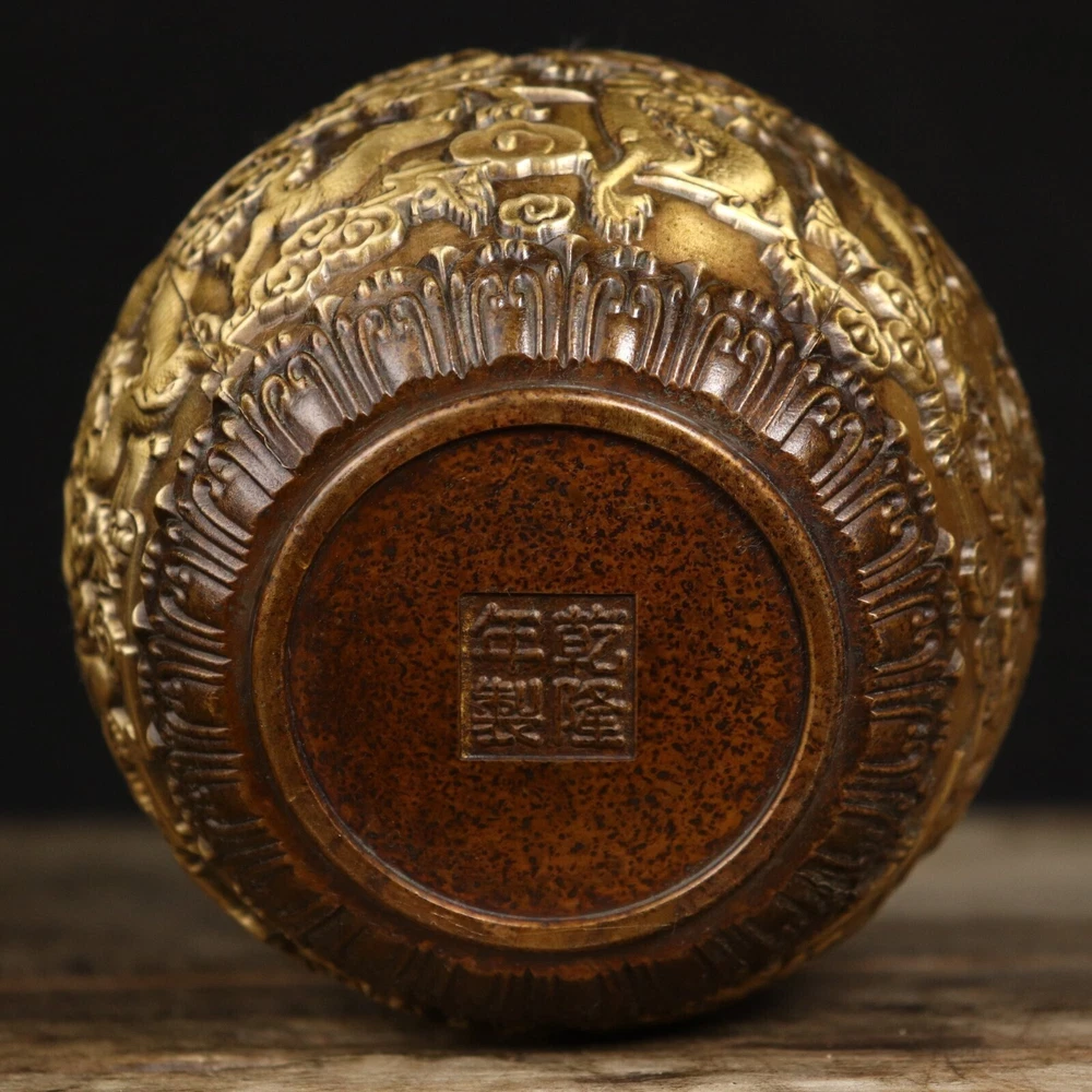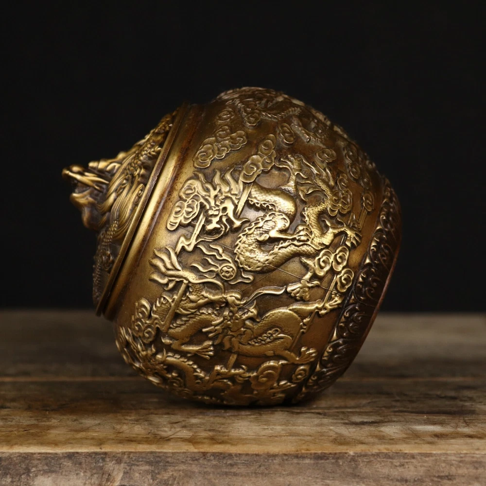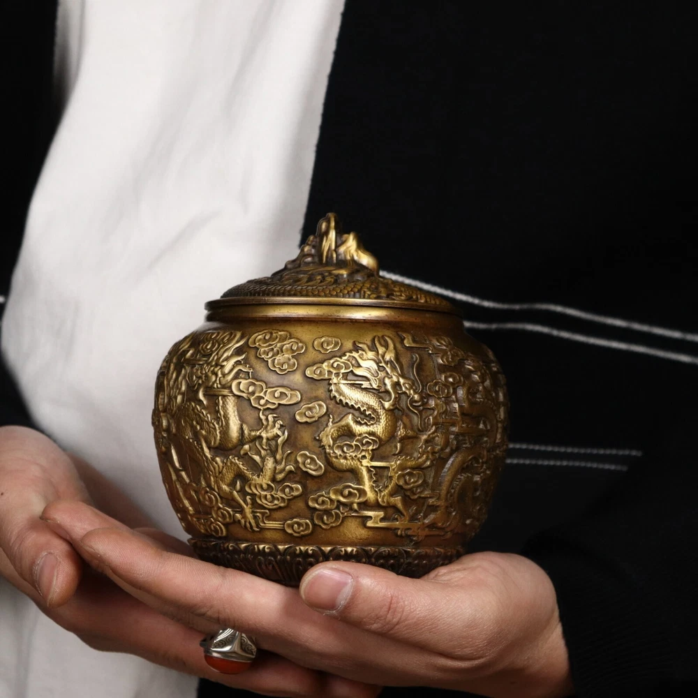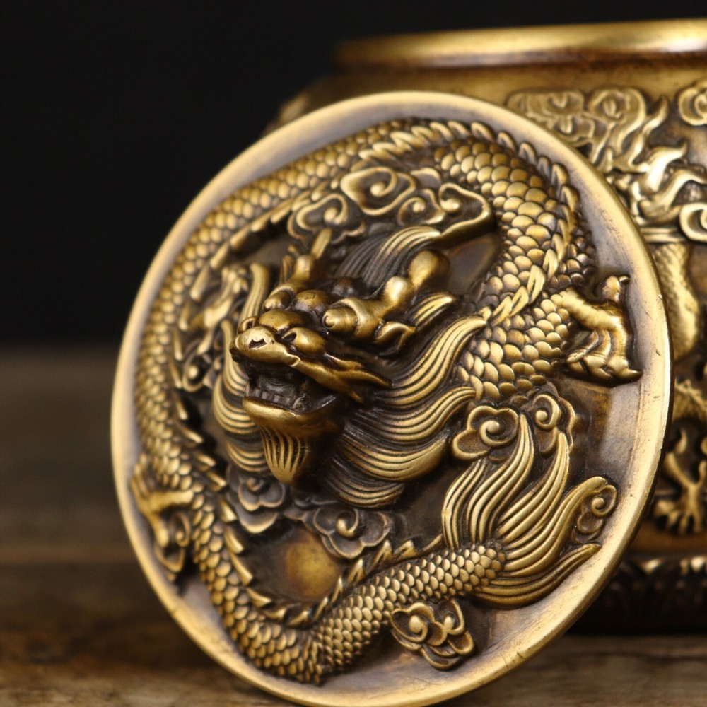 Product Description; Antique Pure Copper Tripitaka Paper Colored Nine Dragon Jar This dragon jar is made of refined copper casting, with nine auspicious dragons. It is hand polished and has the color of hidden scripture paper. The carving is exquisite and lifelike, with delicate polishing and a heavy hand feel. This dragon jar has the meaning of attracting and receiving wealth, Caliber: 9cm Abdominal diameter: 12cm Height: 12.8cm Weight: Approximately 1050g; 01jxlf Payment Delivery details Terms of sales About us Contact usPaymentWe only accept PayPal paymentDelivery detailsUnited States: By China post 7-15 working days delivery! Other countries Regular AirMail Takes 25-40 working days If you need to quickly get it, you need to pay extra shipping costs All items will be shipped within 1-7 days upon receipt of cleared payment.Terms of sales Communication can solve 100% of problems, we care every single customer. If you have any questions please do not hesitate to contact us , We will give you an answer and give you the best price within 24 hours Non-professional photography. As the light of reason. Pictures anditems may have a little color difference. Please understand About usAll items sold by us are being described to the best of our abilities, as accurate as possible, and with utmost conscientiousness on our part. However, to avoid any potential oversights, I respectfully request your assistance in helping us to make this a mutually satisfactory transaction by thoroughly reviewing item description and photos, and asking all questions PRIOR TO BIDDING. Please Note that size and color representation are subject to manufacturing variance and may not be exact. Also note that monitor settings may vary from computer to computer and may distort actual colors. Please read these terms thoroughly before placing your bid.Contact usMy goal is to try our best to fulfill your satisfaction. If you are not satisfied with our products, please contact us, we will give you a satisfactory answer!Thank you very much!!!!!!