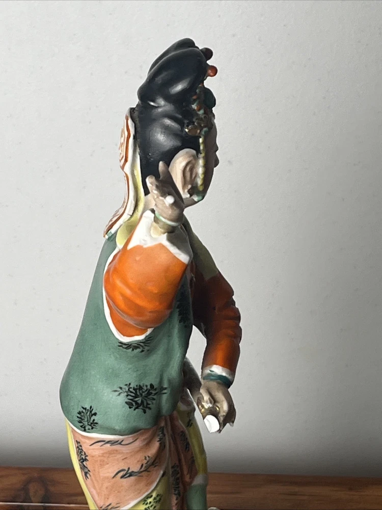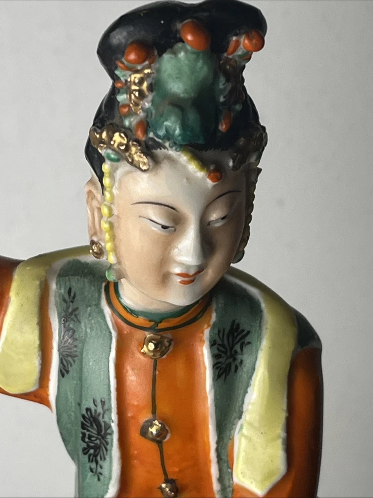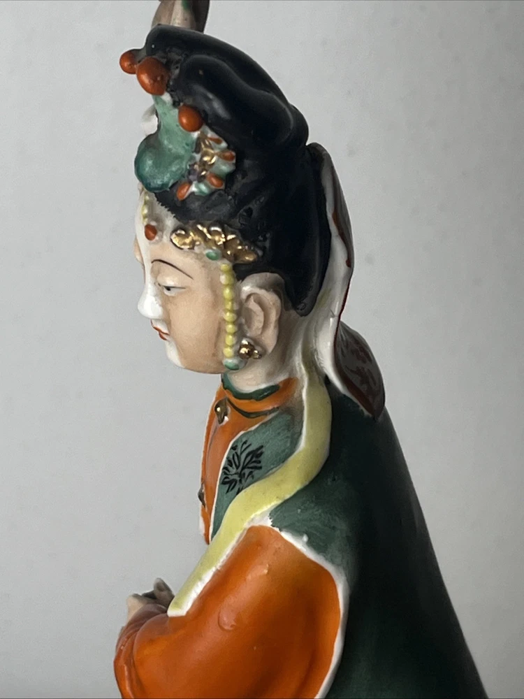 Signed The product is an antique Qing Republic Chinese Famille Porcelain Guan Yin God Goddess signed by a Chinese scholar artist. This beautifully handpainted figurine stands at 7 inches tall and originates from China, specifically dating back to the early 20th century between 1900-1940. The intricate details and vibrant colors make this unique piece a valuable addition to any collection of Asian antiques, particularly in the theme of Kwan-yin. Has some ware please see photos