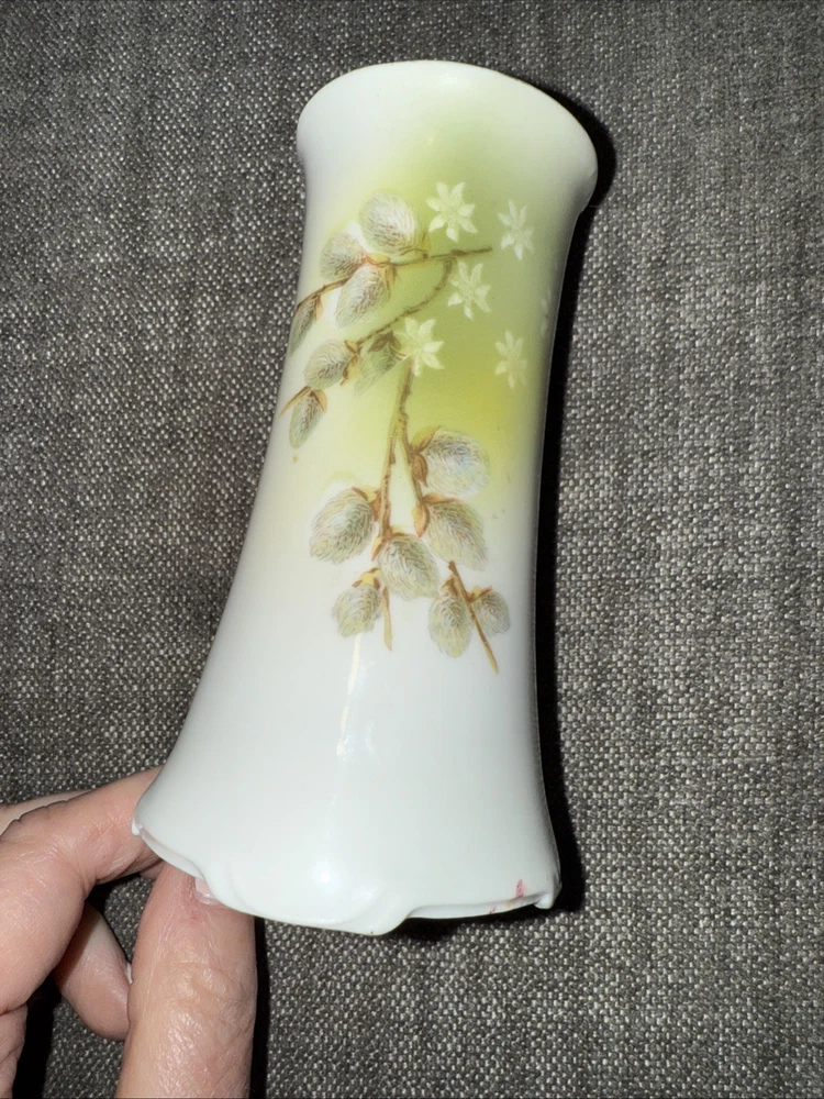 Antique pretty white and green porcelain hat pin holder very good condition.