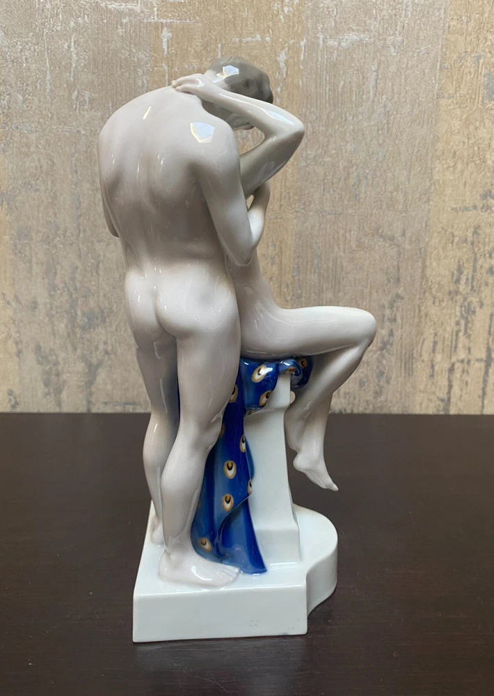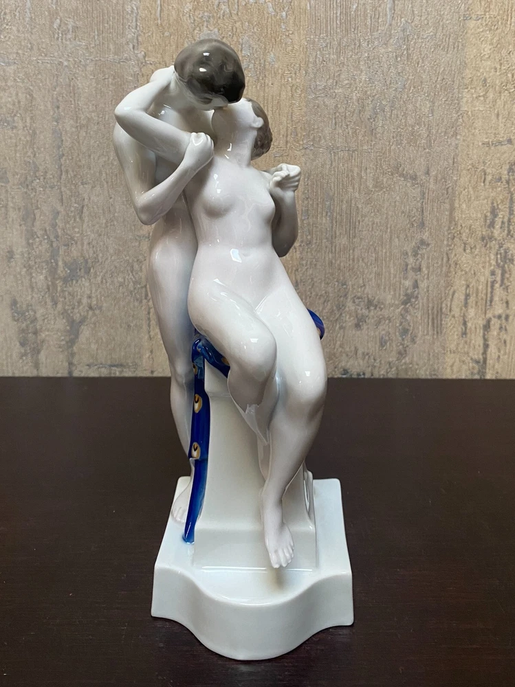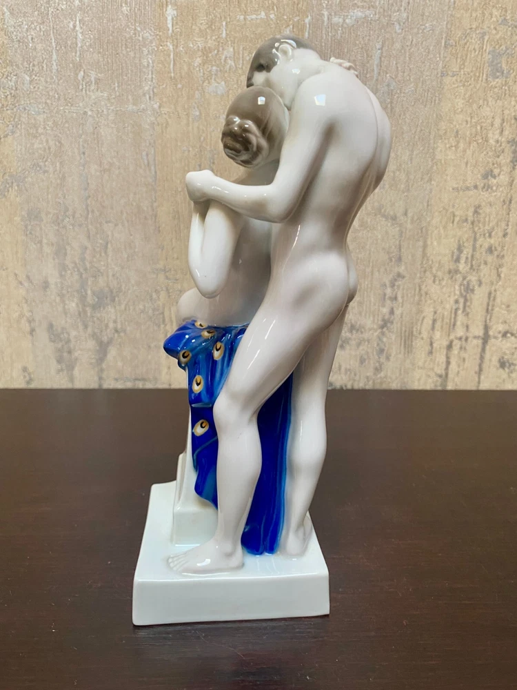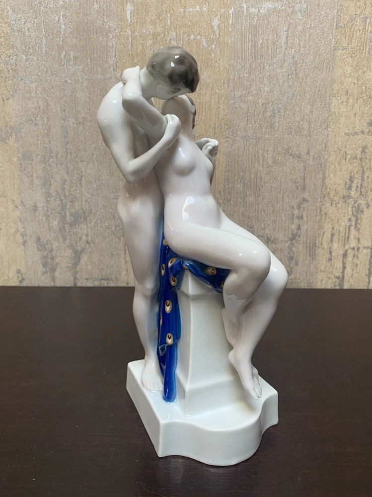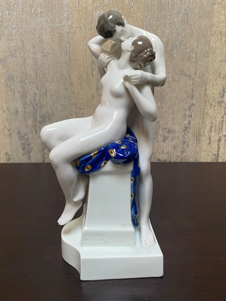 Antique Rosenthal "Spring Of Love - The Kiss" Porcelain Figurine Richard Aigner Rosenthal Porcelain Figurine, No 295 "Liebesfrühling, Der Kuss / Spring of Love, The Kiss", by Richard Aigner München. A kissing couple - a sitting woman kisses a standing man. On the bottom of the figure is the stamp of the manufacturer Rosenthal. On the base of the figure is written in raised lettering "Richard Aigner München". 10.5" tall Base 4.5" x 3.5"