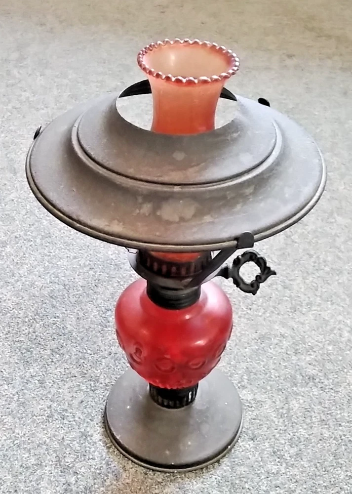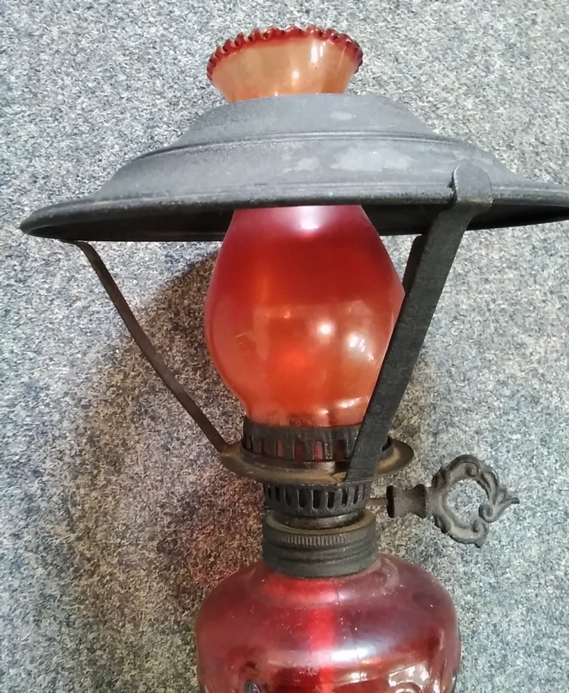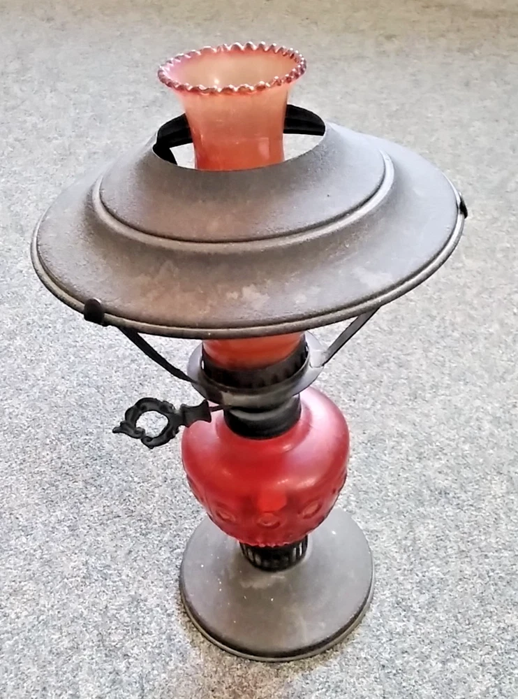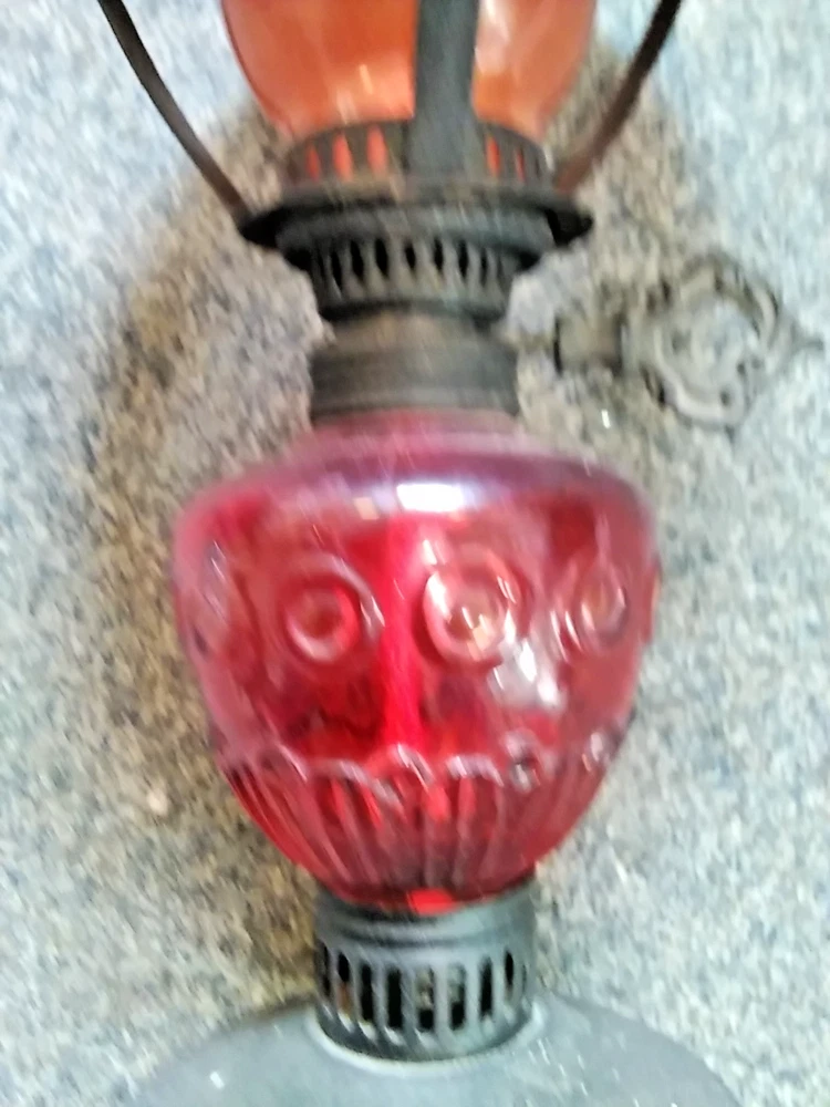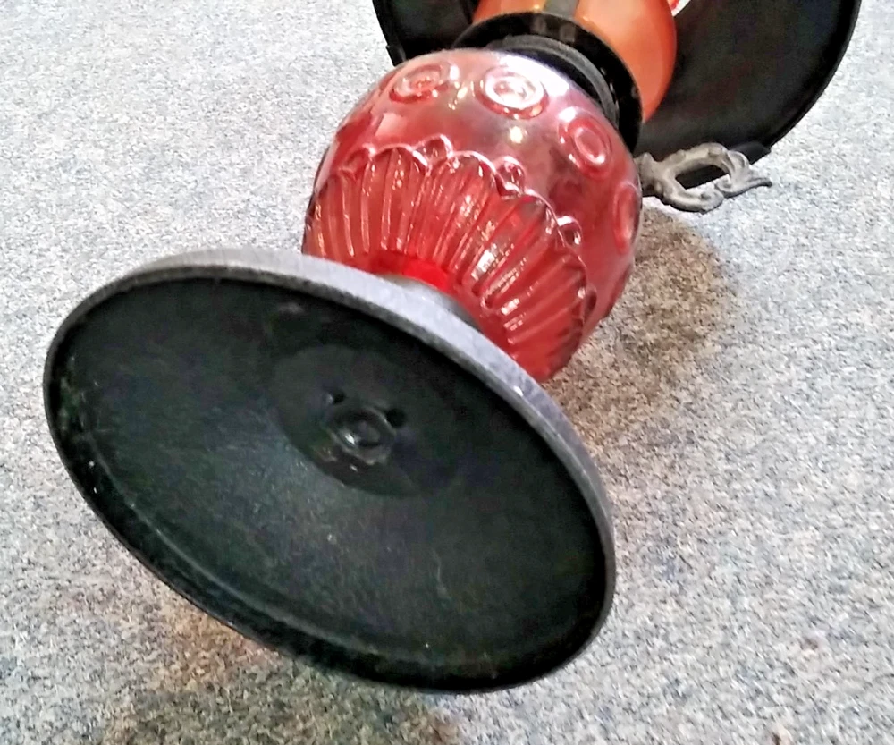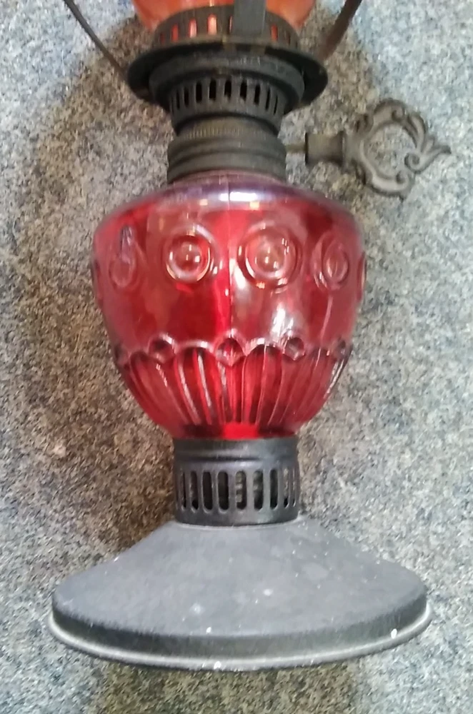 Item Diameter: 16 cm Power Source: Oil Item Height: 27 cm Brand: Unbranded Lighting Technology: Traditional Material: Glass, Metal Vintage: Yes Size: Medium Colour: Red Theme: Traditional Features: Adjustable, Glass Bulb, Metal shade Type: Oil Lamp Style: Victorian