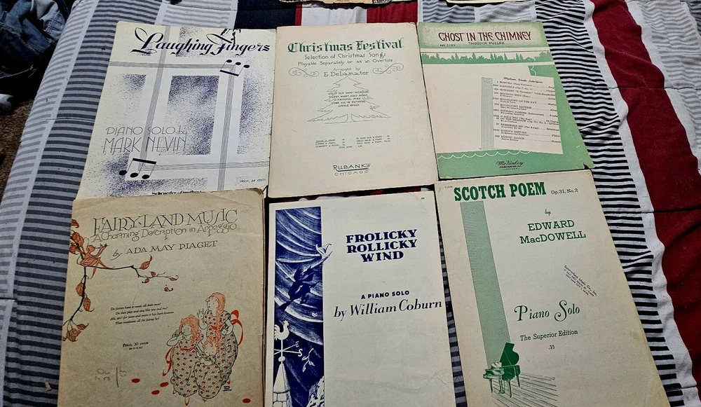 This is a lot of 6 antique sheet music pieces from various artists dating back to the early to mid 1900s. The sheet music is in vintage condition and is suitable for collectors or musicians interested in musicals. The lot includes a variety of songs and compositions in sheet music format published by various publishers. Faif condition for their ages. Years vary Good luck 👍