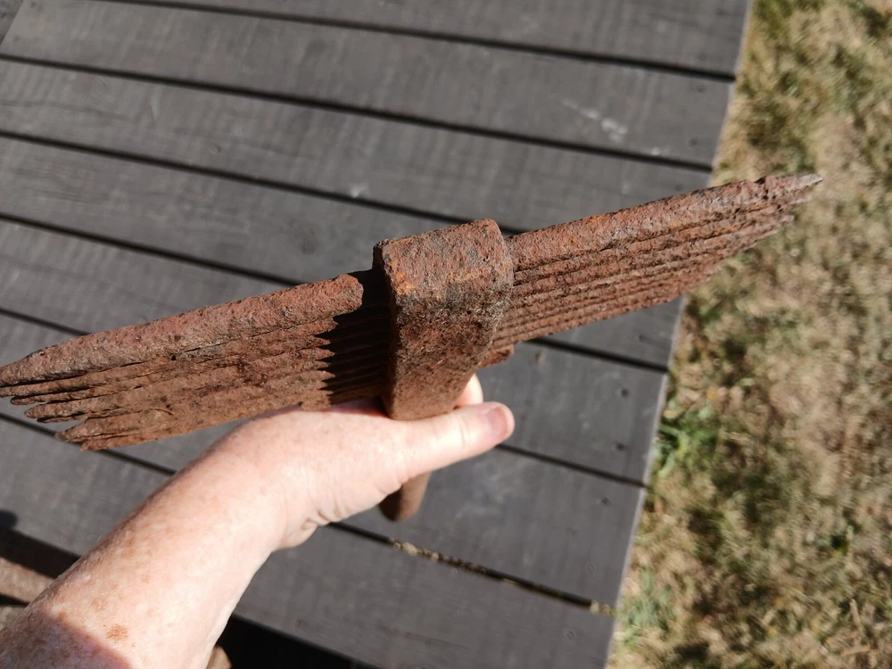 Antique Stone Masons Crandall Hammer Dressing Hand Tool Rare Primitive A rare primitive antique stone mason's Crandall hammer tool. This is a masonry tool in the Bush Hammer family which has removable spikes and or teeth that are held in place by a wedge. A 19th century stone masons hammer used for dressing soft building stones. Solid steel handle. Handsome tool for dressing soft building stones. 17.50 inches long overall. Eight mounted 8.50 inches long spikes. Please note all photos for they too are a part of our description. Inv. ee Also please note local pick up is available. SHIPPING We will combine purchases upon requests. We ship most all of our items USPS. We also Ship International. We are also professional packagers. We do pack with air bags, newspapers and other types of light packaging fillers. Insurance is your choice but we cannot be held liable for damaged or lost items if they are not insured. Also, all our items are not guaranteed for their original purposes. We promise to treat your item with care and respect when packaging for transport. Nearly all of our items are from a secondary market. We make every effort to describe any flaws or damage. Please note all photos and contact us with all questions before purchasing our inventory. We never intend to misrepresent our listings. If you select local pick up, please call us to set an appointment time. Please pick up your purchases within thirty days unless other arrangements have been made. Note: Funds need to be cleared before item(s) are picked up. If your item(s) you purchased from sugarcreekantiques1 have not been picked up within sixty days, we have the right to resell said item(s) and the buyer forfeits all payment(s) made on said items. NOTE This item is also available for pick up at our shop by you or your chosen shipper. We always suggest getting several quotes because rates can vary from one shipper to another. You can google antique furniture shipper and many companies are available. Rules For Local Pick Up of Items In Our Place of Business and or Outsourcing Shipping. Funds need to be cleared before item(s) are picked up. If selecting Local Pick Up please call to set an appointment time. All items will need to be picked up at our business site within 30 days unless other arrangements have been made. Also, you can choose your favorite Shipping Agent or use the ones our customers have used. Please pay your Shipping Agent the negotiated shipping cost. Listed below are a few of the Freight Forwarders our customers have used: USHIP, Timothy Terhune, (VT), Transitsystems (CA), Plycongroup (NY, Canada) Local Pick Up Items will be held for 60 Days. After 60 days, if an item(s) you have purchased is not picked up, we have the right to resell said item(s) and the buyer forfeits all payment(s) made on said items. PLEASE NOTE: Shipping and handling is always disclosed in the auction before you bid. So by bidding, you agree the amount is acceptable and warrants a 5 star feedback. INTERNATIONAL BUYERS: We only ship to other countries via the eBay Global Shipping Program. Import duties, taxes, and charges are not included in the item price or shipping cost. These charges are the buyer's responsibility. Please check with your country's customs office to determine what these additional costs will be prior to bidding or buying. RETURNS: We will accept returns if we have described the item incorrectly. The refund is contingent on: The item(s) must be repackaged in the same box and in the same manner we shipped it. When we receive said package, item(s) must not be damaged and it has to be the original item(s) we sent to the buyer. Buyer will pay for the returned package to be sent to our address. Welcome to Sugarcreek Antiques All of our items we sell on eBay are antiques and collectibles. They range from the early primitives, eclectic, downright weird, to today's collectibles. You probably will find almost anything you need right here in our store. We are located in the largest settlement of the Amish in the world. We reside in the beautiful Tuscarawas Valley. It is a rich rolling countryside and it is one of the larger tourist attractions. People from all over the world visit Sugarcreek and the surrounding countryside to view our Amish Swiss German ancestry. Please add us to your list of favorite sellers.