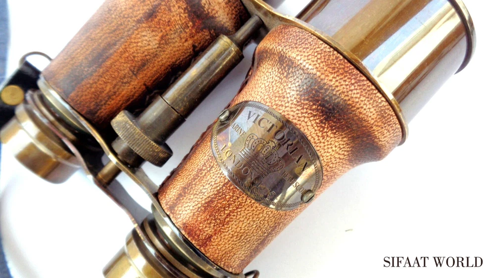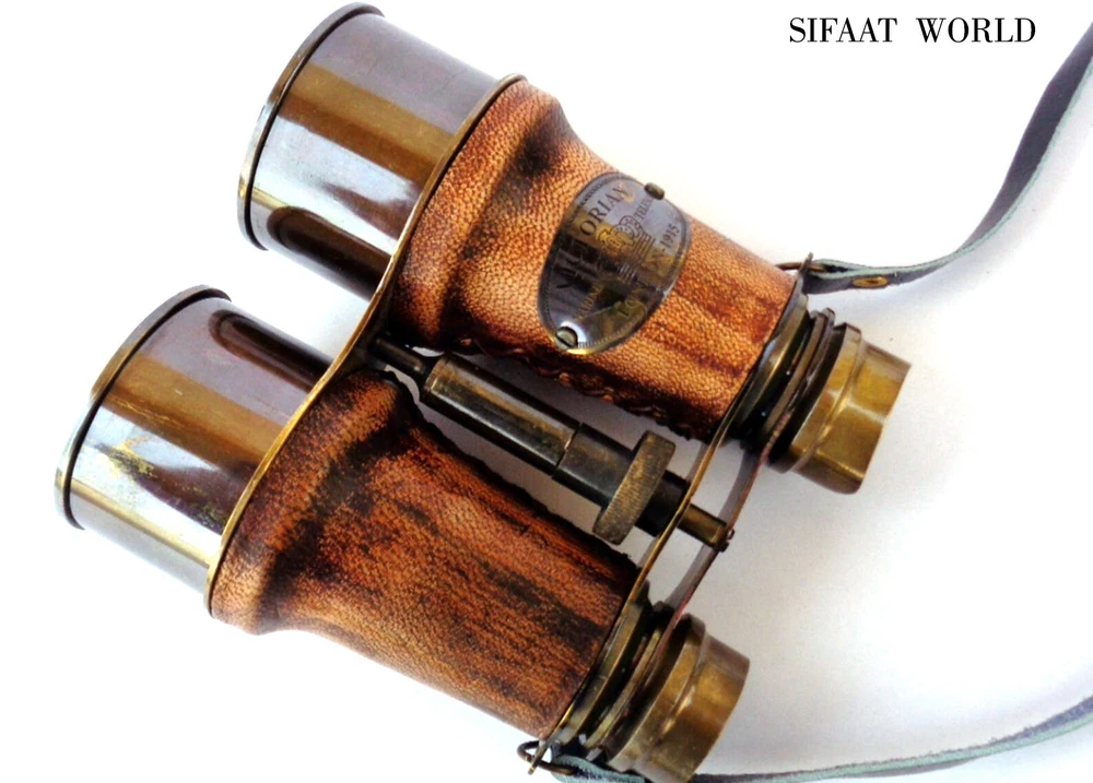 Sifaat World Antique Style Brass Victorian Marine London-1915 Red Leather Binocular With Neck Strap, Replica Material Brass, Leather Water resistance level Not Water Resistant Focus type Center Focus About this item Made of Antique Solid Pure Brass with Red Leather & Supportive Neck Strap Knurled Knob in the middle for Manually Focussing Easy to carry to any outdoor place like when you go to watch football matches,Any historical Monuments,Visiting Mountains,hills, for Hunting,Birds Watching,etc. 15x Magnification Best Suitable to gift your loved ones !!! Thanks for Visiting Best Antique & Nautical Items store at Ebay : SIFAAT WORLD This 6" Antique Solid Brass Red Leather Binocular with Supportive Leather Neck Strap made with Antique Finish is best suitable to gift your loved ones. Easy to carry to any outdoor place like when you go outside to watch football match,Any historical Monuments,Visit Mountains,hills, for Hunting,Birds Watching,etc. Material : Brass, Leather & Glass Finish : Antique Magnification : 15x Approx. Total Weight : 0.6 kg Approx. Binocular Size : 6 Inches, 15 cm Approx. All Work is Handmade. This is a Reproduction Item, Not Sold as Antique. Good Piece of Collection. Best For Gift. Useful in Travel Time. Visit Our Store: SIFAAT WORLD for Other Wonderful Items.