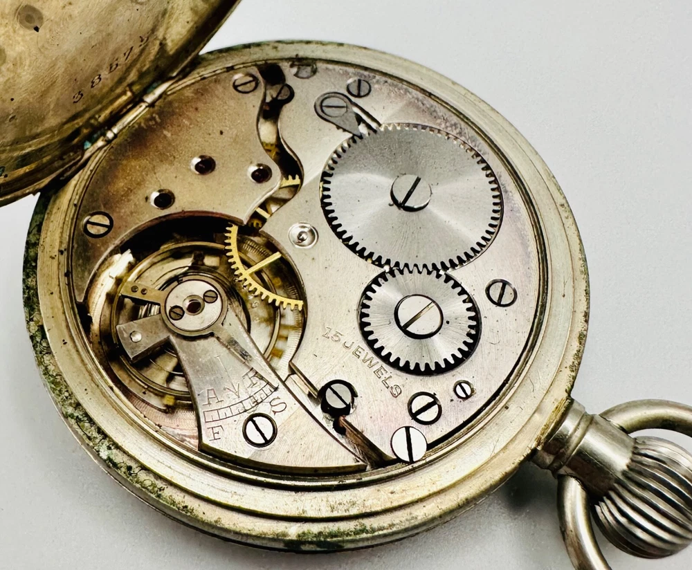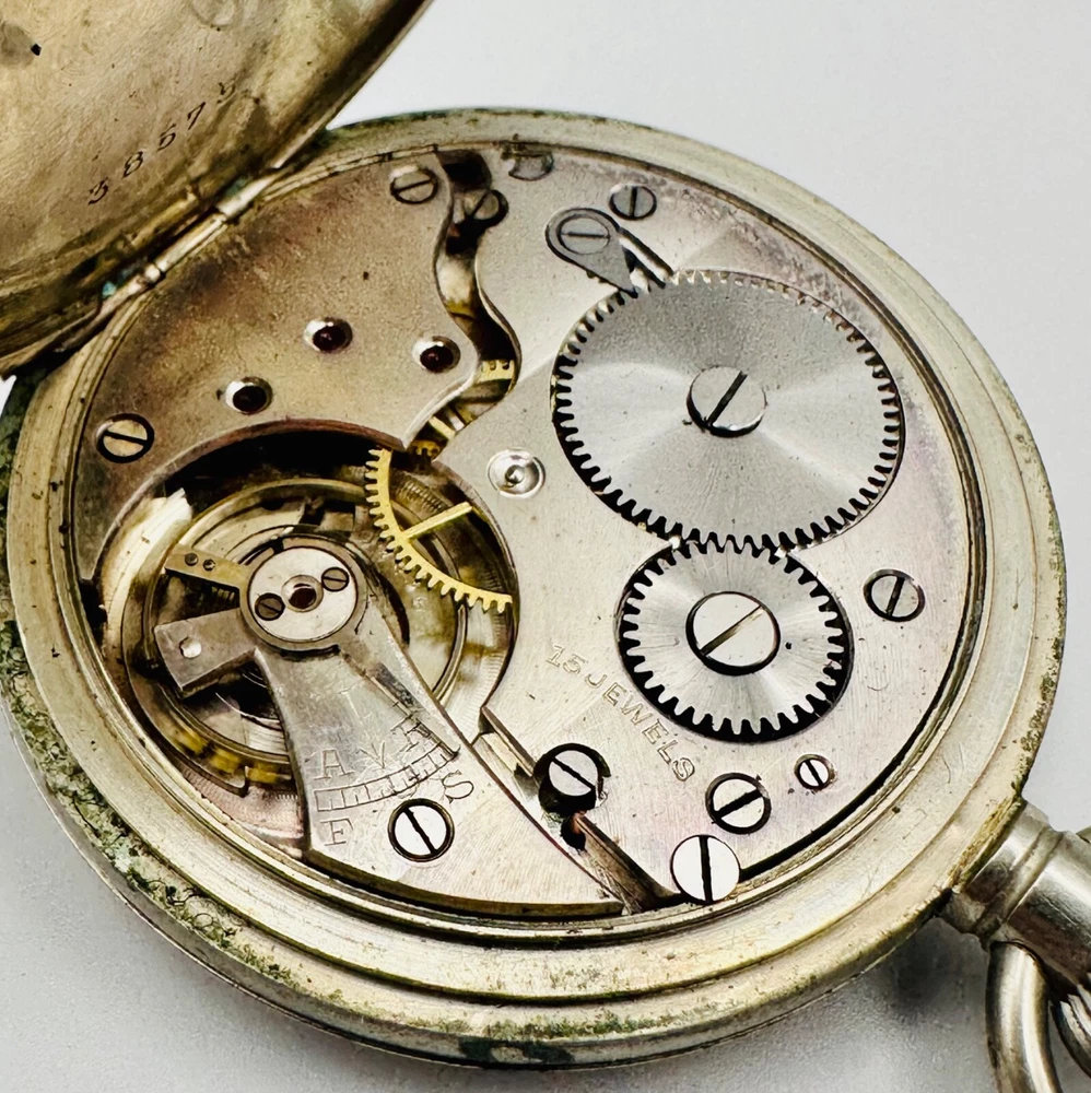 Antique Swiss Made 15 Jewel Pocket Watch - Working Discover a charming antique Swiss-made pocket watch, perfect for collectors of vintage timepieces. This watch features a reliable 15-jewel Swiss mechanical movement , which is stem wound and is currently in working condition , winding and ticking along nicely. The watch presents a classic white dial with clear Arabic numerals and a functional sub-seconds dial at the 6 o'clock position. The case is made of a durable white metal , offering a timeless antique aesthetic. This is a wonderful opportunity to own a piece of horological history, ideal for display or daily use for those who appreciate antique craftsmanship. Key Features: Swiss Made Movement: Features a 15-jewel Swiss mechanical movement. Working Condition: The watch is fully functional, winding and ticking nicely. Stem Wound: A traditional and desirable winding mechanism. Classic Design: White dial with Arabic numerals and a sub-seconds hand. White Metal Case: Robust and durable, with a classic antique appearance. Generous Size: Measures 49.7mm in case diameter. Condition: This antique pocket watch is in good working condition for its age. The white metal case exhibits some tarnishing and general surface wear, consistent with an item of this vintage. Please note that the rear case lid has been initialled , adding a unique touch of personal history to the piece. The dial appears clean and legible. Please examine the detailed photographs carefully, as they form an integral part of the description and best illustrate the item's exact condition. Markings: Movement: "15 JEWELS SWISS MADE" Dial: "SWISS MADE" Inner Case: "38575" Rear Case: Has been initialled Dimensions: Case Diameter: 49.7mm (approximately 1.96 inches). Add this charming antique Swiss pocket watch to your collection today! As usual, this item will be packaged carefully and dispatched with tracking. International shipping is available upon request.