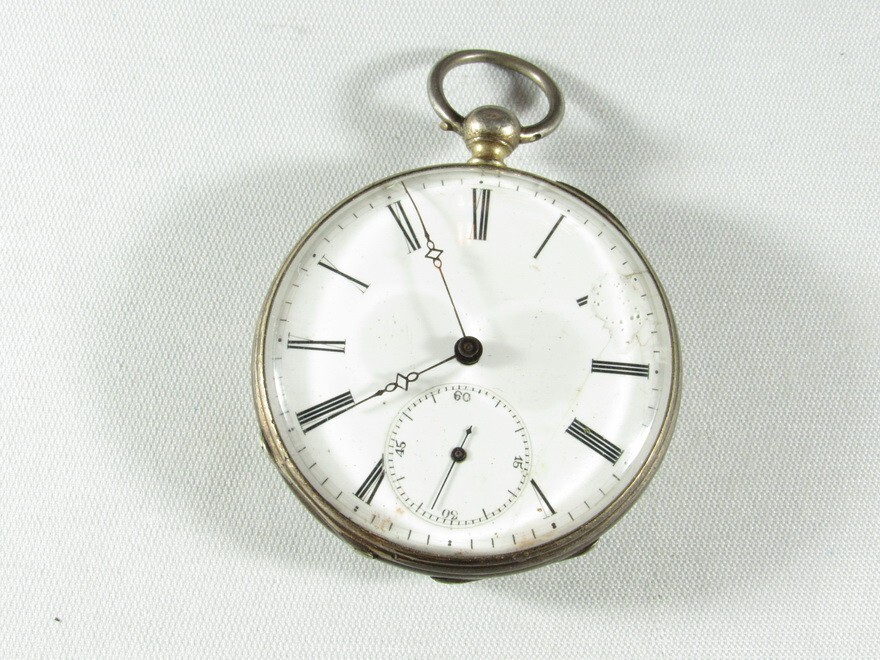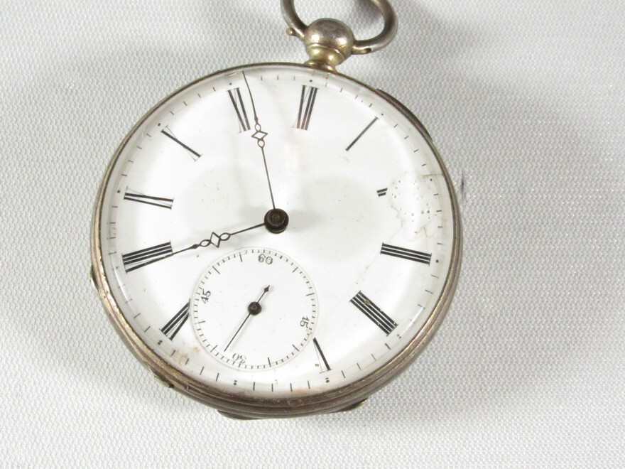 ANTIQUE SWISS OPEN FACE POCKET WATCH .800 SILVER CASE KEY WIND RUNS STOPS CASE NOT MARKED BUT TESTED TO BE .800 SILVER THE ITEMS WE SELL ARE "AS FOUND". I DO NOT CLEAN NOR ATTEMPT TO RESTORE ANY OF THE PIECES. MANY BUYERS WANT THE ITEMS THEY PURCHASE TO BE IN ORIGINAL CONDITION. I TRY TO RESPECT THAT. WE DO OUR BEST TO PROVIDE DETAILED PHOTOS AND ACCURATE DESCRIPTIONS OF ALL ITEMS LISTED FOR SALE. VINTAGE PIECES ARE NOT PERFECT AND SOMETIMES HAVE IMPERFECTIONS SUCH AS TARNISHING, WEAR TO LUSTER, MINOR SCUFFING OR SCRATCHING AND SLIGHT OXIDATION. AS WITH ALL PRE-OWNED ITEMS SOME SIGNS OF WEAR SHOULD BE EXPECTED. PLEASE LOOK CAREFULLY AT ALL PICTURES AS THIS IS THE BEST REPRESENTATION OF THE CONDITION OF MY ITEMS PHOTOGRAPHS PROVIDE THE BEST AND MOST ACCURATE DESCRIPTION OF THE ITEM AND SUPERCEDES ANY WRITTEN DESCRIPTION. LOOK AT ALL PICTURES CAREFULLY. ANY ADDITIONAL INFORMATION CONCERNING THE TRUE AGE, ORIGIN, OR IDENTIFICATION OF AN ITEM IS GREATLY APPRECIATED AND WILL BE ADDED TO THE LISTING. THIS IS A RARE OPPORTUNITY FOR YOUR USE OR COLLECTIONS. SOMETIMES WE MISS SOMETHING. PLEASE NOTIFY US IF YOU SEE ANY INACCURACY WE WILL ADDRESS THE SITUATION RIGHT AWAY. WE CARE ABOUT OUR CUSTOMERS...MAKING SURE THAT OUR CUSTOMERS FIND EXACTLY WHAT THEY WANT. WE TAKE OUR CLIENT?S FEEDBACK SERIOUSLY AND WILL STRIVE TO ADDRESS THE NEEDS OF ALL CUSTOMERS. HOWEVER, SOMETIMES A PRODUCT FAILS TO MEET EXPECTATIONS. AS A MARKET PLACE PLATFORM WE WILL ADDRESS ANY ISSUES AS SOON AS POSSIBLE. WE ARE ALWAYS READY TO HEAR FROM YOU. THE EBAY ESTIMATED SHIPPING COST SHOWN IS FREQUENTLY INCORRECT. I WILL SHIP THE CHEAPEST and BEST. I CANNOT DETERMINE THAT UNTIL AFTER THE AUCTION. MOST OF THE ITEMS I SELL HAVE RECENTLY BEEN PURCHASED AT AUCTIONS OR ESTATE SALE....THUS I OFTEN AM RELYING ON INFORMATION RECEIVED FROM THE SELLER....SO BID ACCORDINGLY. BUYER CERTIFIES THEY ARE 18YRS OF AGE OR OLDER TO BID, BUY, LEGAL TO OWN AND POSSESS IN YOUR AREA, BUYER CERTIFIES THEY ARE IN COMPLIANCE WITH ALL FEDERAL, STATE, & LOCAL LAWS PERTAINING TO SHIPPING OF THIS ITEM TO YOUR LOCATION, NO GUARANTEE/WARRANTY IS IMPLIED TO THE USE OF THIS ITEM, BUYER ACCEPTS/ASSUMES ALL RESPONSIBILITY/RISKS/LIABILITY IN THE USE OF THIS ITEM ****** IF YOU HAVE ANY PROBLEMS WITH THIS LISTING, SHIPPING COSTS, DESCRIPTIONS, COMMUNICATIONS, ETC. PLEASE CONTACT ME SO THAT I CAN CORRECT THE PROBLEM, CHECK MY FEEDBACK. YOU WILL RECEIVE THE EXACT ITEM PICTURED. I WILL COMBINE MULTIPLE ITEMS WHEN PACKING THEM WHEN POSSIBLE. ITEM WILL SHIP FROM 65804 THANK YOU FOR LOOKING. GOOD LUCK BIDDING.