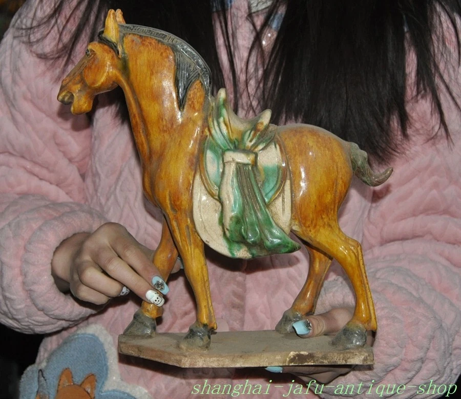 Here is an 11" Old China Tang sancai ceramics porcelain wealth animal Successful horse statue , As you can see the image, It is in good condition, and was created by skilled craftsmen in traditional style with fine handcrafts . This is a great piece of valuable collection, a valuable personal alter or a very good present. the handwork is very fine with incredible detailing. Don't miss out this chance to get it .Wish you good luck! Size: Height: 11 inch .Long: 10.6 inch . breadth: 3.6 inch Size: Height: 27.5 cm .Long: 26.5 cm . breadth:9 cm Weight: 2.1 KG----included the weight of packing materials Materials: Tang sancai ceramics porcelain Condition: Good condition Origin: China Shipping cost by EMS Express Mail ( 7------15 days ) : $Free yu