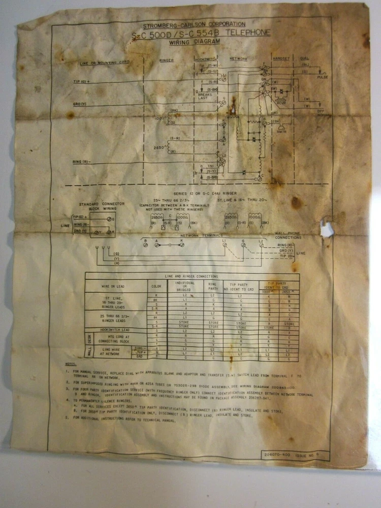 Wiring Diagram. Stromberg-Carlson Telephone. Models 500D and 554B, rotary dial home units. 1970. Thank you.
