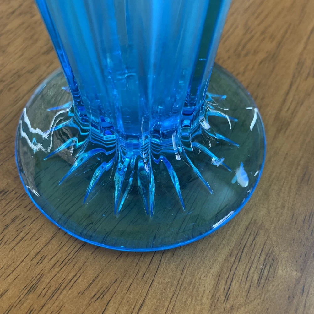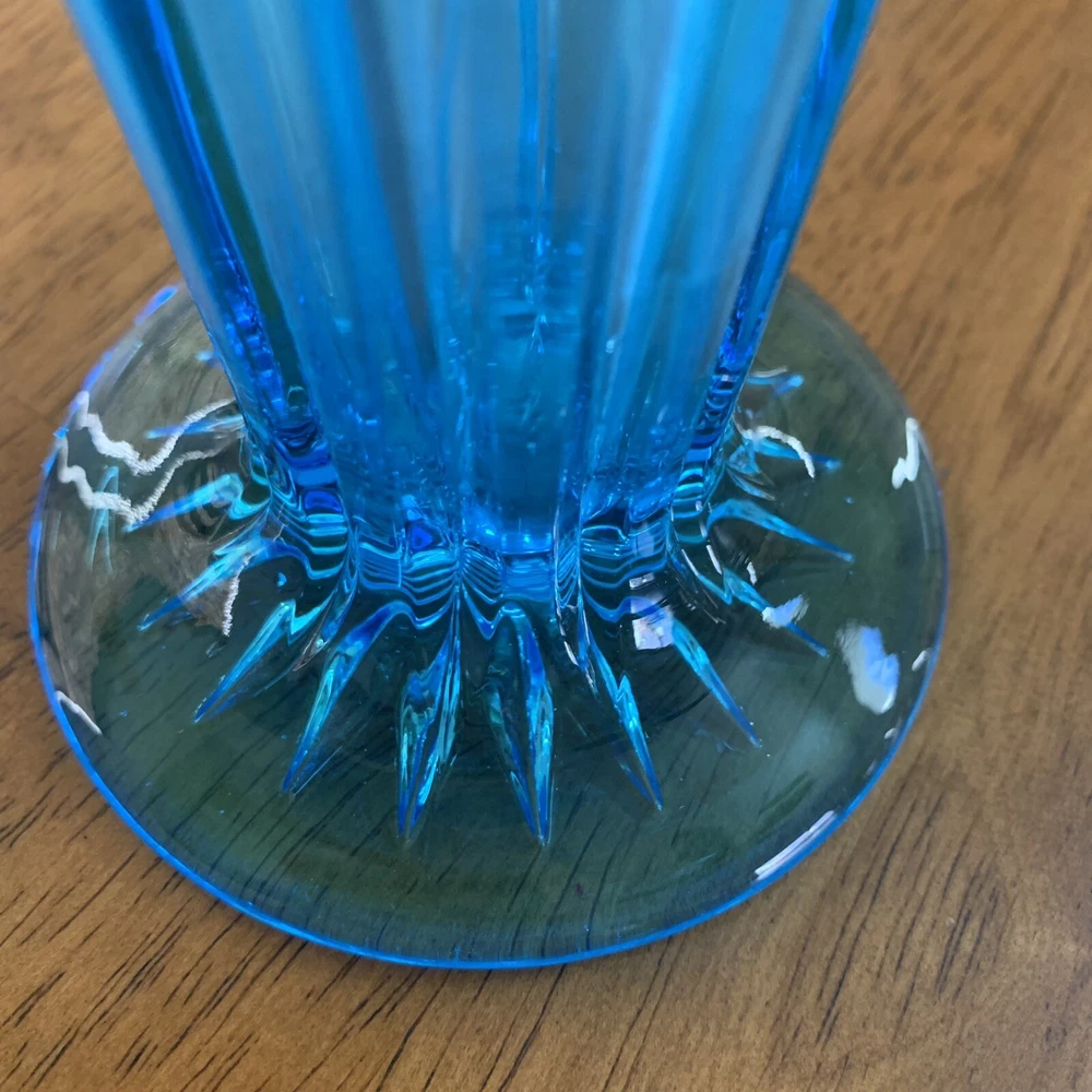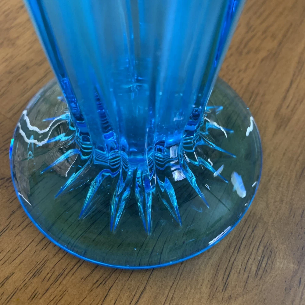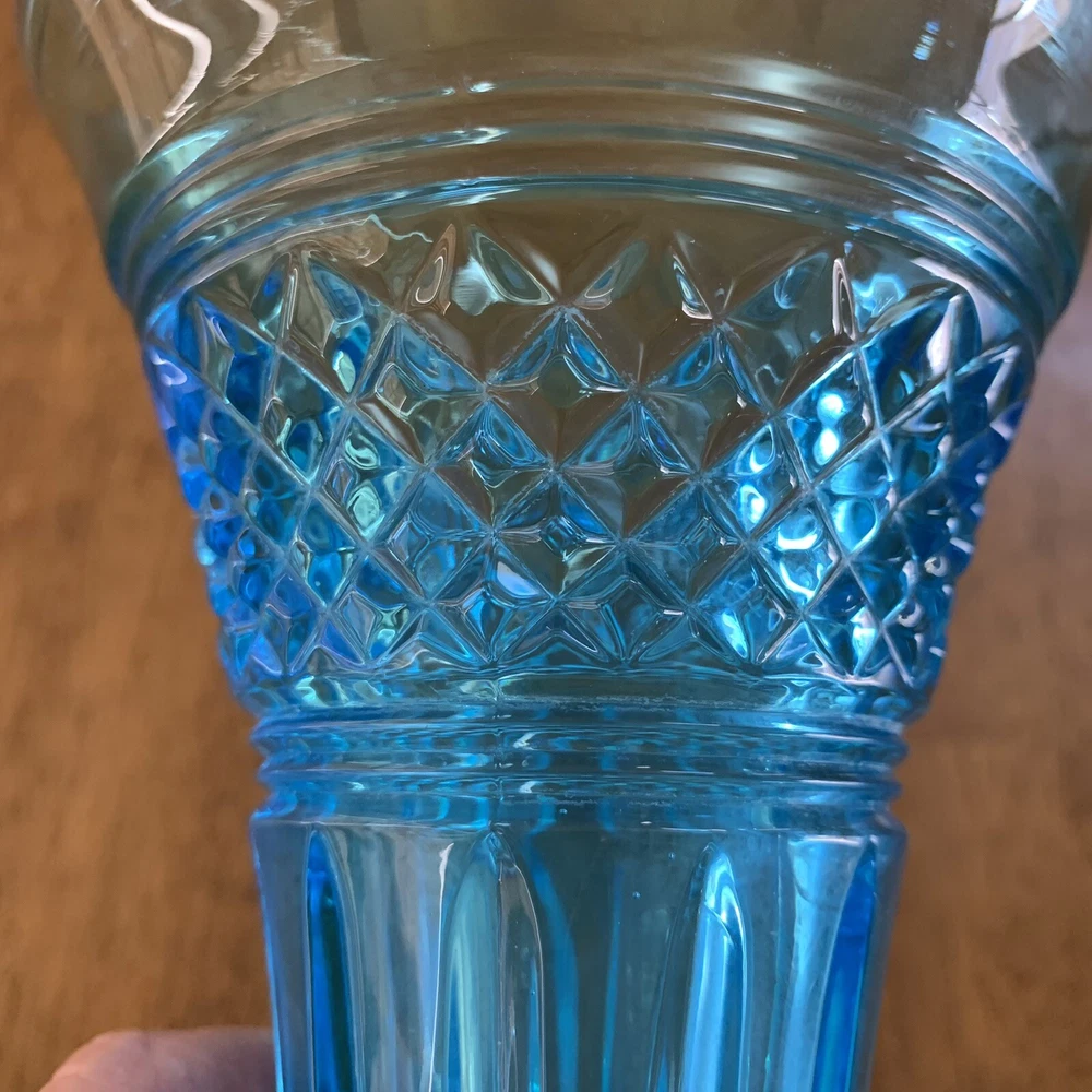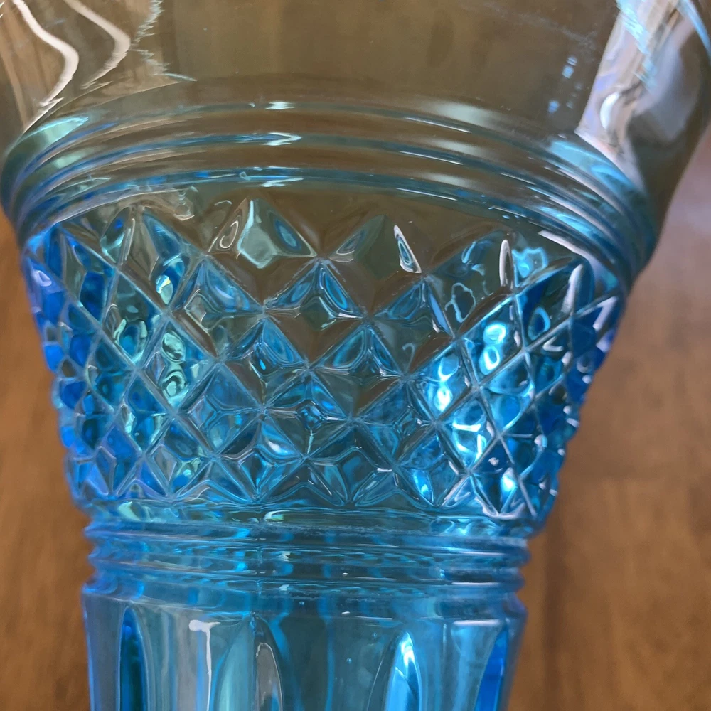 Model: Tiffin-Francisan Baronial Item Height: 7 5/8 inches Origin: United States Country/Region of Manufacture: United States Era: Early 20th Century (1911-1940) Year Manufactured: 1920 Production Style: Art Glass Type: Vase Item Width: 4 1/2 inches Wide At Top Material: Glass Finish: Glossy Antique: Yes Brand: Tiffin-Francisan Pattern: Diamond and Crisscross Item Weight: 1 lb 7.1 ounces Features: Decorative Time Period Manufactured: 1920-1929 Color: Blue
