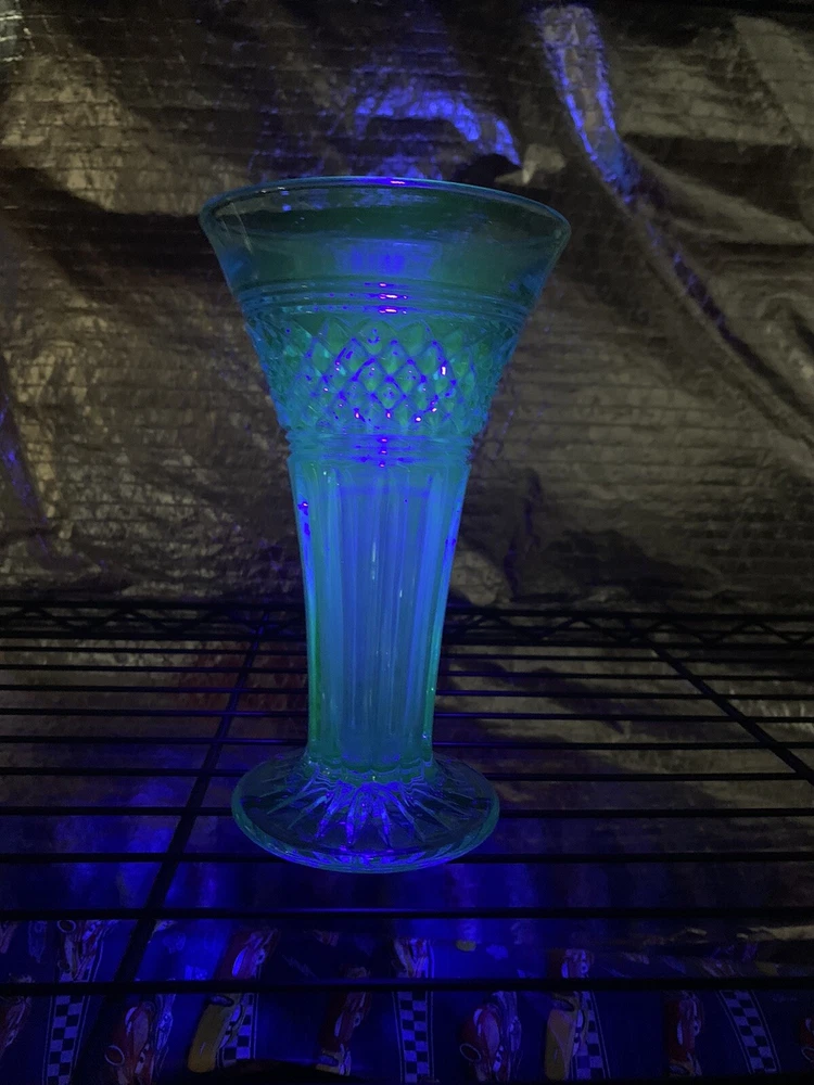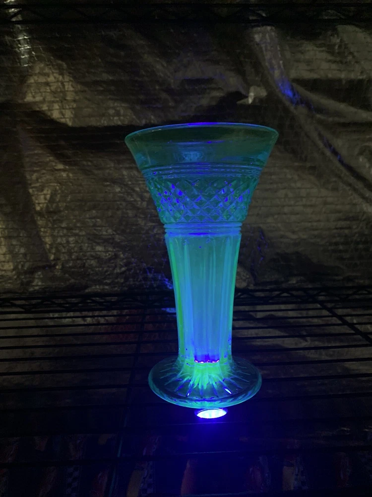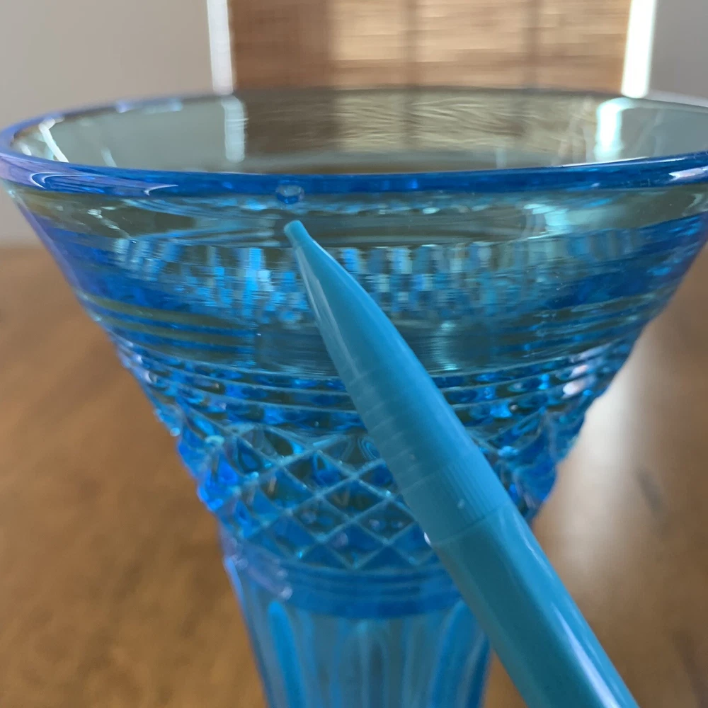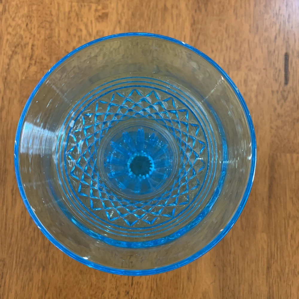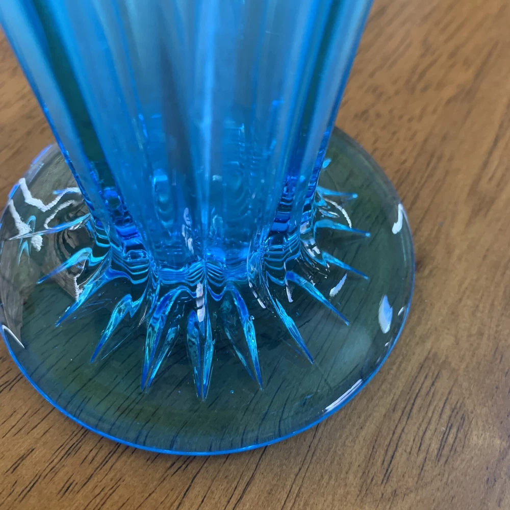 Model: Tiffin-Francisan Baronial Item Height: 7 5/8 inches Origin: United States Country/Region of Manufacture: United States Era: Early 20th Century (1911-1940) Year Manufactured: 1920 Production Style: Art Glass Type: Vase Item Width: 4 1/2 inches Wide At Top Material: Glass Finish: Glossy Antique: Yes Brand: Tiffin-Francisan Pattern: Diamond and Crisscross Item Weight: 1 lb 7.1 ounces Features: Decorative Time Period Manufactured: 1920-1929 Color: Blue