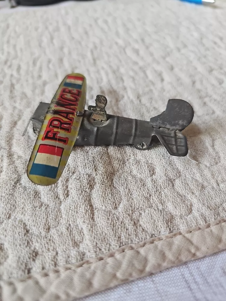 This antique tin toy France Plane from the 1930s is an extremely rare find for collectors and enthusiasts alike. Made of high-quality tin material, this vintage toy is a perfect addition to any collection. Its detailed design and intricate features make it a unique piece that stands out from the rest. The plane is a great representation of French aviation history and is sure to captivate anyone who sees it. Its age level is recommended to be 4-7 years, making it a perfect gift for children who appreciate vintage toys. This item is a must-have for anyone who loves collecting antique toys and wants to add a unique piece to their collection.