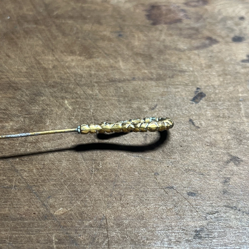 Antique Victorian Painted Faux Wood Short Hat Pin K4
