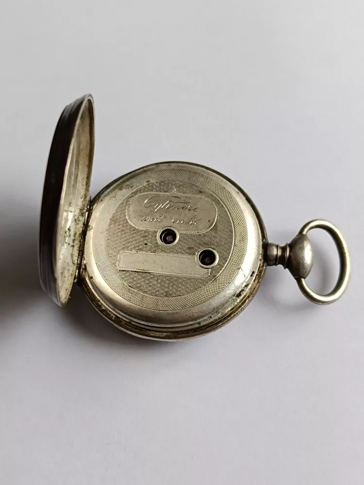 Antique French silver pocket watch, 45mm, hallmarked with the French Crab mark. Features a Cylindre movement with 10 rubis, finely engraved case, and a Roman numeral dial with original hands. The mechanism needs servicing. Doesn't work. A rare and collectible piece. antique pocket watch, silver pocket watch, vintage pocket watch, French watch, Cylindre movement, 10 rubis watch, hallmarked silver, collectible pocket watch, Roman numeral dial, Art Nouveau watch, Victorian watch, French antique, rare pocket watch, silver timepiece, manual wind watch, hand-engraved watch, pocket chronometer, 19th century watch, steampunk watch, silver fob watch…