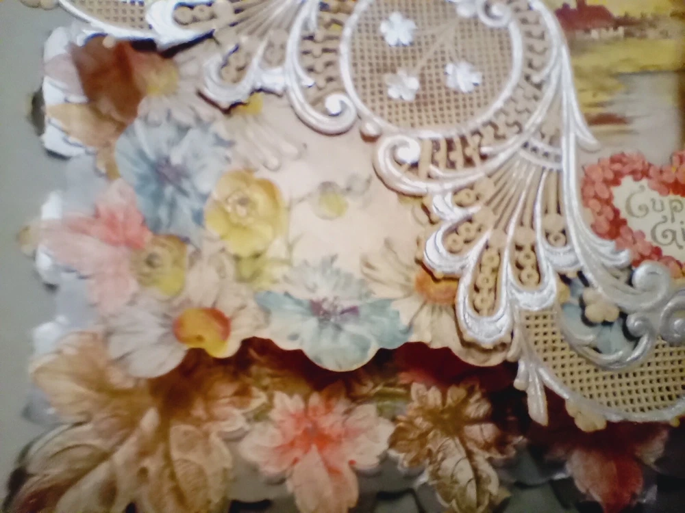 This antique Victorian Valentine's Day card features intricate paper lace and a die-cut design, dating back to the early 1900s. This beautiful card is dated 1908 to be specific. The card showcases a charming image of a Victorian home, adding a touch of elegance to this vintage piece. There is some bending and creasing but still a beautiful card none the less. Please see pictures for all details and up close pictures. The inside left panel has momma and Papa handwritten inside very lightly and the back is dated 1908 with Mr. Fritz signature. ❤️