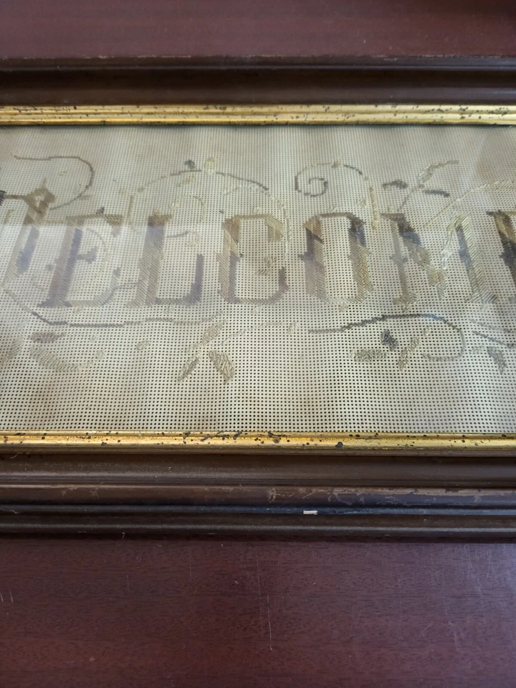 Antique Victorian Wood Framed Punched Paper Needlework "Welcome"