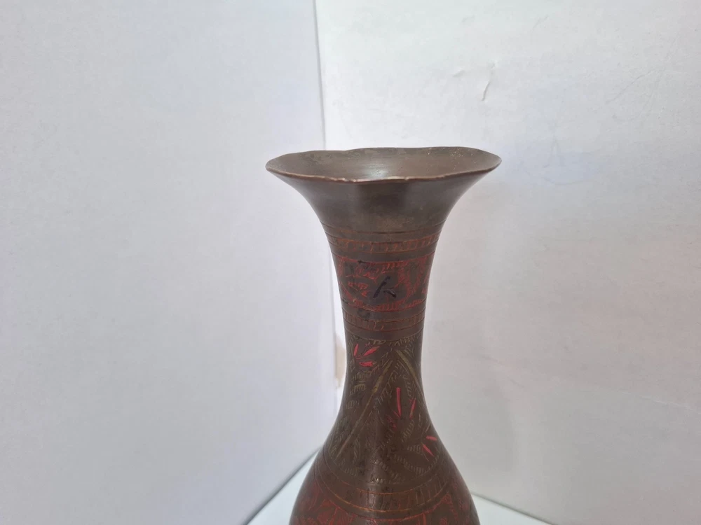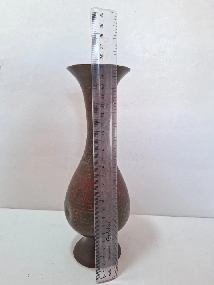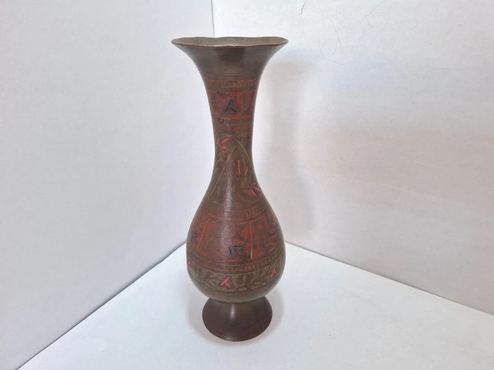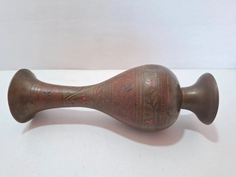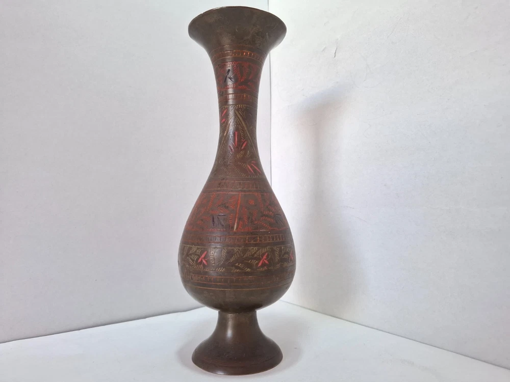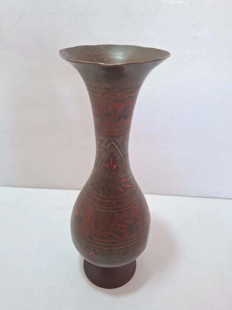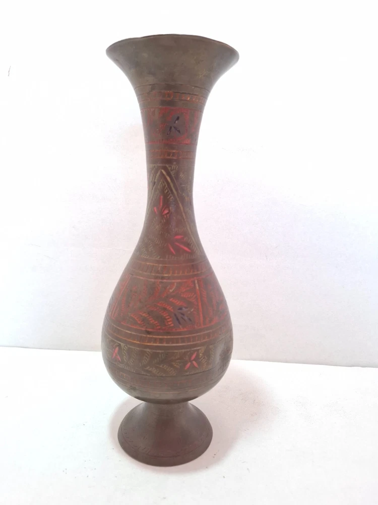 Antique Vintage Engraved Floral Brass Vase India. This antique vintage engraved floral brass vase from India features a round shape and a medium size, making it suitable for all occasions. The vase is crafted with brass material , with an antique brass finish adding to its charm. Handmade in India , this original piece showcases intricate etched floral patterns, making it a unique and timeless decorative collectible for any home. E b A Y Welcome and we promise to provide the best always. CONTACT US Please feel free to contact us. We are available 24 hours. If you have any questions or inquiries about any product offered ,You want to buy and know more details about it. Payment -We recommend payment via paypal. - Items will be shipped once the payment has been received. Shipping Item will be shipped immediately on the same or next business day of receiving clear payment. We will ship the product to you by mail Or international shipping companies with the tracking number. handling time 1-3 Business day. If you buy more i can combine shipping. We are very committed to the implementation and seriously to deal with you. Rutern policy You can return the Item within 30 days of receiving it , And get your money back immediately or exchange it for another item if you like,but you will pay for the shipping. Feedback Just as I give positive feedback for you (buyer) please you give me positive feedback. In any case of a problem contact me before put feedback. So I will do my very best to resolve any problem, and to make you satisfied. Notes See photos for more details & actual condition as photos are also part of description. Please note that the color of the items may vary slightly due tolighting during photo shooting or the monitors display. Thank you for shopping