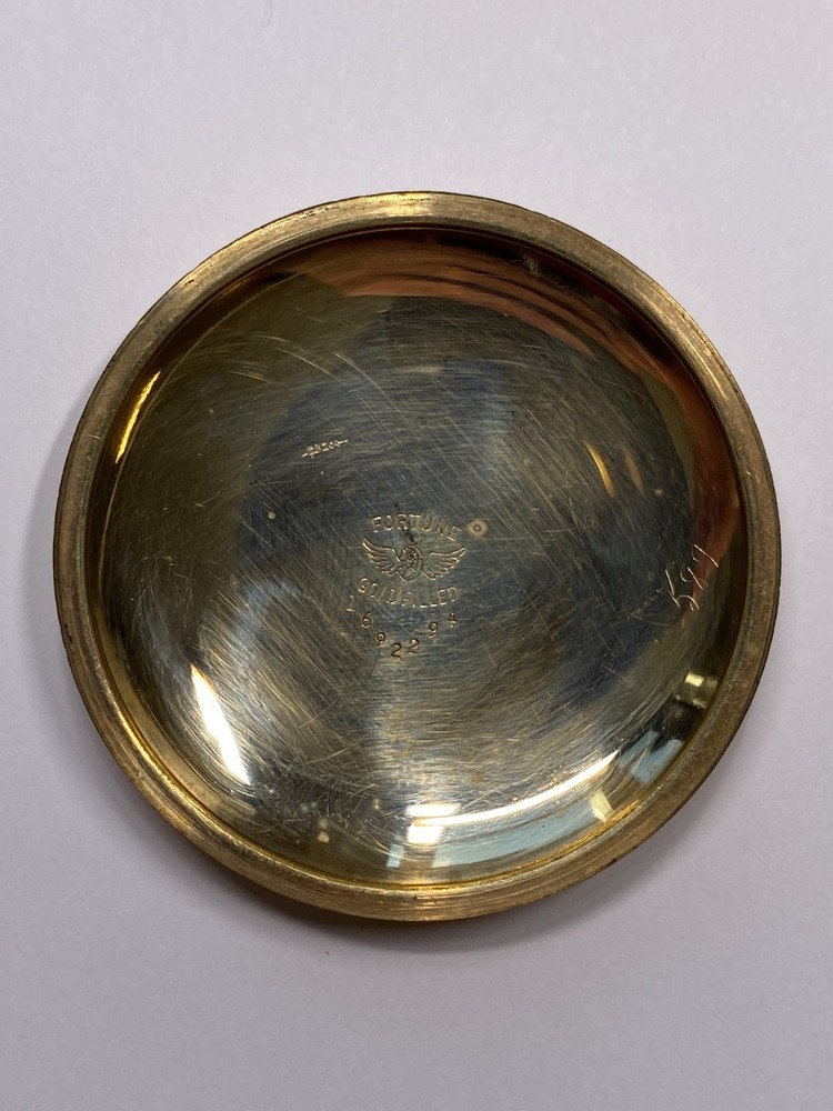 $ 132.0SUPERB GOLD PLATED LIMIT OF SWITZERLAND CASED HEBDOMAS 8 DAY POCKET WATCH FAB
