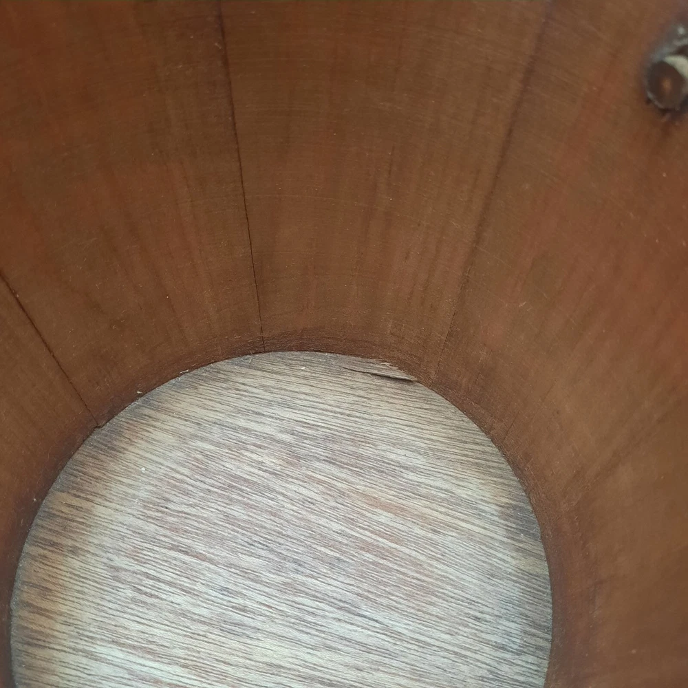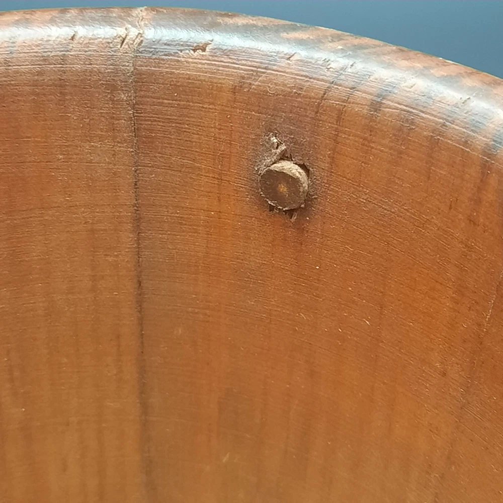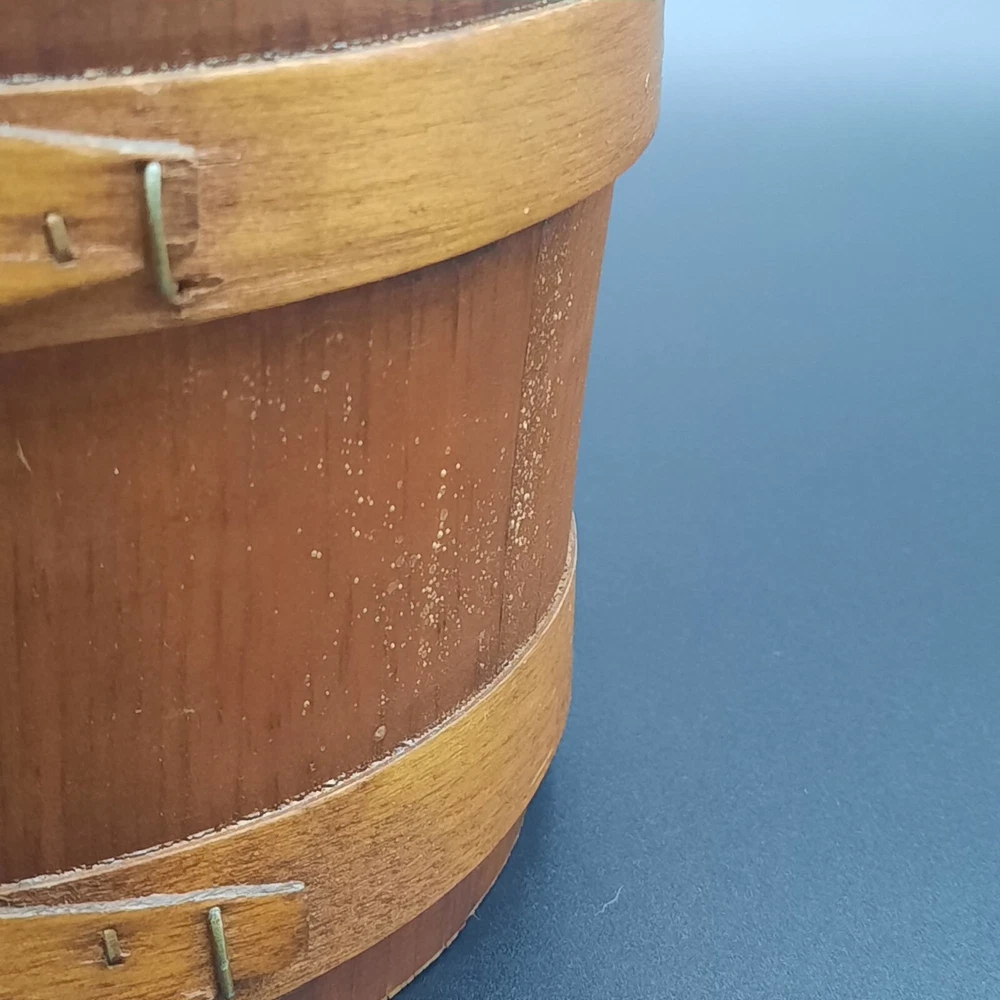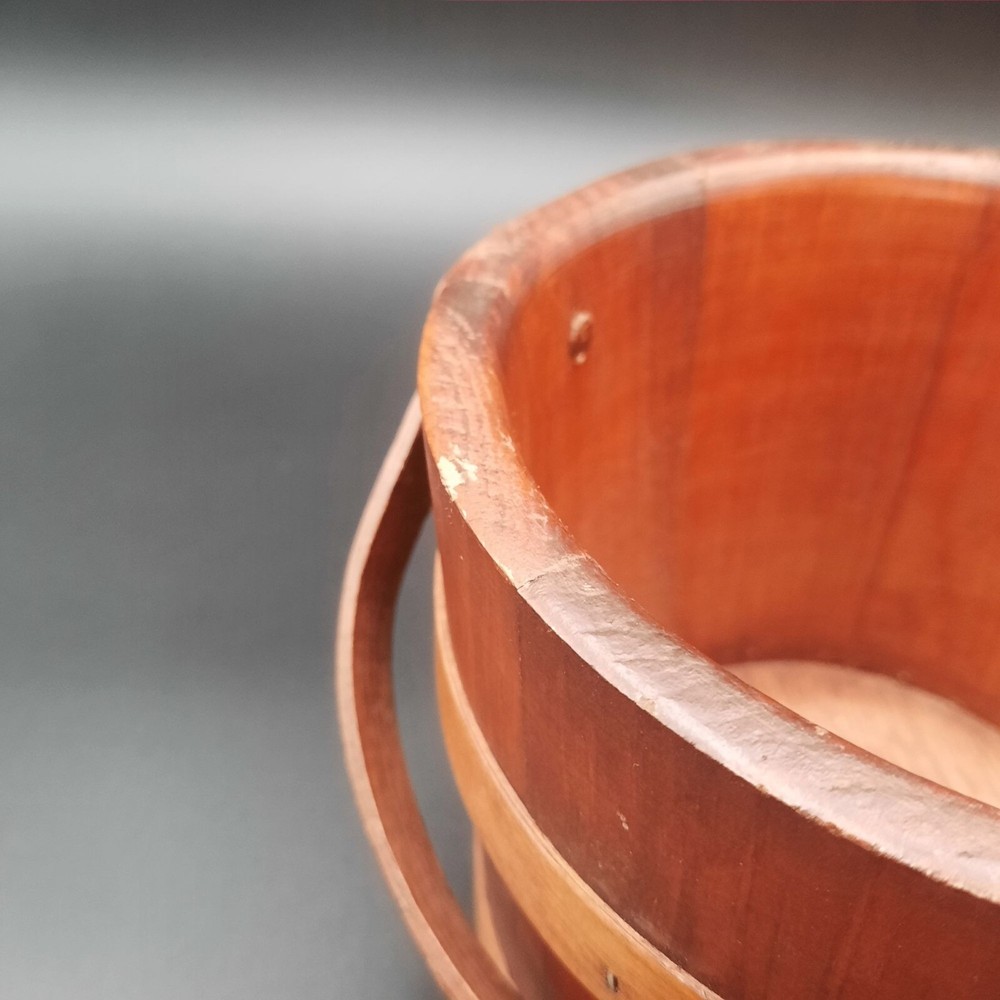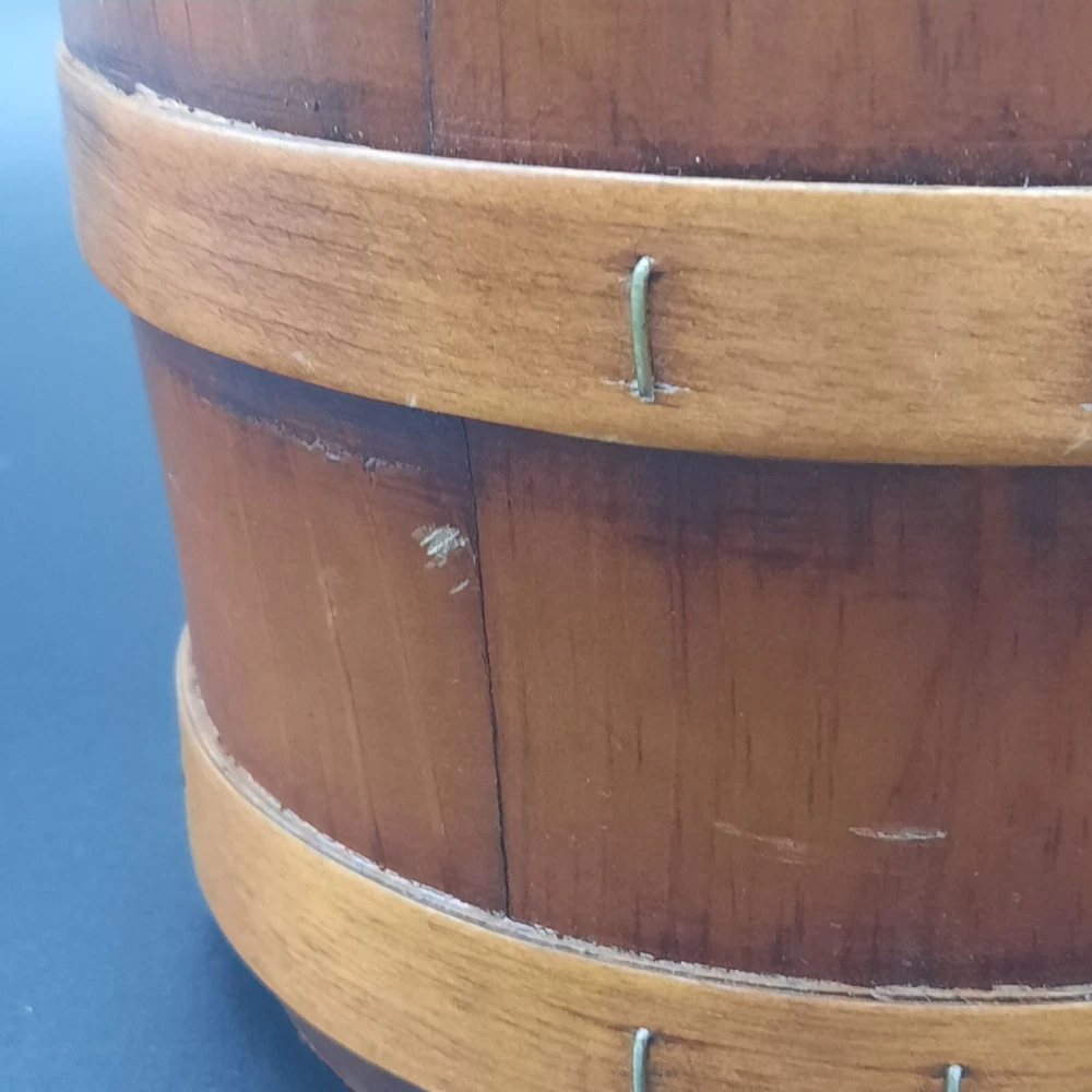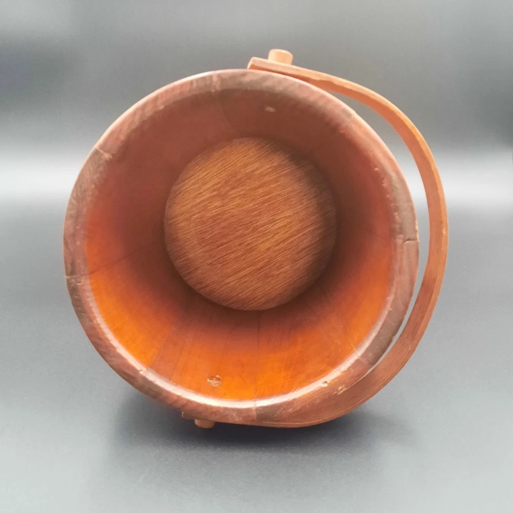 This vintage wood and glass ice bucket offers both functionality and classic design. The glass insert ensures easy cleaning, and the wooden exterior adds a touch of rustic charm. Ideal for entertaining, this bucket includes a pair of tongs for convenient ice serving. • Glass insert for easy cleaning • Includes metal tongs • Sturdy wood handle • Rustic wooden exterior • Compact design Approx. Top to bottom = 6 inches Approx. Diameter = 7.5 inches