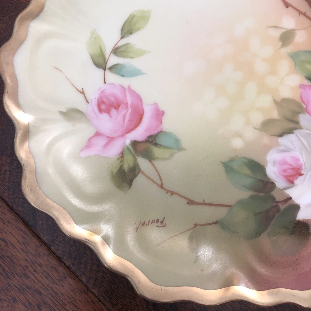 Antique Z S & Co Royal Vienna Hand Painted Roses 6.5” Plate Signed Fourel