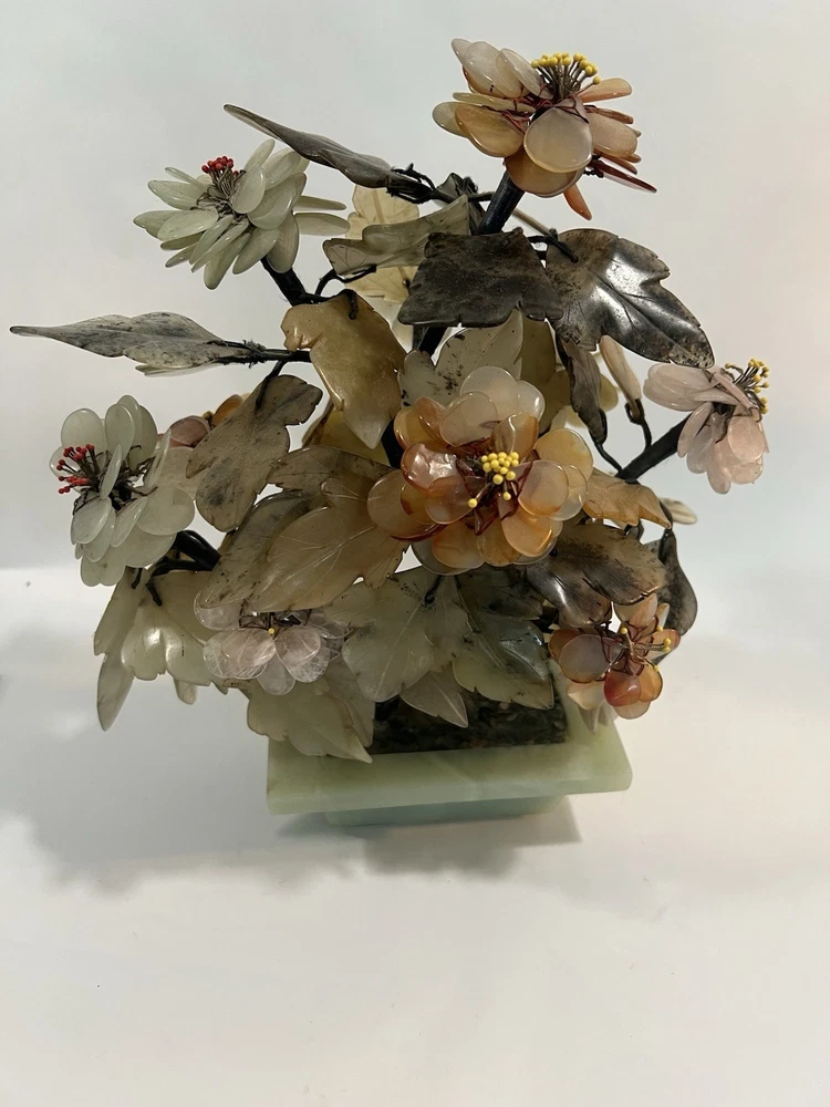 $ 32.28Vintage Asian Jade Pink Cherry Blossom Bonsai in Celadon Pot with Birds