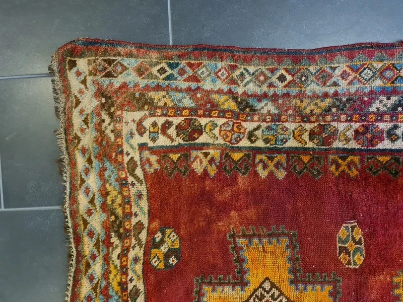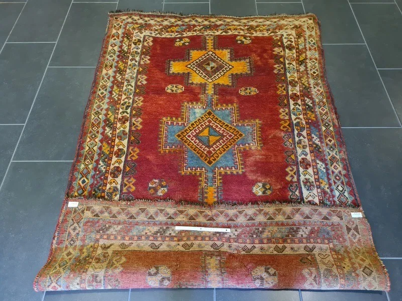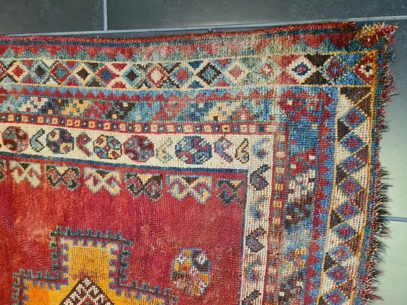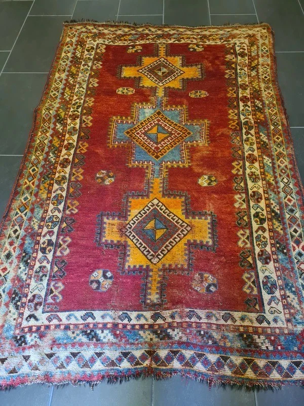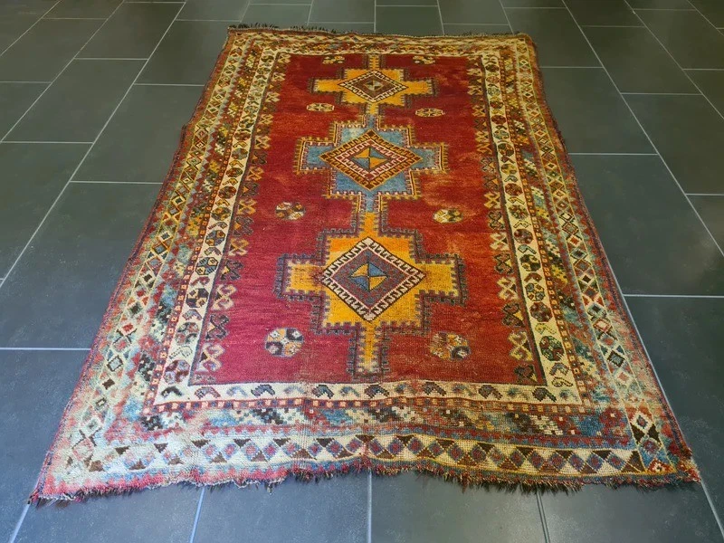 Antiker Orientteppich – Handgeknüpftes Sammlerstück aus dem Orient Erleben Sie die zeitlose Schönheit und das Erbe orientalischer Teppichkunst mit diesem exquisiten antiken handgeknüpften Orientteppich. Ein wahres Juwel für Sammler und Liebhaber klassischer Teppiche, das durch seine Detailverliebtheit und meisterliche Handwerkskunst besticht. Produktdetails: Design: Antikes Muster, reich an traditionellen Motiven Farbschema: Mehrfarbig – harmonische und lebendige Farbkomposition Material: Feinste Wolle auf Wolle, für eine luxuriöse Haptik und Langlebigkeit Knotendichte: 350.000 Knoten pro Quadratmeter, zeugt von höchster handwerklicher Qualität Maße: 193 x 122 cm – ideal für Wohnzimmer, Esszimmer oder als dekoratives Highlight Artikelnummer: GJ/BL585 Zustand: Gut – mit charmanten Gebrauchsspuren, die seine Geschichte erzählen Besonderheiten: Erstklassige Qualität in Material und Motivfarben, leuchtende und gut erhaltene Farbtöne Alter: Ungefähr 100 Jahre – ein wertvolles Stück Geschichte Herkunft: Orient Dieser antike Orentteppich ist ein authentisches Stück orientalischer Teppichkunst, das über ein Jahrhundert Geschichte in sich trägt. Handgeknüpft mit einer beeindruckenden Knotendichte, zeichnet sich dieser Teppich durch seine robusten, jedoch weichen Wollfasern und seine wunderschöne Farbvielfalt aus. Die feinen Details und das antike Muster machen ihn zu einem unvergleichlichen Kunstwerk. Ein besonderes Highlight für Sammler und Kenner, dieser Teppich bringt eine warme und elegante Atmosphäre in jedes Zuhause. Trotz seiner Gebrauchsspuren, die ihm zusätzlichen Charakter verleihen, bleibt er ein bemerkenswertes Beispiel meisterlicher Handwerkskunst und hoher Qualität. Nutzen Sie die Gelegenheit, dieses außergewöhnliche Stück in Ihre Sammlung aufzunehmen oder Ihrem Wohnraum einen Hauch von historischer Eleganz zu verleihen. Lassen Sie sich von der Schönheit und Authentizität dieses antiken Shiraz Perserteppichs verzaubern.