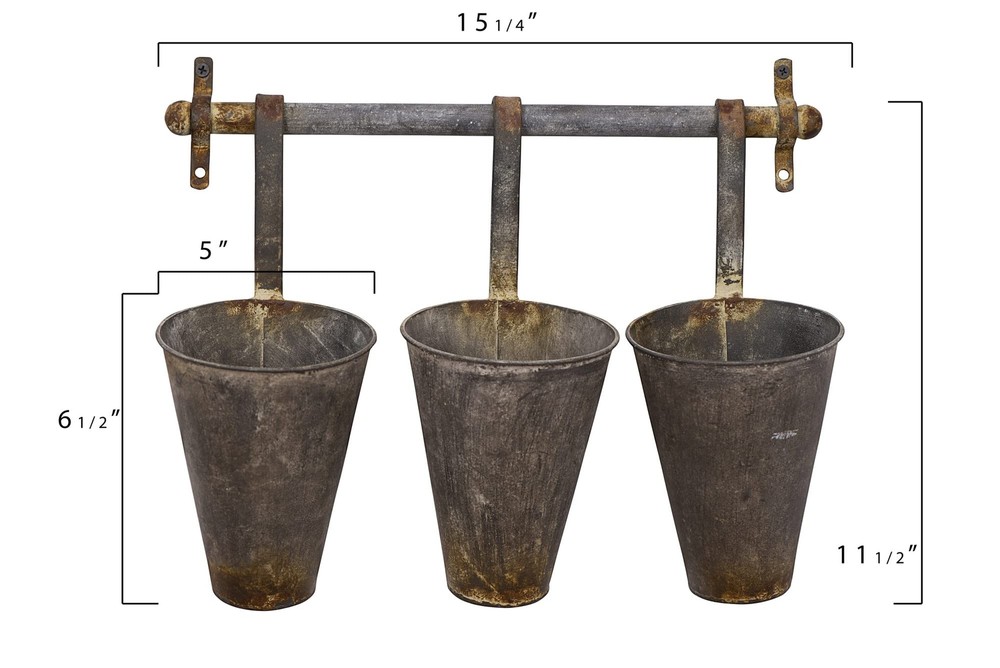 Creative Co-Op Antiqued Metal Wall Rack with 3 Hanging Tin Pots Metal construction Heavily distressed finish Holds 3 inch pots 15.25"L x 4.75"W x 12"H Shipping We offer FREE shipping on all orders! We ship within Three business days of payment, usually sooner. We use a selection of shipping services such as UPS, FedEx, USPS etc. We only ship to the lower 48 states, no APO/FPO addresses or PO Boxes allowed. Local pickups and combined shipping options are not provided at this time. Return You can return a product for up to 30 days from the date you purchased it. Any product you return must be in the same condition you received it and in the original packaging. Please keep the receipt. Payment We accept payment by any of the following methods: PayPal Please pay as soon as possible after winning an auction, as that will allow us to post your item to you sooner! Feedback Customer satisfaction is very important to us. If you have any problem with your order, please contact us and we will do our best to make you satisfied. Contact Us If you have any queries, please contact us via ebay. We usually respond within 24 hours on weekdays. Please visit our eBay store to check out other items for sale! Thank you for shopping at our store.